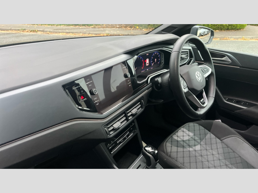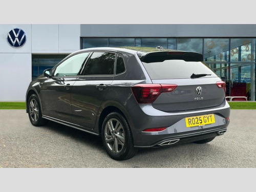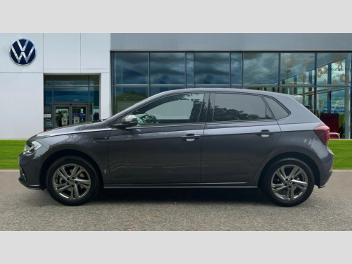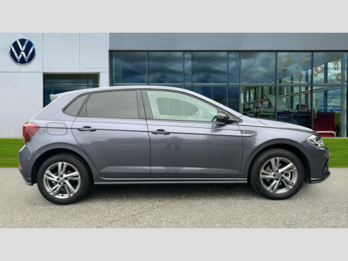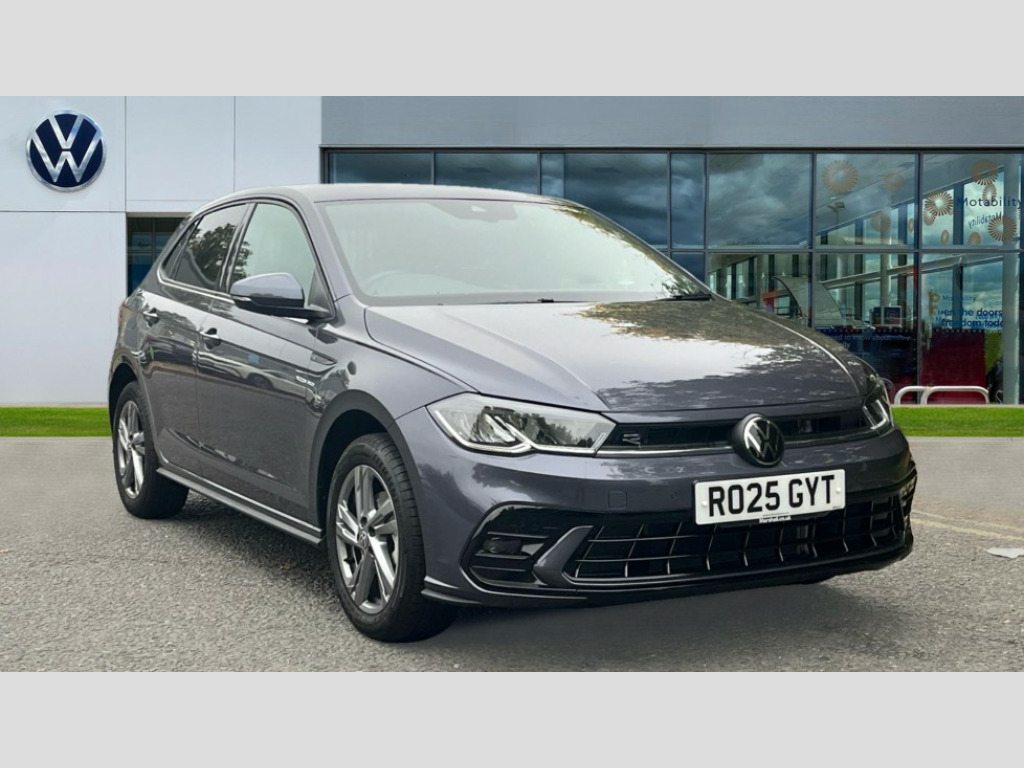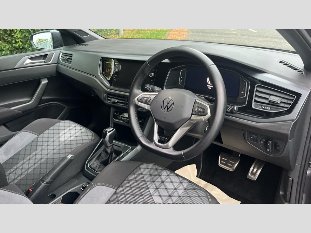 Volkswagen Polo 1.0 TSI 115 R-Line 5dr DSG Adaptive cruise control with follow-to-stop and speed limiter, Advanced driver attention and drowsiness monitor, Bluetooth mobile phone interface, Digital Cockpit Pro with 10.25" Display, Dynamic road sign display, Emergency call service, Multifunction camera, Power assisted speed sensitive steering, Preparation for We connect and We connect plus, Speedo and rev counter, electronic odometer, trip, service interval display and fuel gauge, Standard rear axle, Travel Assist - Lane keeping system and traffic jam assist, Travel assist including emergency assist, Trip computer, Warning signal and warning light for front and rear seatbelts not fastened, Washer fluid level indicator, Wireless app connect, Front wheel drive, Rear shock absorpion, Start-stop system with battery regeneration (recuperation - energy recovery during braking), DAB Digital radio, Diversity antenna for FM reception, Front and rear 6 speakers, Body colour bumpers, Body colour door handles, Electric front windows, Front scuff plates with R-Line logo, Heat insulating glass windscreen, Power folding adjustable/heated exterior mirrors and front passenger exterior mirror lowering function, Rear electric windows, Rear fog light, Rear side wing doors, Rear windscreen washer and wiper with interval delay, Third brake light, 12V power socket in centre console, 2 USB-C ports in the front, 2 USB-C charging sockets on the center console in the rear, 3 rear head restraints, 60/40 split folding rear seat and rear seat bench not split, Air care climatronic air conditoning system with active combination filter and 2-zone temperature control, Black roof lining, Carpet mats, front and rear, Chrome plated radiator grille inserts, air vent surrounds and light switch surrounds, Door and side trim panel, Driver and front passenger seat height adjustment, Driver/passenger sunvisors with illuminated vanity mirrors, Front centre armrest, Front footwell illumination, Front seat backrest storage pockets, Front sports comfort seats, Handbrake lever handle in leather, Headliner in recycled material, Isofix child seat preparation easy-fit (for two outer rear seats, and front passenger seat) compatible with I-size, Karoso artvelours cloth upholstery, Leather trimmed gear knob, LED interior light with switch off delay and dimmer, 2 reading lights front and rear, Luggage compartment cover, Luggage compartment floor, Luggage compartment lighting, Lumbar adjustment for front seats, Single front passenger seat, Stainless steel pedals, Standard pedal cluster, Three spoke leather wrapped multifunction steering wheel with shifting paddles, Light and sight pack - Polo R-Line/Black Edition, 3 point height adj front seatbelts + pretensioners, 3x3 point rear seatbelts, ABS, Driver and front passenger airbag with front passenger airbag deactivation, Drivers and front passengers safety optimised head restraints, ESC (Electronic stability control) + EDL (Electronic Differntial lock) and ASR (Traction control), Extended and predictive pedestrian/ cyclist protection, Front curtain and side airbags with center airbag, Front/rear disc brakes, Hill hold control, Manual child lock in rear doors, Single tone horn, Tyre pressure loss indicator, Alarm with interior protection, Anti-theft alarm system with interior monitoring, backup horn, and towing protection, Anti-theft wheel bolts, Electronic engine immobiliser, Chrome applications on rotary light, mirror adjustment, window regulator switches, outlet with frame in black, Dark grey anodised matt decorative inserts in dash and front door panels, 16" Coventry alloy wheels, Low rolling resistance tyres