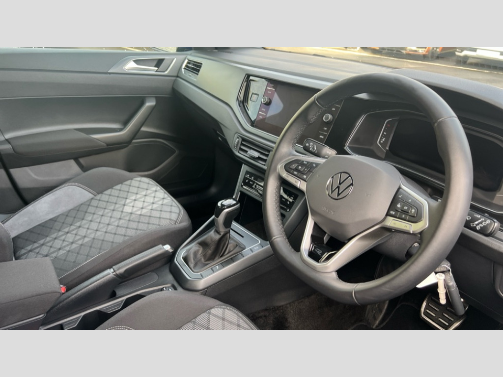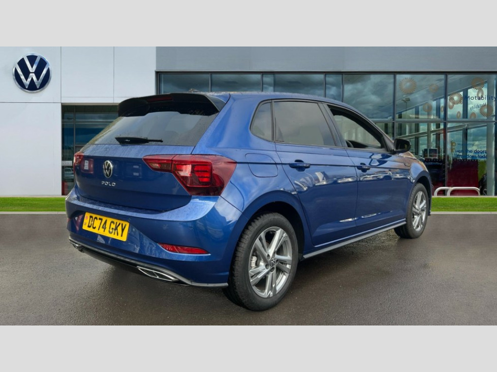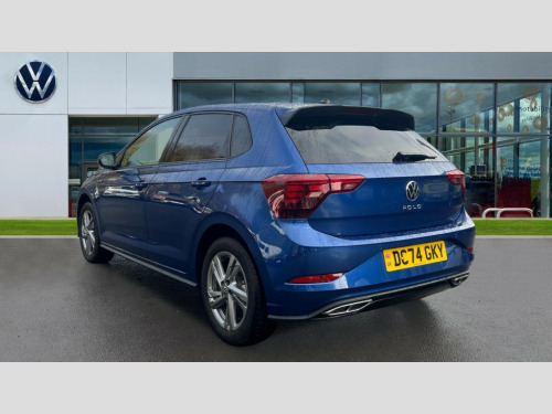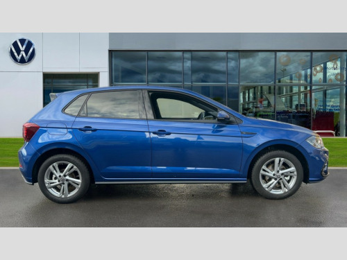 Volkswagen Polo 1.0 TSI 115 R-Line 5dr DSG Adaptive cruise control with follow-to-stop and speed limiter, Advanced driver attention and drowsiness monitor, Bluetooth mobile phone interface, Digital Cockpit Pro with 10.25" Display, Dynamic road sign display, Emergency call service, Multifunction camera, Power assisted speed sensitive steering, Preparation for We connect and We connect plus, Speedo and rev counter, electronic odometer, trip, service interval display and fuel gauge, Standard rear axle, Travel Assist - Lane keeping system and traffic jam assist, Travel assist including emergency assist, Trip computer, Warning signal and warning light for front and rear seatbelts not fastened, Washer fluid level indicator, Wireless app connect, Front wheel drive, Rear shock absorpion, Start-stop system with battery regeneration (recuperation - energy recovery during braking), DAB Digital radio, Diversity antenna for FM reception, Front and rear 6 speakers, Body colour bumpers, Body colour door handles, Electric front windows, Front scuff plates with R-Line logo, Heat insulating glass windscreen, Power folding adjustable/heated exterior mirrors and front passenger exterior mirror lowering function, Rear electric windows, Rear fog light, Rear side wing doors, Rear windscreen washer and wiper with interval delay, Third brake light, 12V power socket in centre console, 2 USB-C ports in the front, 2 USB-C charging sockets on the center console in the rear, 3 rear head restraints, 60/40 split folding rear seat and rear seat bench not split, Air care climatronic air conditoning system with active combination filter and 2-zone temperature control, Black roof lining, Carpet mats, front and rear, Chrome plated radiator grille inserts, air vent surrounds and light switch surrounds, Door and side trim panel, Driver and front passenger seat height adjustment, Driver/passenger sunvisors with illuminated vanity mirrors, Front centre armrest, Front footwell illumination, Front seat backrest storage pockets, Front sports comfort seats, Handbrake lever handle in leather, Headliner in recycled material, Isofix child seat preparation easy-fit (for two outer rear seats, and front passenger seat) compatible with I-size, Karoso artvelours cloth upholstery, Leather trimmed gear knob, LED interior light with switch off delay and dimmer, 2 reading lights front and rear, Luggage compartment cover, Luggage compartment floor, Luggage compartment lighting, Lumbar adjustment for front seats, Single front passenger seat, Stainless steel pedals, Standard pedal cluster, Three spoke leather wrapped multifunction steering wheel with shifting paddles, Light and sight pack - Polo R-Line/Black Edition, 3 point height adj front seatbelts + pretensioners, 3x3 point rear seatbelts, ABS, Driver and front passenger airbag with front passenger airbag deactivation, Drivers and front passengers safety optimised head restraints, ESC (Electronic stability control) + EDL (Electronic Differntial lock) and ASR (Traction control), Extended and predictive pedestrian/ cyclist protection, Front curtain and side airbags with center airbag, Front/rear disc brakes, Hill hold control, Manual child lock in rear doors, Single tone horn, Tyre pressure loss indicator, Alarm with interior protection, Anti-theft alarm system with interior monitoring, backup horn, and towing protection, Anti-theft wheel bolts, Electronic engine immobiliser, Chrome applications on rotary light, mirror adjustment, window regulator switches, outlet with frame in black, Dark grey anodised matt decorative inserts in dash and front door panels, 16" Coventry alloy wheels, Low rolling resistance tyres