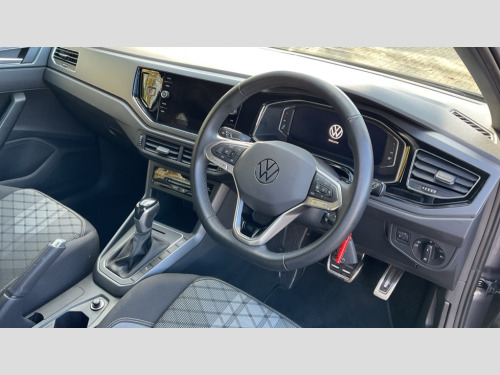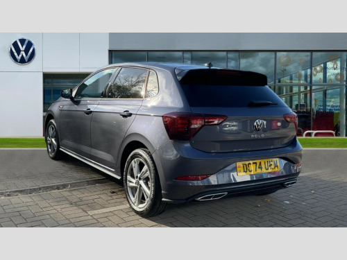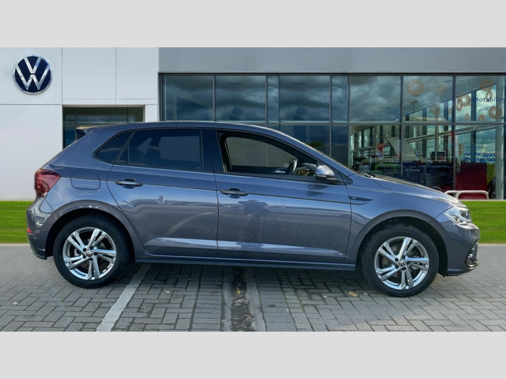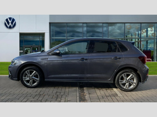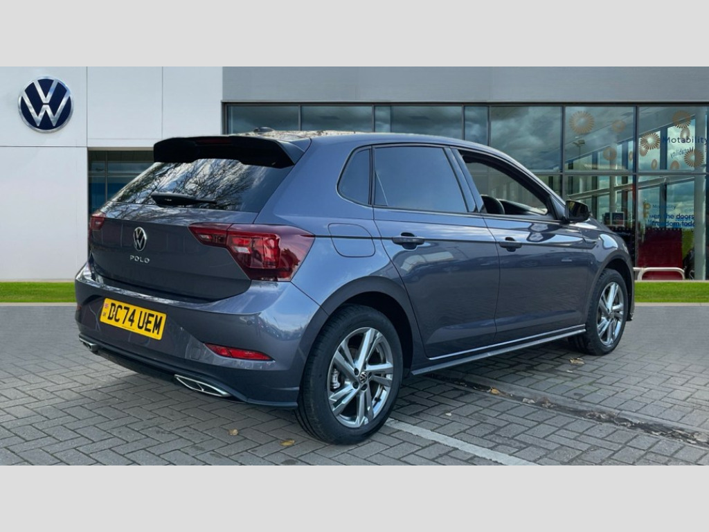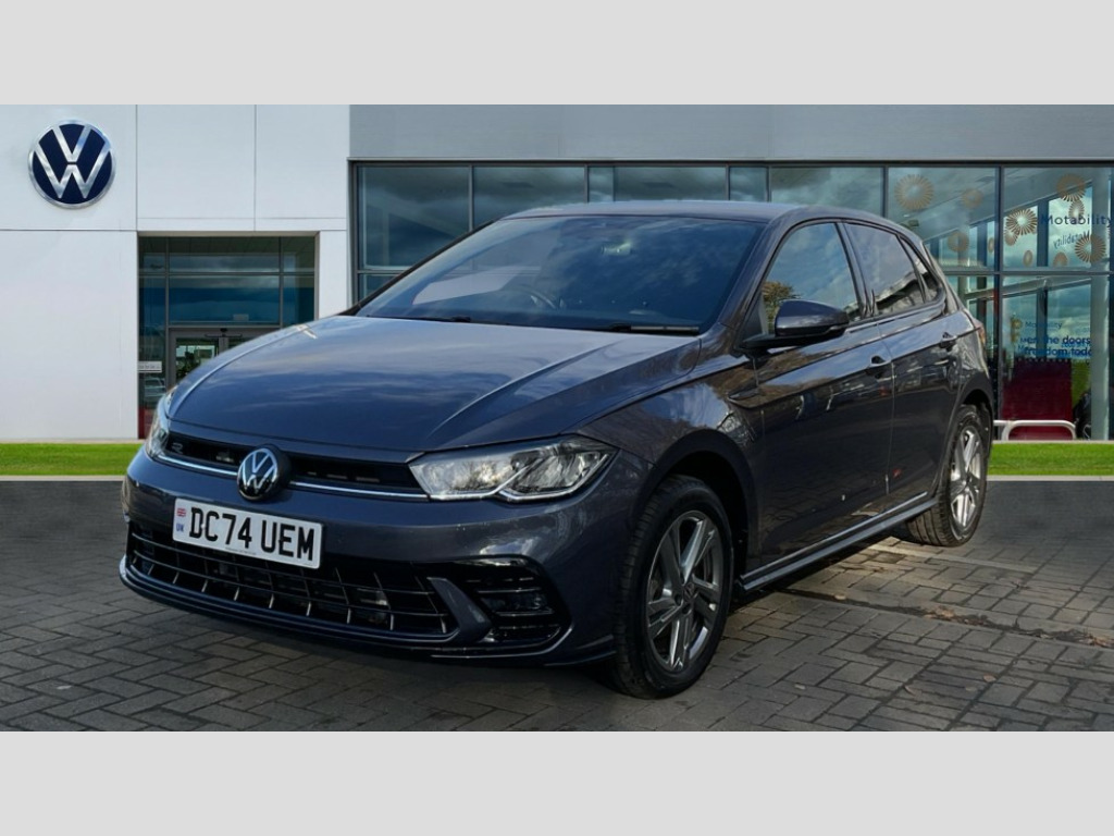 Volkswagen Polo 1.0 TSI 115 R-Line 5dr DSG Adaptive cruise control with follow-to-stop and speed limiter, Advanced driver attention and drowsiness monitor, Bluetooth mobile phone interface, Digital Cockpit Pro with 10.25" Display, Dynamic road sign display, Emergency call service, Multifunction camera, Power assisted speed sensitive steering, Preparation for We connect and We connect plus, Speedo and rev counter, electronic odometer, trip, service interval display and fuel gauge, Standard rear axle, Travel Assist - Lane keeping system and traffic jam assist, Travel assist including emergency assist, Trip computer, Warning signal and warning light for front and rear seatbelts not fastened, Washer fluid level indicator, Wireless app connect, Front wheel drive, Rear shock absorpion, Start-stop system with battery regeneration (recuperation - energy recovery during braking), DAB Digital radio, Diversity antenna for FM reception, Front and rear 6 speakers, Body colour bumpers, Body colour door handles, Electric front windows, Front scuff plates with R-Line logo, Heat insulating glass windscreen, Power folding adjustable/heated exterior mirrors and front passenger exterior mirror lowering function, Rear electric windows, Rear fog light, Rear side wing doors, Rear windscreen washer and wiper with interval delay, Third brake light, 12V power socket in centre console, 2 USB-C ports in the front, 2 USB-C charging sockets on the center console in the rear, 3 rear head restraints, 60/40 split folding rear seat and rear seat bench not split, Air care climatronic air conditoning system with active combination filter and 2-zone temperature control, Black roof lining, Carpet mats, front and rear, Chrome plated radiator grille inserts, air vent surrounds and light switch surrounds, Door and side trim panel, Driver and front passenger seat height adjustment, Driver/passenger sunvisors with illuminated vanity mirrors, Front centre armrest, Front footwell illumination, Front seat backrest storage pockets, Front sports comfort seats, Handbrake lever handle in leather, Headliner in recycled material, Isofix child seat preparation easy-fit (for two outer rear seats, and front passenger seat) compatible with I-size, Karoso artvelours cloth upholstery, Leather trimmed gear knob, LED interior light with switch off delay and dimmer, 2 reading lights front and rear, Luggage compartment cover, Luggage compartment floor, Luggage compartment lighting, Lumbar adjustment for front seats, Single front passenger seat, Stainless steel pedals, Standard pedal cluster, Three spoke leather wrapped multifunction steering wheel with shifting paddles, Light and sight pack - Polo R-Line/Black Edition, 3 point height adj front seatbelts + pretensioners, 3x3 point rear seatbelts, ABS, Driver and front passenger airbag with front passenger airbag deactivation, Drivers and front passengers safety optimised head restraints, ESC (Electronic stability control) + EDL (Electronic Differntial lock) and ASR (Traction control), Extended and predictive pedestrian/ cyclist protection, Front curtain and side airbags with center airbag, Front/rear disc brakes, Hill hold control, Manual child lock in rear doors, Single tone horn, Tyre pressure loss indicator, Alarm with interior protection, Anti-theft alarm system with interior monitoring, backup horn, and towing protection, Anti-theft wheel bolts, Electronic engine immobiliser, Chrome applications on rotary light, mirror adjustment, window regulator switches, outlet with frame in black, Dark grey anodised matt decorative inserts in dash and front door panels, 16" Coventry alloy wheels, Low rolling resistance tyres