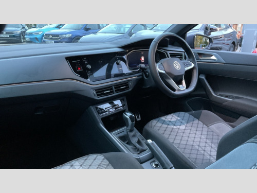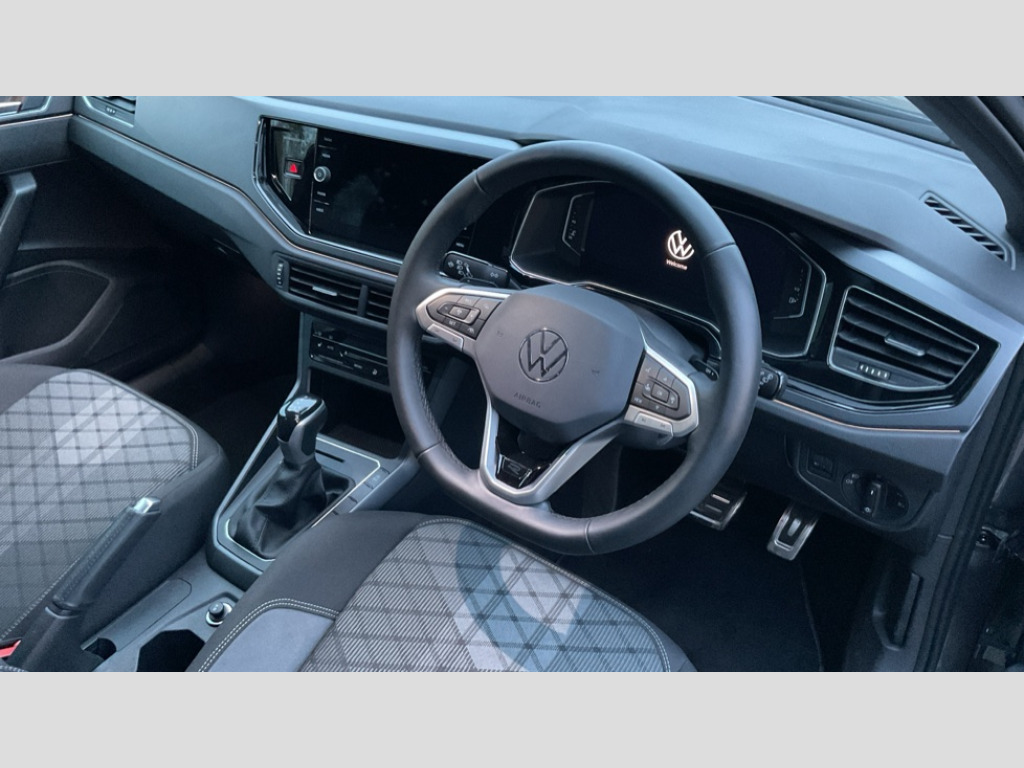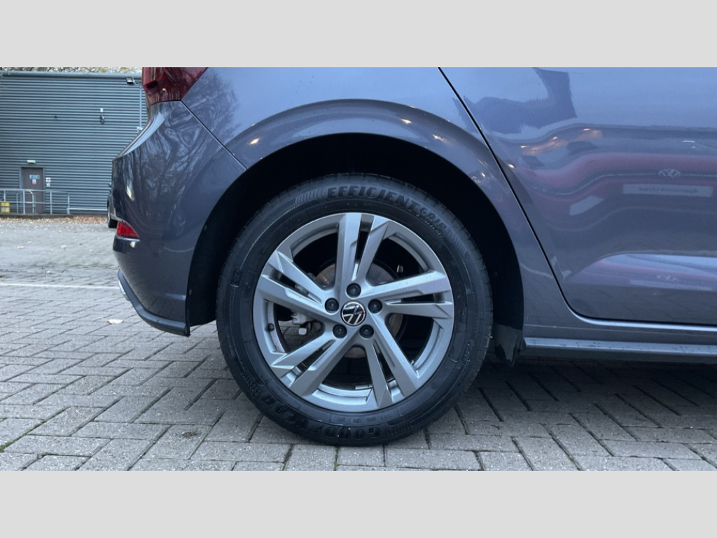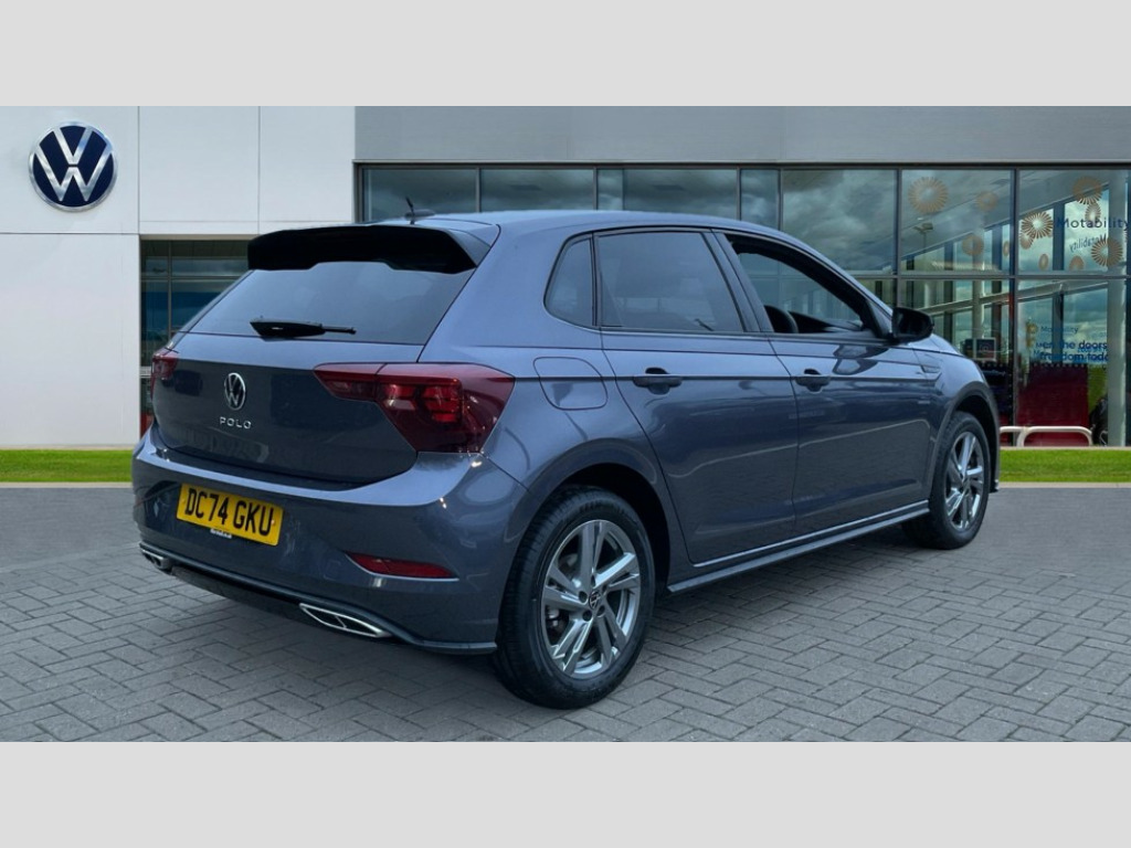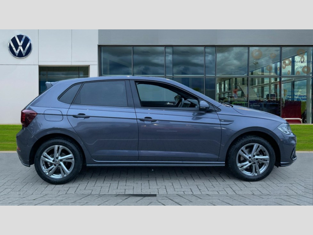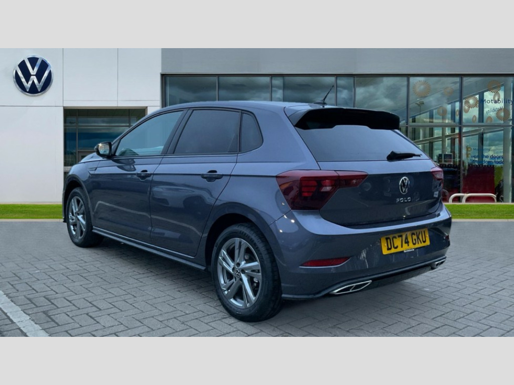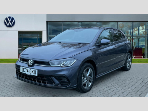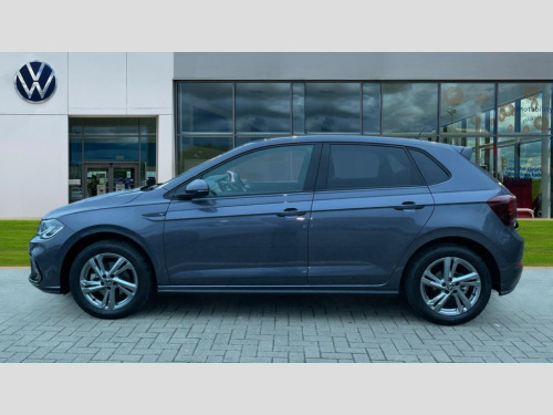Volkswagen Polo 1.0 TSI 115 R-Line 5dr DSG Adaptive cruise control with follow-to-stop and speed limiter, Advanced driver attention and drowsiness monitor, Bluetooth mobile phone interface, Digital Cockpit Pro with 10.25" Display, Dynamic road sign display, Emergency call service, Multifunction camera, Power assisted speed sensitive steering, Preparation for We connect and We connect plus, Speedo and rev counter, electronic odometer, trip, service interval display and fuel gauge, Standard rear axle, Travel Assist - Lane keeping system and traffic jam assist, Travel assist including emergency assist, Trip computer, Warning signal and warning light for front and rear seatbelts not fastened, Washer fluid level indicator, Wireless app connect, Front wheel drive, Rear shock absorpion, Start-stop system with battery regeneration (recuperation - energy recovery during braking), DAB Digital radio, Diversity antenna for FM reception, Front and rear 6 speakers, Body colour bumpers, Body colour door handles, Electric front windows, Front scuff plates with R-Line logo, Heat insulating glass windscreen, Power folding adjustable/heated exterior mirrors and front passenger exterior mirror lowering function, Rear electric windows, Rear fog light, Rear side wing doors, Rear windscreen washer and wiper with interval delay, Third brake light, 12V power socket in centre console, 2 USB-C ports in the front, 2 USB-C charging sockets on the center console in the rear, 3 rear head restraints, 60/40 split folding rear seat and rear seat bench not split, Air care climatronic air conditoning system with active combination filter and 2-zone temperature control, Black roof lining, Carpet mats, front and rear, Chrome plated radiator grille inserts, air vent surrounds and light switch surrounds, Door and side trim panel, Driver and front passenger seat height adjustment, Driver/passenger sunvisors with illuminated vanity mirrors, Front centre armrest, Front footwell illumination, Front seat backrest storage pockets, Front sports comfort seats, Handbrake lever handle in leather, Headliner in recycled material, Isofix child seat preparation easy-fit (for two outer rear seats, and front passenger seat) compatible with I-size, Karoso artvelours cloth upholstery, Leather trimmed gear knob, LED interior light with switch off delay and dimmer, 2 reading lights front and rear, Luggage compartment cover, Luggage compartment floor, Luggage compartment lighting, Lumbar adjustment for front seats, Single front passenger seat, Stainless steel pedals, Standard pedal cluster, Three spoke leather wrapped multifunction steering wheel with shifting paddles, Light and sight pack - Polo R-Line/Black Edition, 3 point height adj front seatbelts + pretensioners, 3x3 point rear seatbelts, ABS, Driver and front passenger airbag with front passenger airbag deactivation, Drivers and front passengers safety optimised head restraints, ESC (Electronic stability control) + EDL (Electronic Differntial lock) and ASR (Traction control), Extended and predictive pedestrian/ cyclist protection, Front curtain and side airbags with center airbag, Front/rear disc brakes, Hill hold control, Manual child lock in rear doors, Single tone horn, Tyre pressure loss indicator, Alarm with interior protection, Anti-theft alarm system with interior monitoring, backup horn, and towing protection, Anti-theft wheel bolts, Electronic engine immobiliser, Chrome applications on rotary light, mirror adjustment, window regulator switches, outlet with frame in black, Dark grey anodised matt decorative inserts in dash and front door panels, 16" Coventry alloy wheels, Low rolling resistance tyres