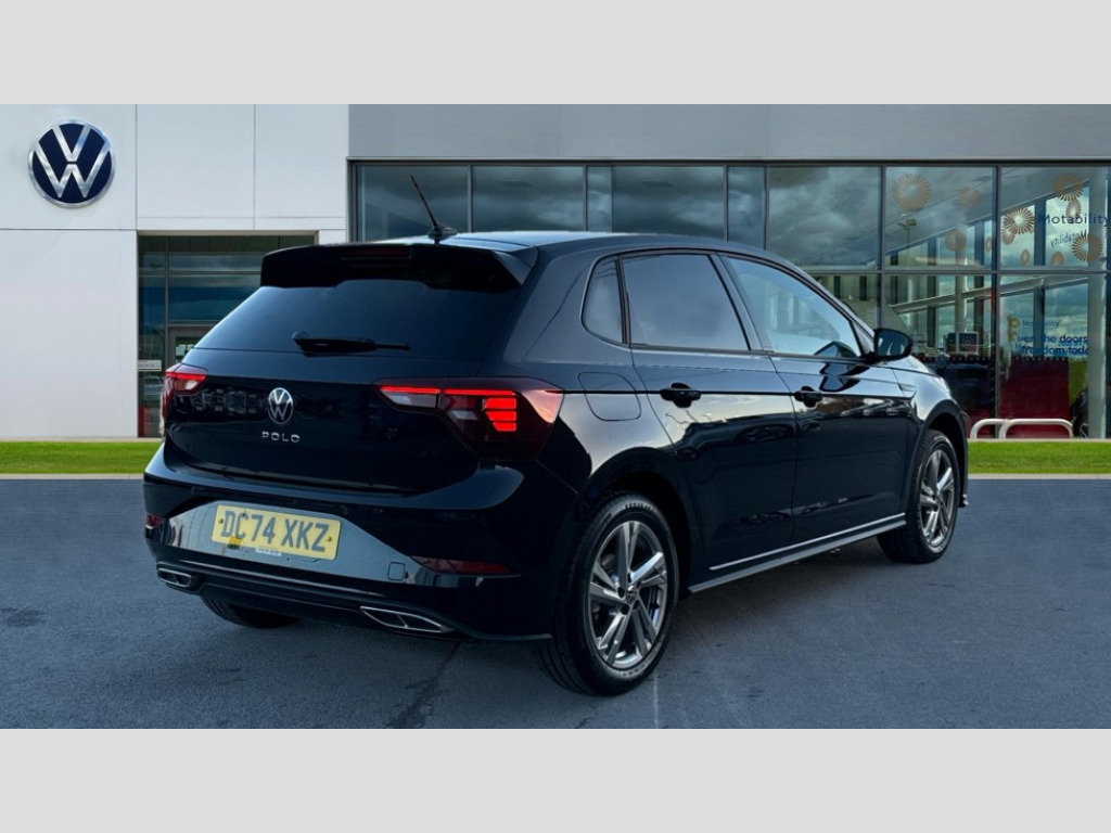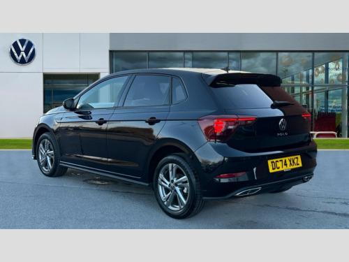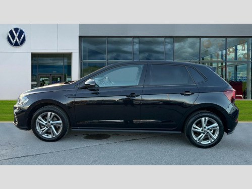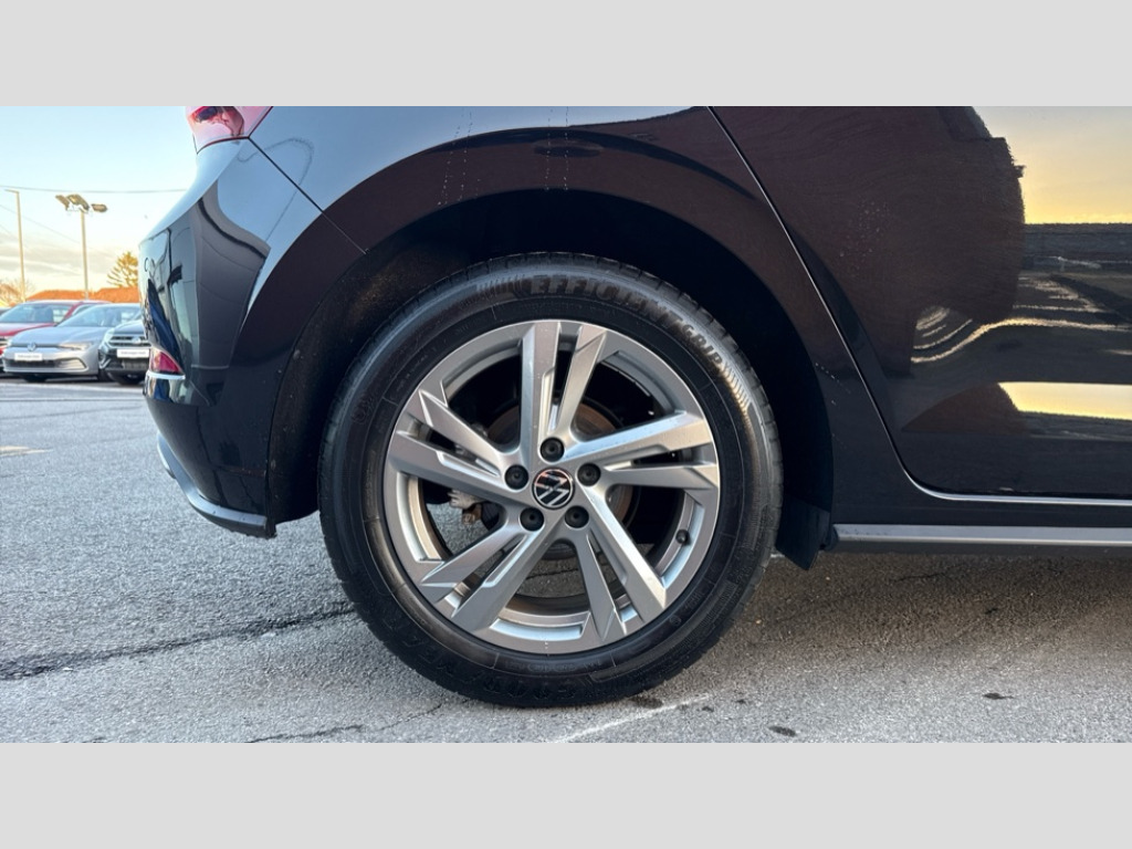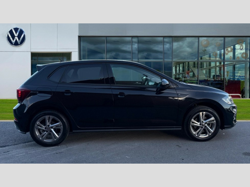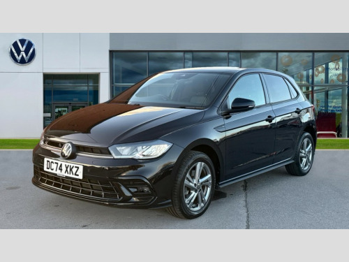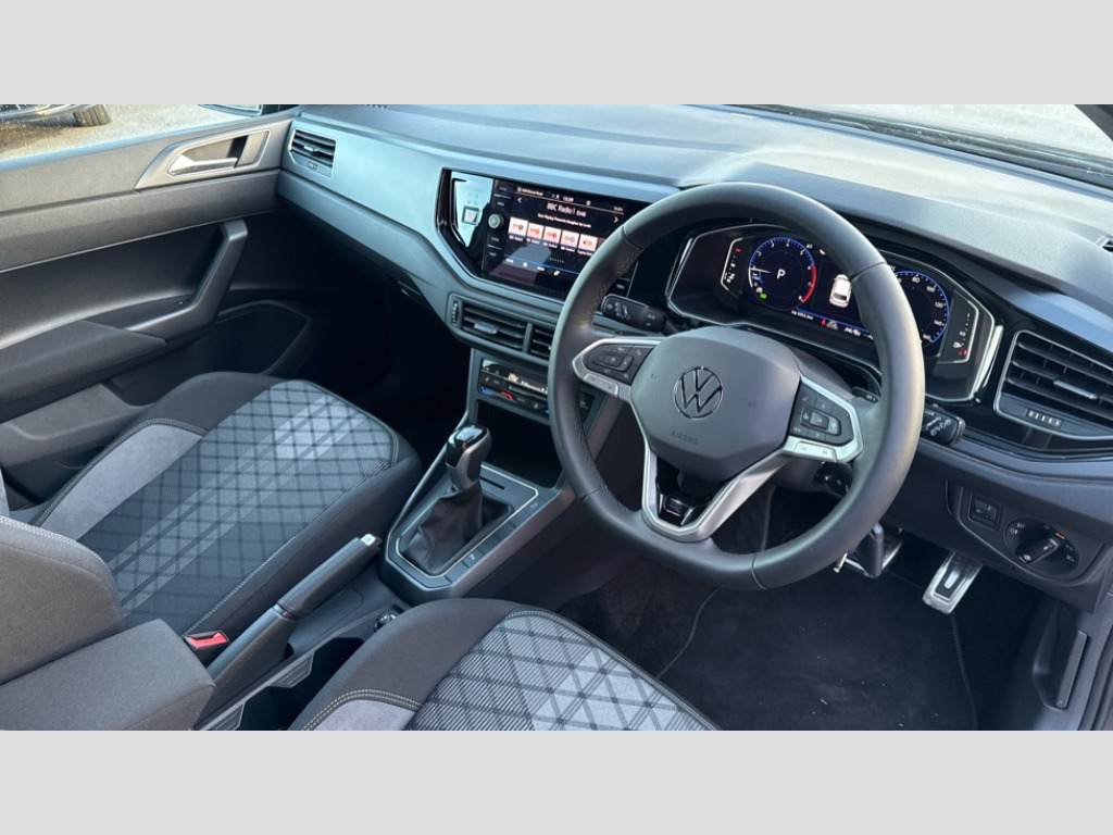 Volkswagen Polo 1.0 TSI 115 R-Line 5dr DSG Adaptive cruise control with follow-to-stop and speed limiter, Advanced driver attention and drowsiness monitor, Bluetooth mobile phone interface, Digital Cockpit Pro with 10.25" Display, Dynamic road sign display, Emergency call service, Multifunction camera, Power assisted speed sensitive steering, Preparation for We connect and We connect plus, Speedo and rev counter, electronic odometer, trip, service interval display and fuel gauge, Standard rear axle, Travel Assist - Lane keeping system and traffic jam assist, Travel assist including emergency assist, Trip computer, Warning signal and warning light for front and rear seatbelts not fastened, Washer fluid level indicator, Wireless app connect, Front wheel drive, Rear shock absorpion, Start-stop system with battery regeneration (recuperation - energy recovery during braking), DAB Digital radio, Diversity antenna for FM reception, Front and rear 6 speakers, Body colour bumpers, Body colour door handles, Electric front windows, Front scuff plates with R-Line logo, Heat insulating glass windscreen, Power folding adjustable/heated exterior mirrors and front passenger exterior mirror lowering function, Rear electric windows, Rear fog light, Rear side wing doors, Rear windscreen washer and wiper with interval delay, Third brake light, 12V power socket in centre console, 2 USB-C ports in the front, 2 USB-C charging sockets on the center console in the rear, 3 rear head restraints, 60/40 split folding rear seat and rear seat bench not split, Air care climatronic air conditoning system with active combination filter and 2-zone temperature control, Black roof lining, Carpet mats, front and rear, Chrome plated radiator grille inserts, air vent surrounds and light switch surrounds, Door and side trim panel, Driver and front passenger seat height adjustment, Driver/passenger sunvisors with illuminated vanity mirrors, Front centre armrest, Front footwell illumination, Front seat backrest storage pockets, Front sports comfort seats, Handbrake lever handle in leather, Headliner in recycled material, Isofix child seat preparation easy-fit (for two outer rear seats, and front passenger seat) compatible with I-size, Karoso artvelours cloth upholstery, Leather trimmed gear knob, LED interior light with switch off delay and dimmer, 2 reading lights front and rear, Luggage compartment cover, Luggage compartment floor, Luggage compartment lighting, Lumbar adjustment for front seats, Single front passenger seat, Stainless steel pedals, Standard pedal cluster, Three spoke leather wrapped multifunction steering wheel with shifting paddles, Light and sight pack - Polo R-Line/Black Edition, 3 point height adj front seatbelts + pretensioners, 3x3 point rear seatbelts, ABS, Driver and front passenger airbag with front passenger airbag deactivation, Drivers and front passengers safety optimised head restraints, ESC (Electronic stability control) + EDL (Electronic Differntial lock) and ASR (Traction control), Extended and predictive pedestrian/ cyclist protection, Front curtain and side airbags with center airbag, Front/rear disc brakes, Hill hold control, Manual child lock in rear doors, Single tone horn, Tyre pressure loss indicator, Alarm with interior protection, Anti-theft alarm system with interior monitoring, backup horn, and towing protection, Anti-theft wheel bolts, Electronic engine immobiliser, Chrome applications on rotary light, mirror adjustment, window regulator switches, outlet with frame in black, Dark grey anodised matt decorative inserts in dash and front door panels, 16" Coventry alloy wheels, Low rolling resistance tyres