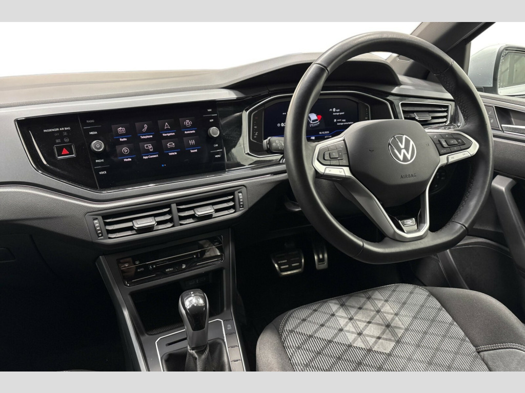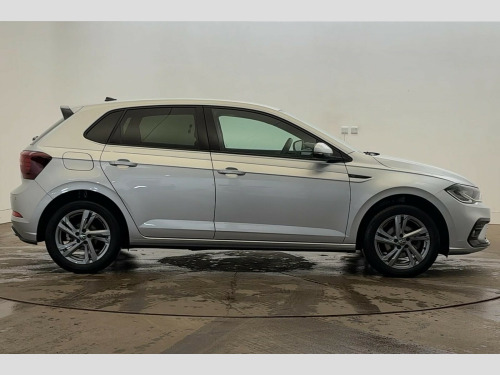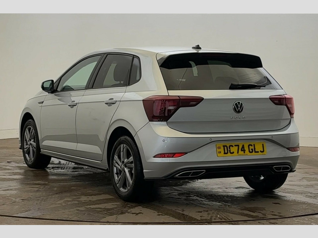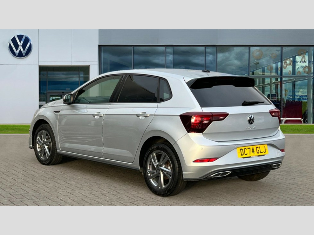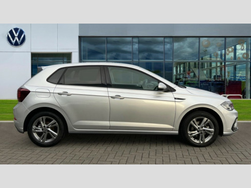 Volkswagen Polo 1.0 TSI 115 R-Line 5dr DSG Adaptive cruise control with follow-to-stop and speed limiter, Advanced driver attention and drowsiness monitor, Bluetooth mobile phone interface, Digital Cockpit Pro with 10.25" Display, Dynamic road sign display, Emergency call service, Multifunction camera, Power assisted speed sensitive steering, Preparation for We connect and We connect plus, Speedo and rev counter, electronic odometer, trip, service interval display and fuel gauge, Standard rear axle, Travel Assist - Lane keeping system and traffic jam assist, Travel assist including emergency assist, Trip computer, Warning signal and warning light for front and rear seatbelts not fastened, Washer fluid level indicator, Wireless app connect, Front wheel drive, Rear shock absorpion, Start-stop system with battery regeneration (recuperation - energy recovery during braking), DAB Digital radio, Diversity antenna for FM reception, Front and rear 6 speakers, Body colour bumpers, Body colour door handles, Electric front windows, Front scuff plates with R-Line logo, Heat insulating glass windscreen, Power folding adjustable/heated exterior mirrors and front passenger exterior mirror lowering function, Rear electric windows, Rear fog light, Rear side wing doors, Rear windscreen washer and wiper with interval delay, Third brake light, 12V power socket in centre console, 2 USB-C ports in the front, 2 USB-C charging sockets on the center console in the rear, 3 rear head restraints, 60/40 split folding rear seat and rear seat bench not split, Air care climatronic air conditoning system with active combination filter and 2-zone temperature control, Black roof lining, Carpet mats, front and rear, Chrome plated radiator grille inserts, air vent surrounds and light switch surrounds, Door and side trim panel, Driver and front passenger seat height adjustment, Driver/passenger sunvisors with illuminated vanity mirrors, Front centre armrest, Front footwell illumination, Front seat backrest storage pockets, Front sports comfort seats, Handbrake lever handle in leather, Headliner in recycled material, Isofix child seat preparation easy-fit (for two outer rear seats, and front passenger seat) compatible with I-size, Karoso artvelours cloth upholstery, Leather trimmed gear knob, LED interior light with switch off delay and dimmer, 2 reading lights front and rear, Luggage compartment cover, Luggage compartment floor, Luggage compartment lighting, Lumbar adjustment for front seats, Single front passenger seat, Stainless steel pedals, Standard pedal cluster, Three spoke leather wrapped multifunction steering wheel with shifting paddles, Light and sight pack - Polo R-Line/Black Edition, 3 point height adj front seatbelts + pretensioners, 3x3 point rear seatbelts, ABS, Driver and front passenger airbag with front passenger airbag deactivation, Drivers and front passengers safety optimised head restraints, ESC (Electronic stability control) + EDL (Electronic Differntial lock) and ASR (Traction control), Extended and predictive pedestrian/ cyclist protection, Front curtain and side airbags with center airbag, Front/rear disc brakes, Hill hold control, Manual child lock in rear doors, Single tone horn, Tyre pressure loss indicator, Alarm with interior protection, Anti-theft alarm system with interior monitoring, backup horn, and towing protection, Anti-theft wheel bolts, Electronic engine immobiliser, Chrome applications on rotary light, mirror adjustment, window regulator switches, outlet with frame in black, Dark grey anodised matt decorative inserts in dash and front door panels, 16" Coventry alloy wheels, Low rolling resistance tyres