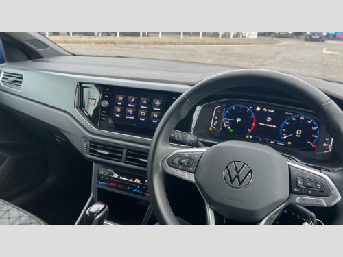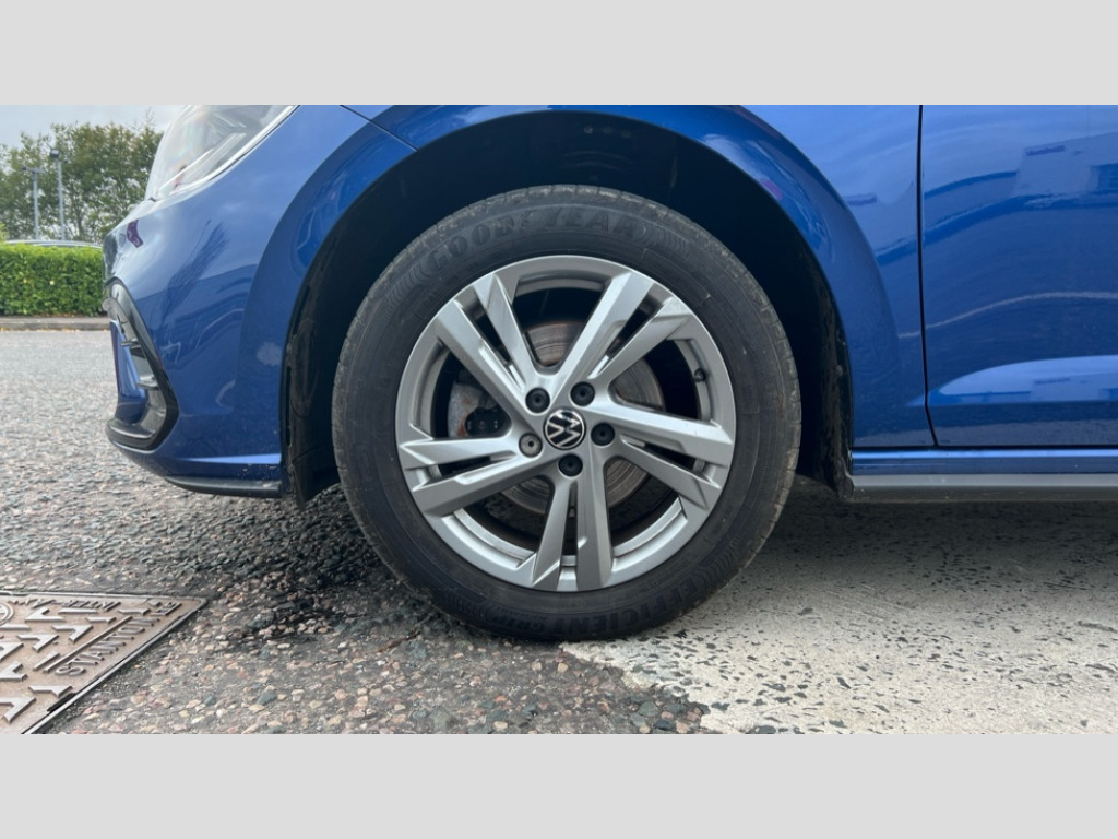 Volkswagen Polo 1.0 TSI 115 R-Line 5dr DSG Adaptive cruise control with follow-to-stop and speed limiter, Advanced driver attention and drowsiness monitor, Bluetooth mobile phone interface, Digital Cockpit Pro with 10.25" Display, Dynamic road sign display, Emergency call service, Multifunction camera, Power assisted speed sensitive steering, Preparation for We connect and We connect plus, Speedo and rev counter, electronic odometer, trip, service interval display and fuel gauge, Standard rear axle, Travel Assist - Lane keeping system and traffic jam assist, Travel assist including emergency assist, Trip computer, Warning signal and warning light for front and rear seatbelts not fastened, Washer fluid level indicator, Wireless app connect, Front wheel drive, Rear shock absorpion, Start-stop system with battery regeneration (recuperation - energy recovery during braking), DAB Digital radio, Diversity antenna for FM reception, Front and rear 6 speakers, Body colour bumpers, Body colour door handles, Electric front windows, Front scuff plates with R-Line logo, Heat insulating glass windscreen, Power folding adjustable/heated exterior mirrors and front passenger exterior mirror lowering function, Rear electric windows, Rear fog light, Rear side wing doors, Rear windscreen washer and wiper with interval delay, Third brake light, 12V power socket in centre console, 2 USB-C ports in the front, 2 USB-C charging sockets on the center console in the rear, 3 rear head restraints, 60/40 split folding rear seat and rear seat bench not split, Air care climatronic air conditoning system with active combination filter and 2-zone temperature control, Black roof lining, Carpet mats, front and rear, Chrome plated radiator grille inserts, air vent surrounds and light switch surrounds, Door and side trim panel, Driver and front passenger seat height adjustment, Driver/passenger sunvisors with illuminated vanity mirrors, Front centre armrest, Front footwell illumination, Front seat backrest storage pockets, Front sports comfort seats, Handbrake lever handle in leather, Headliner in recycled material, Isofix child seat preparation easy-fit (for two outer rear seats, and front passenger seat) compatible with I-size, Karoso artvelours cloth upholstery, Leather trimmed gear knob, LED interior light with switch off delay and dimmer, 2 reading lights front and rear, Luggage compartment cover, Luggage compartment floor, Luggage compartment lighting, Lumbar adjustment for front seats, Single front passenger seat, Stainless steel pedals, Standard pedal cluster, Three spoke leather wrapped multifunction steering wheel with shifting paddles, Light and sight pack - Polo R-Line/Black Edition, 3 point height adj front seatbelts + pretensioners, 3x3 point rear seatbelts, ABS, Driver and front passenger airbag with front passenger airbag deactivation, Drivers and front passengers safety optimised head restraints, ESC (Electronic stability control) + EDL (Electronic Differntial lock) and ASR (Traction control), Extended and predictive pedestrian/ cyclist protection, Front curtain and side airbags with center airbag, Front/rear disc brakes, Hill hold control, Manual child lock in rear doors, Single tone horn, Tyre pressure loss indicator, Alarm with interior protection, Anti-theft alarm system with interior monitoring, backup horn, and towing protection, Anti-theft wheel bolts, Electronic engine immobiliser, Chrome applications on rotary light, mirror adjustment, window regulator switches, outlet with frame in black, Dark grey anodised matt decorative inserts in dash and front door panels, 16" Coventry alloy wheels, Low rolling resistance tyres