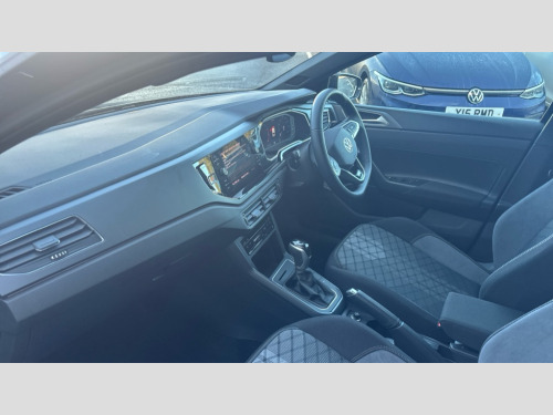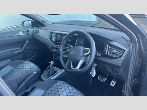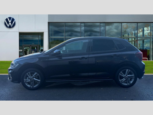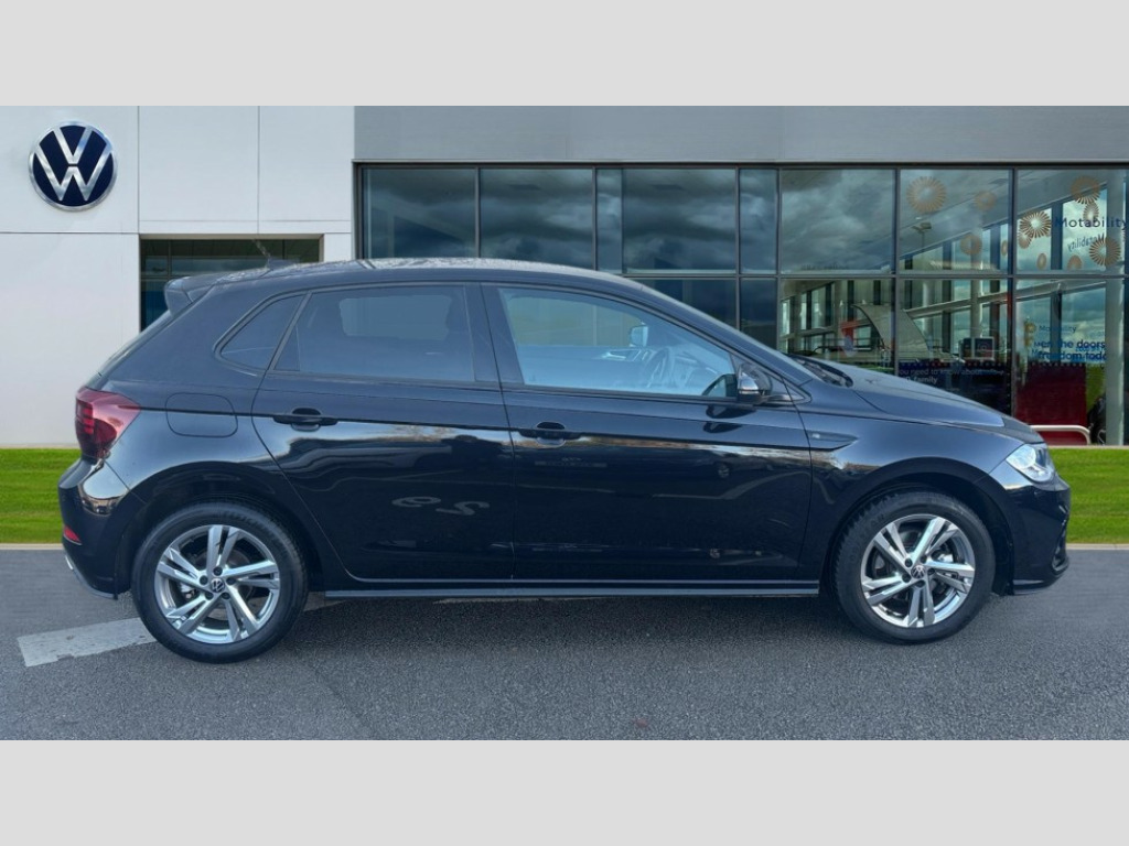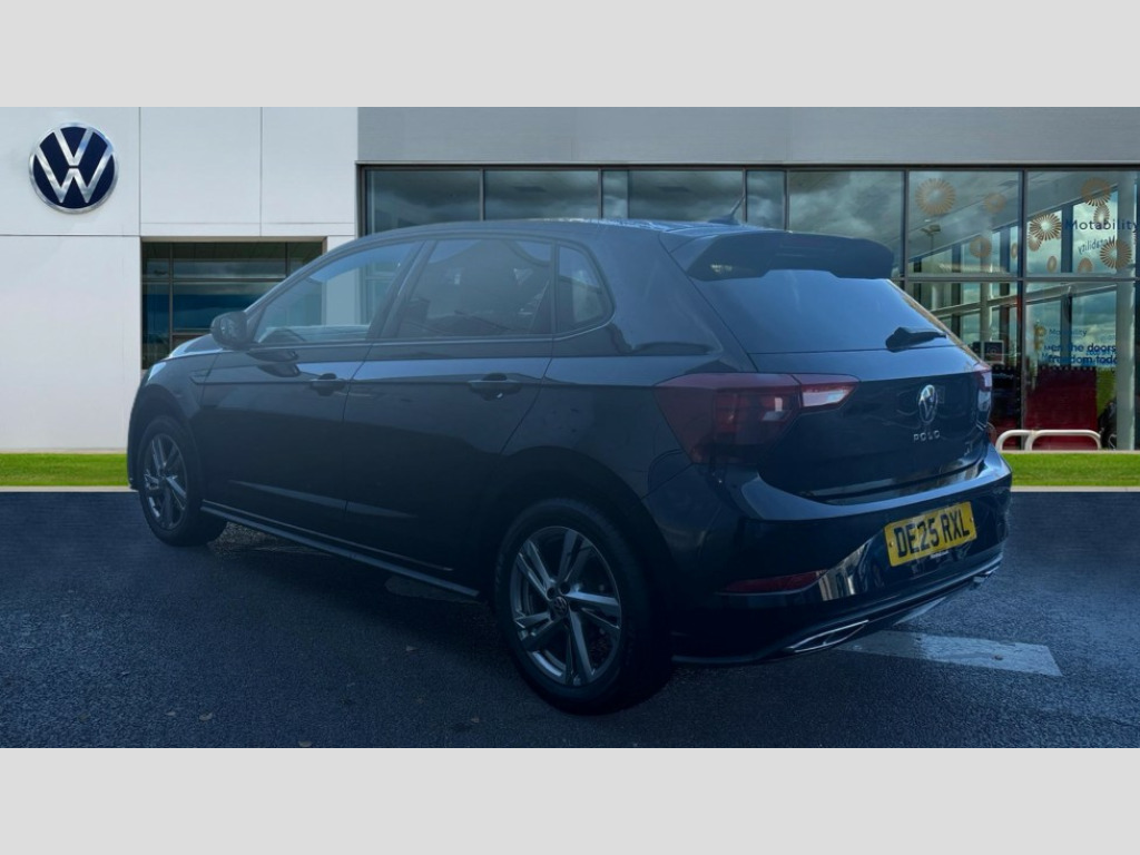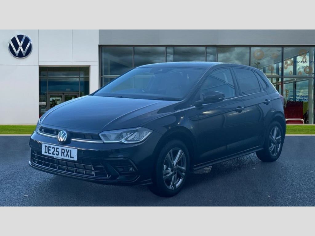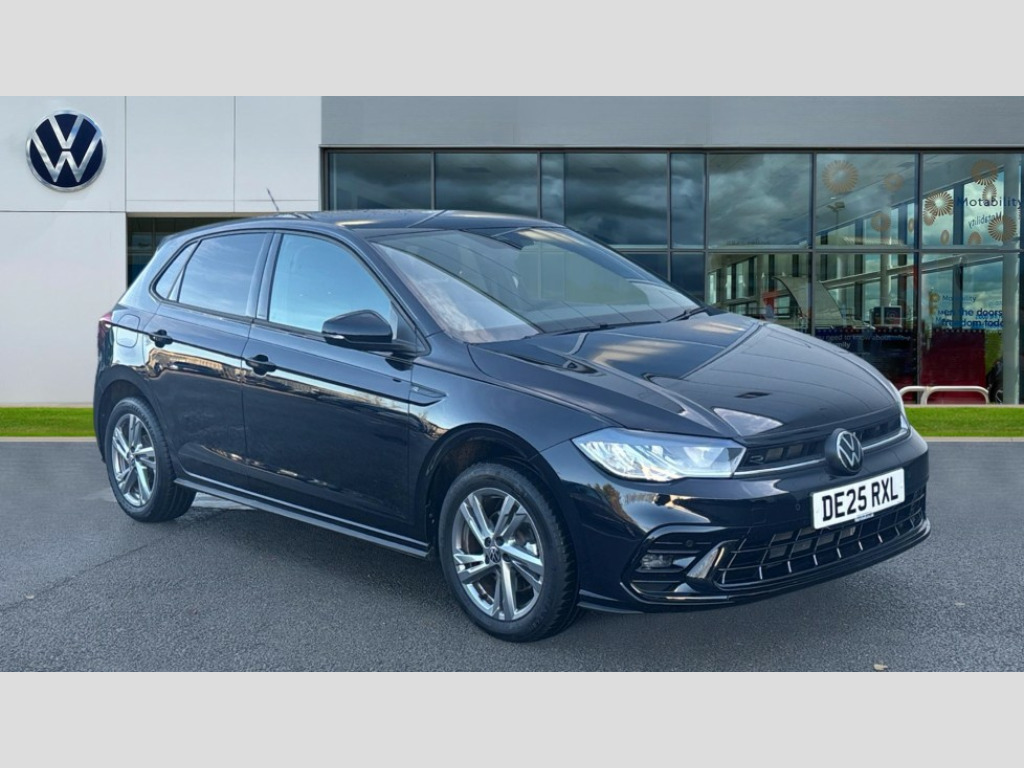 Volkswagen Polo 1.0 TSI 115 R-Line 5dr DSG Adaptive cruise control with follow-to-stop and speed limiter, Advanced driver attention and drowsiness monitor, Bluetooth mobile phone interface, Digital Cockpit Pro with 10.25" Display, Dynamic road sign display, Emergency call service, Multifunction camera, Power assisted speed sensitive steering, Preparation for We connect and We connect plus, Speedo and rev counter, electronic odometer, trip, service interval display and fuel gauge, Standard rear axle, Travel Assist - Lane keeping system and traffic jam assist, Travel assist including emergency assist, Trip computer, Warning signal and warning light for front and rear seatbelts not fastened, Washer fluid level indicator, Wireless app connect, Front wheel drive, Rear shock absorpion, Start-stop system with battery regeneration (recuperation - energy recovery during braking), DAB Digital radio, Diversity antenna for FM reception, Front and rear 6 speakers, Body colour bumpers, Body colour door handles, Electric front windows, Front scuff plates with R-Line logo, Heat insulating glass windscreen, Power folding adjustable/heated exterior mirrors and front passenger exterior mirror lowering function, Rear electric windows, Rear fog light, Rear side wing doors, Rear windscreen washer and wiper with interval delay, Third brake light, 12V power socket in centre console, 2 USB-C ports in the front, 2 USB-C charging sockets on the center console in the rear, 3 rear head restraints, 60/40 split folding rear seat and rear seat bench not split, Air care climatronic air conditoning system with active combination filter and 2-zone temperature control, Black roof lining, Carpet mats, front and rear, Chrome plated radiator grille inserts, air vent surrounds and light switch surrounds, Door and side trim panel, Driver and front passenger seat height adjustment, Driver/passenger sunvisors with illuminated vanity mirrors, Front centre armrest, Front footwell illumination, Front seat backrest storage pockets, Front sports comfort seats, Handbrake lever handle in leather, Headliner in recycled material, Isofix child seat preparation easy-fit (for two outer rear seats, and front passenger seat) compatible with I-size, Karoso artvelours cloth upholstery, Leather trimmed gear knob, LED interior light with switch off delay and dimmer, 2 reading lights front and rear, Luggage compartment cover, Luggage compartment floor, Luggage compartment lighting, Lumbar adjustment for front seats, Single front passenger seat, Stainless steel pedals, Standard pedal cluster, Three spoke leather wrapped multifunction steering wheel with shifting paddles, Light and sight pack - Polo R-Line/Black Edition, 3 point height adj front seatbelts + pretensioners, 3x3 point rear seatbelts, ABS, Driver and front passenger airbag with front passenger airbag deactivation, Drivers and front passengers safety optimised head restraints, ESC (Electronic stability control) + EDL (Electronic Differntial lock) and ASR (Traction control), Extended and predictive pedestrian/ cyclist protection, Front curtain and side airbags with center airbag, Front/rear disc brakes, Hill hold control, Manual child lock in rear doors, Single tone horn, Tyre pressure loss indicator, Alarm with interior protection, Anti-theft alarm system with interior monitoring, backup horn, and towing protection, Anti-theft wheel bolts, Electronic engine immobiliser, Chrome applications on rotary light, mirror adjustment, window regulator switches, outlet with frame in black, Dark grey anodised matt decorative inserts in dash and front door panels, 16" Coventry alloy wheels, Low rolling resistance tyres