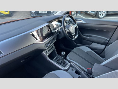 Volkswagen Polo 1.0 TSI 115 SEL 5dr App-Connect, Bluetooth Telephone preparation, Discover navigation + European map data, Driver alert system, Multifunction colour display, PAS - speed related, Service interval indicator, Start/stop system, Trip computer, Warning buzzer and light for front seatbelts unfastened, Battery regeneration during braking, 6 speakers, Composition media system with radio, glovebox mounted CD, colour touch screen, SD card, aux-in, USB, multimedia interface, DAB Digital radio, Automatic dimming interior rear view mirror with rain sensor, Automatic headlamp activation, Black grille with chrome surround, Black radiator grille with chrome insert, Body colour bumpers, Body colour door handles, Body colour rear spoiler, Body coloured side sills, Chrome insert to lower bumper, Chrome trimmed front air intake surrounds, Electric front windows, Electric operated/heated door mirrors, Front fog lights including static cornering, Front wash/wipe with interval delay, Fully galvanised body, Heated rear window with auto timer, High level 3rd brake light, LED daytime running lights, LED rear number plate lights, Manual coming/automatic leaving home lighting function, Rear electric windows, Rear windscreen washer and wiper with interval delay, 12V power socket in centre console, 2 bag hooks in luggage compartment, 2 cupholders, 3 rear head restraints, 3 spoke steering wheel, 60/40 split folding rear seat, Ambient lighting, Chrome-plated electric window button surround, Climate control - 2 zone electronic air conditioning with automatic air recirculation and allergy filter, Driver/front passenger seat height adjustment + underseat drawers, Driver/passenger sunvisors with illuminated vanity mirrors, Dust/pollen filter, Front seat backrest storage nets, Front/rear reading lights, Glovebox, Handbrake grip button in chrome effect, Height/reach adjustable steering column, Instrument lighting, white adjustable panel illumination, Interior light with delay, Isofix Preparation 2 Rear child seats, Jack and tool kit, LED footwell lights, Luggage compartment cover, removable, Luggage compartment lighting, Matt chrome gear lever gaiter surround, Multifunction leather steering wheel with leather gear knob/handbrake grip, Storage compartment in front doors, Storage compartment in rear doors, Storage compartment under front seats, Variable boot floor, Variable Luggage compartment, Light and sight pack - Polo, 3 point height adj front seatbelts + pretensioners, 3x3 point rear seatbelts, ABS, Automatic post collision braking, Driver/front passenger airbag, Driver/Passenger whiplash optimised head restraints, ESP with EDL + ASR, Front and rear passengers curtain airbag system including front side airbags, Front passenger airbag deactivation, Front/rear disc brakes, Hill hold control, Hydraulic Brake Assist (HBA), Two tone horn, Tyre pressure monitoring system, Alarm with remote central locking and interior protection, Electronic engine immobiliser, Air vents in Matt chrome, Chrome plated electric mirror adjustment light switch surround, Matt chrome interior trim, Space saver spare wheel