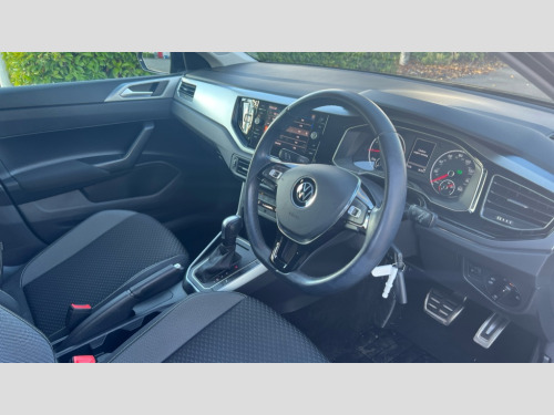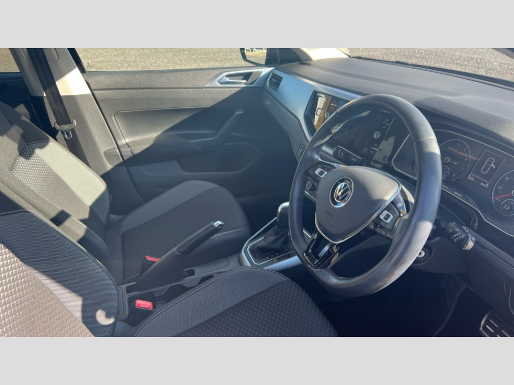 Volkswagen Polo 1.0 TSI 95 Active 5dr DSG Digital clock, Driver alert system, Emergency call service, Multifunction computer plus, Power assisted speed sensitive steering, Speedo and rev counter, electronic odometer, trip, service interval display and fuel gauge, Start/stop system, Volkswagen connect, Warning buzzer and light for front seatbelts unfastened, Wireless app connect, Battery regeneration during braking, Galvanished body, Diversity antenna for FM reception, Front and rear 6 speakers, Active aluminium scuff plates, Active badge on B Pillar, Black grille with chrome surround, Black radiator grille with chrome louvres, Body colour bumpers, Body colour door handles, Body colour door mirrors with integrated indicators, Body colour rear spoiler, Body coloured side sills, Electric front windows, Electrically adjustable and heated door mirrors with reverse activated kerb view adjustment on passenger's side, Front windscreen washers and wipers with 4 speed intermittent delay, Heat insulating rear tinted glass from B-pillar backwards approx 65% tinted, Heated rear window with auto timer, High level 3rd brake light, LED daytime running lights, LED rear number plate lights, Rear electric windows, Rear windscreen washer and wiper with interval delay, reverse activated, 2 bag hooks in luggage compartment, 2 front and 2 rear reading lights, 2 front cupholders and 12 V socket with cover, 3 rear head restraints, 4 grab handles, 60/40 split folding rear seat, Ambient lighting, Centre console storage with open storage compartment, Chrome interior door handles, Climate control - 2 zone electronic air conditioning with automatic air recirculation and allergy filter, Driver and front passenger seat height adjustment, Driver and front passenger sunvisors with illuminated vanity mirrors, Dust/pollen filter, Folding rear seat backrest, Front + rear carpet mats, Front head restraints, Front seat backrest storage pockets, Gear lever gaiter in black trim surround, Glovebox, Handbrake grip button in chrome effect, Height/reach adjustable steering column, Instrument lighting, adjustable panel illumination, Interior light with delay, Isofix Preparation 2 Rear child seats, Leather gear knob and handbrake grip, Luggage compartment cover, removable, Luggage compartment lighting, Luggage compartment with variable load floor, Lumbar adjustment for front seats, Special Active Waveform cloth upholstery, Stainless steel foot pedals, Storage compartment in front doors, Storage compartment in rear doors, Storage compartment under front seats, Sunglasses holder, Three spoke leather wrapped multifunction sports steering wheel with shifting paddles, Discover media navigation system with 8" display including streaming and internet pack - Polo, Light and sight pack - Polo, Winter pack - Polo, 3 point height adj front seatbelts + pretensioners, 3x3 point rear seatbelts, ABS, Automatic post collision braking, Driver/front passenger airbag, Drivers and front passengers safety optimised head restraints, ESP with EDL + ASR, Front and rear passenger curtain airbags, Front disc brakes and rear drum brakes, Front passenger airbag deactivation, Front seat side impact airbags, Hill hold control, Hydraulic Brake Assist (HBA), Single tone horn, Tyre pressure monitoring system, Alarm with interior protection and deactivation via infotainment system, Electronic engine immobiliser, Remote central locking with 2 remote folding keys, Air vents in High gloss black, Limestone grey decorative inserts, 15" Galway alloy wheels with anti theft wheel bolts