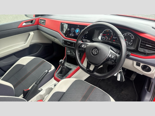Volkswagen Polo 1.0 TSI 95 Beats 5dr App-Connect, Bluetooth Telephone preparation, Driver alert system, Multifunction colour display, PAS - speed related, Service interval indicator, Start/stop system, Trip computer, Warning buzzer and light for front seatbelts unfastened, Battery regeneration during braking, Beats audio system, Composition media system with radio, glovebox mounted CD, colour touch screen, SD card, aux-in, USB, multimedia interface, DAB Digital radio, Automatic headlamp activation, Black door mirrors with integrated indicators, Black grille with chrome surround, Black radiator grille with chrome insert, Body colour bumpers, Body colour door handles, Body colour rear spoiler, Body coloured side sills, Chrome trimmed front air intake surrounds, Electric front windows, Electric operated/heated door mirrors, Front fog lights including static cornering, Front wash/wipe with interval delay, Fully galvanised body, Heated rear window with auto timer, High level 3rd brake light, LED daytime running lights, LED rear number plate lights, Rear electric windows, Rear tinted glass from B-pillar backwards approx 65% tinted, Rear windscreen washer and wiper with interval delay, Stainless steel door sill protection, Unique beats decals on bonnet and roof, Unique beats logo on B pillar, 12V power socket in centre console, 2 bag hooks in luggage compartment, 2 cupholders, 3 rear head restraints, 3 spoke steering wheel, 60/40 split folding rear seat, Driver/front passenger seat height adjustment + underseat drawers, Driver/passenger sunvisors with illuminated vanity mirrors, Dust/pollen filter, Front seat backrest storage nets, Front sport seats, Front/rear reading lights, Glovebox, Handbrake grip button in chrome effect, Height/reach adjustable steering column, Instrument lighting, white adjustable panel illumination, Interior light with delay, Isofix Preparation 2 Rear child seats, Jack and tool kit, Leather door panels, Luggage compartment cover, removable, Luggage compartment lighting, Matt chrome gear lever gaiter surround, Multifunction leather steering wheel with leather gear knob/handbrake grip, Storage compartment in front doors, Storage compartment in rear doors, Storage compartment under front seats, Tracks 2 cloth upholstery, Variable Luggage compartment, 3 point height adj front seatbelts + pretensioners, 3x3 point rear seatbelts, ABS, Automatic post collision braking, Driver/front passenger airbag, Driver/Passenger whiplash optimised head restraints, ESP with EDL + ASR, Front and rear passengers curtain airbag system including front side airbags, Front disc brakes and rear drum brakes, Front passenger airbag deactivation, Hill hold control, Hydraulic Brake Assist (HBA), Two tone horn, Tyre pressure monitoring system, Alarm with remote central locking and interior protection, Electronic engine immobiliser, Matt chrome interior trim, Silver grey surround to air vents, Velvet red dashboard pad, Tyre repair kit