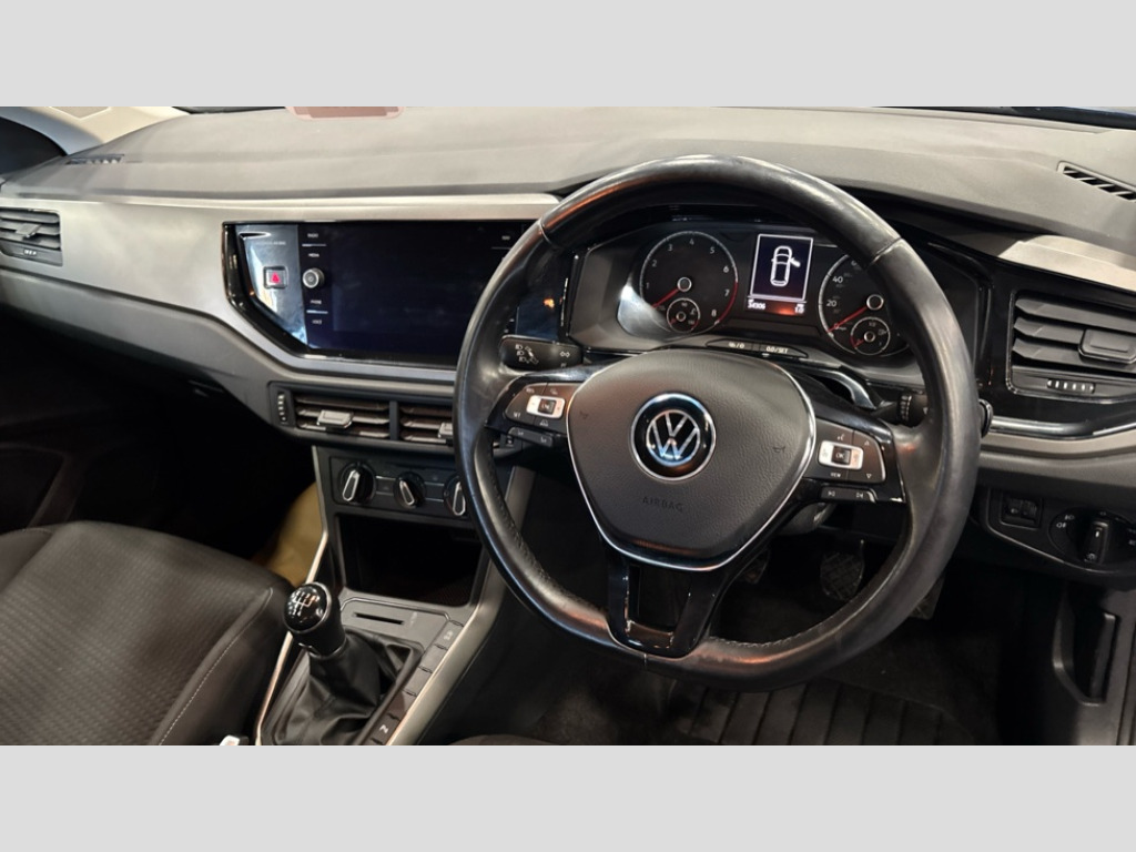 Volkswagen Polo 1.0 TSI 95 Match 5dr Digital clock, Driver alert system, Emergency call service, Multifunction computer plus, Power assisted speed sensitive steering, Speedo and rev counter, electronic odometer, trip, service interval display and fuel gauge, Start/stop system, Volkswagen connect, Warning buzzer and light for front seatbelts unfastened, Wireless app connect, Battery regeneration during braking, Galvanished body, Diversity antenna for FM reception, Front and rear 6 speakers, Black grille with chrome surround, Black radiator grille with chrome louvres, Body colour bumpers, Body colour door handles, Body colour rear spoiler, Body coloured side sills, Electric front windows, Electrically adjustable and heated door mirrors with reverse activated kerb view adjustment on passenger's side, Front windscreen washers and wipers with 4 speed intermittent delay, Heated rear window with auto timer, High level 3rd brake light, LED daytime running lights, LED rear number plate lights, Rear electric windows, Rear windscreen washer and wiper with interval delay, reverse activated, 2 bag hooks in luggage compartment, 2 front and 2 rear reading lights, 2 front cupholders and 12 V socket with cover, 3 rear head restraints, 4 grab handles, 60/40 split folding rear seat, Centre console storage with open storage compartment, Chrome interior door handles, Driver and front passenger seat height adjustment, Driver and front passenger sunvisors with illuminated vanity mirrors, Dust/pollen filter, Folding rear seat backrest, Front head restraints, Front seat backrest storage pockets, Gear lever gaiter in black trim surround, Glovebox, Handbrake grip button in chrome effect, Height/reach adjustable steering column, Instrument lighting, adjustable panel illumination, Interior light with delay, Isofix Preparation 2 Rear child seats, Leather gear knob and handbrake grip, Leather multifunction steering wheel, Luggage compartment cover, removable, Luggage compartment lighting, Luggage compartment with variable load floor, Storage compartment in front doors, Storage compartment in rear doors, Storage compartment under front seats, Sunglasses holder, 3 point height adj front seatbelts + pretensioners, 3x3 point rear seatbelts, ABS, Automatic post collision braking, Driver/front passenger airbag, Drivers and front passengers safety optimised head restraints, ESP with EDL + ASR, Front and rear passenger curtain airbags, Front disc brakes and rear drum brakes, Front passenger airbag deactivation, Front seat side impact airbags, Hill hold control, Hydraulic Brake Assist (HBA), Single tone horn, Tyre pressure monitoring system, Alarm with interior protection and deactivation via infotainment system, Electronic engine immobiliser, Remote central locking with 2 remote folding keys, Air vents in High gloss black, Limestone grey decorative inserts