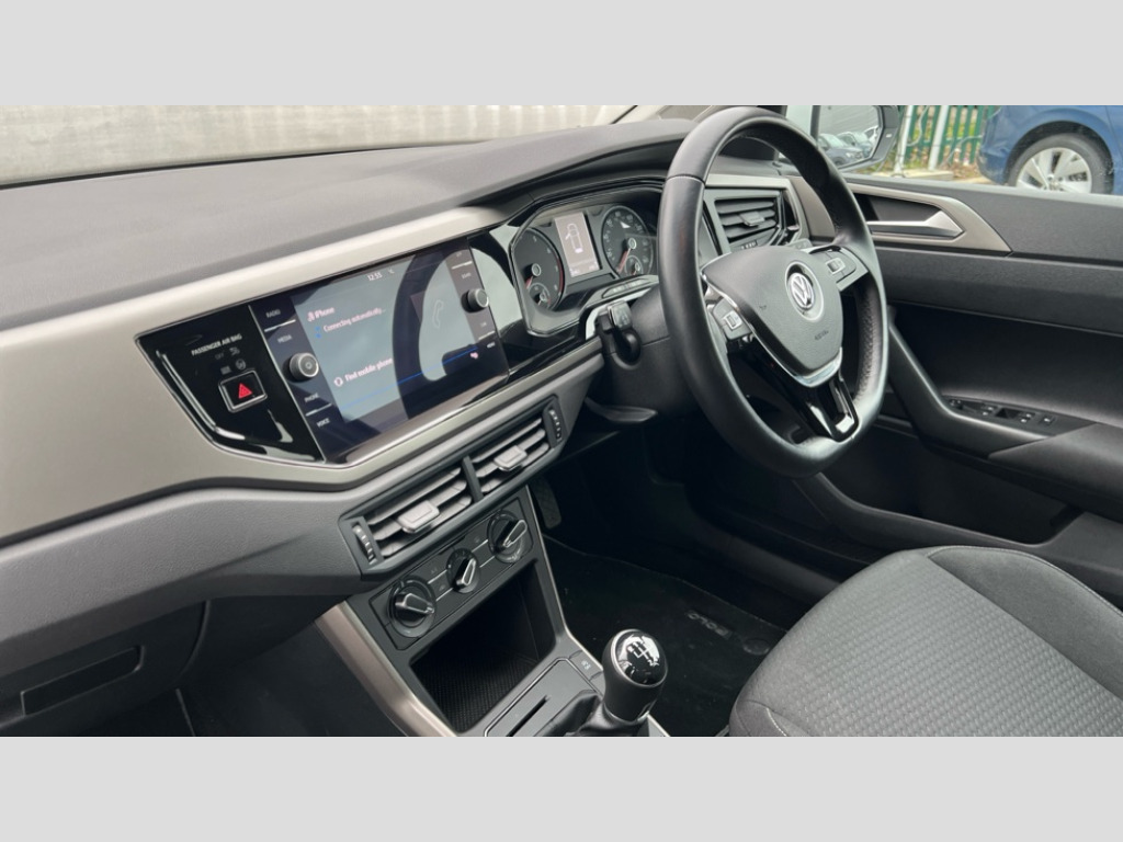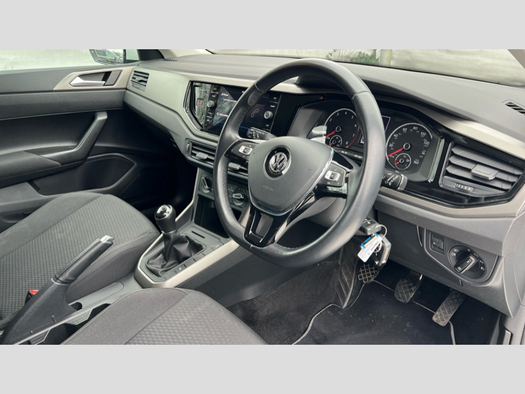 Volkswagen Polo 1.0 TSI 95 Match 5dr App-Connect, Digital clock, Driver alert system, Multifunction computer plus, Power assisted speed sensitive steering, Speedo and rev counter, electronic odometer, trip, service interval display and fuel gauge, Start/stop system, Volkswagen connect, Warning buzzer and light for front seatbelts unfastened, Battery regeneration during braking, Galvanished body, Black grille with chrome surround, Black radiator grille with chrome louvres, Body colour bumpers, Body colour door handles, Body colour rear spoiler, Body coloured side sills, Electric front windows, Front fog lights including static cornering, Front windscreen washers and wipers with 4 speed intermittent delay, Heated rear window with auto timer, High level 3rd brake light, Internally adjustable door mirrors, LED daytime running lights, LED rear number plate lights, Rear electric windows, Rear windscreen washer and wiper with interval delay, reverse activated, 2 bag hooks in luggage compartment, 2 front and 2 rear reading lights, 2 front cupholders and 12 V socket with cover, 3 rear head restraints, 4 grab handles, 60/40 split folding rear seat, Centre console storage with open storage compartment, Chrome interior door handles, Driver and front passenger seat height adjustment, Driver and front passenger sunvisors with illuminated vanity mirrors, Dust/pollen filter, Folding rear seat backrest, Front head restraints, Front seat backrest storage pockets, Gear lever gaiter in black trim surround, Glovebox, Handbrake grip button in chrome effect, Height/reach adjustable steering column, Instrument lighting, adjustable panel illumination, Interior light with delay, Isofix Preparation 2 Rear child seats, Leather gear knob and handbrake grip, Leather multifunction steering wheel, Luggage compartment cover, removable, Luggage compartment lighting, Luggage compartment with variable load floor, Storage compartment in front doors, Storage compartment in rear doors, Storage compartment under front seats, Sunglasses holder, 3 point height adj front seatbelts + pretensioners, 3x3 point rear seatbelts, ABS, Automatic post collision braking, Driver/front passenger airbag, Drivers and front passengers safety optimised head restraints, ESP with EDL + ASR, Front and rear passenger curtain airbags, Front disc brakes and rear drum brakes, Front passenger airbag deactivation, Front seat side impact airbags, Hill hold control, Hydraulic Brake Assist (HBA), Single tone horn, Tyre pressure monitoring system, Alarm with interior protection and deactivation via infotainment system, Electronic engine immobiliser, Remote central locking with 2 remote folding keys, Air vents in High gloss black, Limestone grey decorative inserts