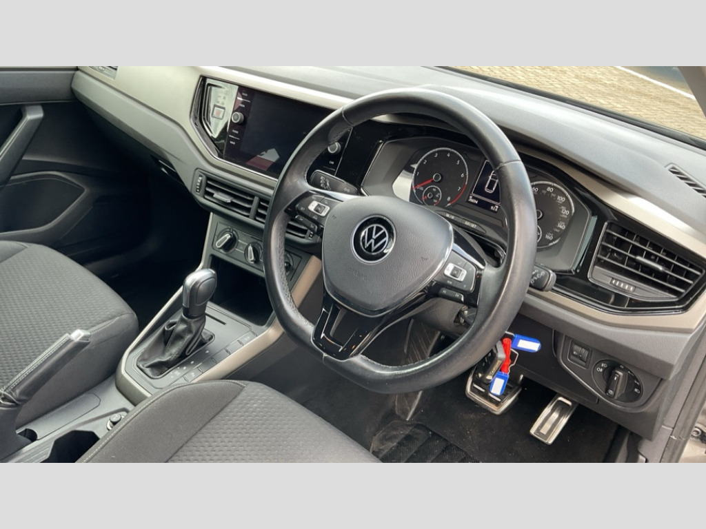 Volkswagen Polo 1.0 TSI 95 Match 5dr DSG Digital clock, Driver alert system, Emergency call service, Multifunction computer plus, Power assisted speed sensitive steering, Speedo and rev counter, electronic odometer, trip, service interval display and fuel gauge, Start/stop system, Volkswagen connect, Warning buzzer and light for front seatbelts unfastened, Wireless app connect, Battery regeneration during braking, Galvanished body, Diversity antenna for FM reception, Front and rear 6 speakers, Black grille with chrome surround, Black radiator grille with chrome louvres, Body colour bumpers, Body colour door handles, Body colour rear spoiler, Body coloured side sills, Electric front windows, Electrically adjustable and heated door mirrors with reverse activated kerb view adjustment on passenger's side, Front windscreen washers and wipers with 4 speed intermittent delay, Heated rear window with auto timer, High level 3rd brake light, LED daytime running lights, LED rear number plate lights, Rear electric windows, Rear windscreen washer and wiper with interval delay, reverse activated, 2 bag hooks in luggage compartment, 2 front and 2 rear reading lights, 2 front cupholders and 12 V socket with cover, 3 rear head restraints, 4 grab handles, 60/40 split folding rear seat, Centre console storage with open storage compartment, Chrome interior door handles, Driver and front passenger seat height adjustment, Driver and front passenger sunvisors with illuminated vanity mirrors, Dust/pollen filter, Folding rear seat backrest, Front head restraints, Front seat backrest storage pockets, Gear lever gaiter in black trim surround, Glovebox, Handbrake grip button in chrome effect, Height/reach adjustable steering column, Instrument lighting, adjustable panel illumination, Interior light with delay, Isofix Preparation 2 Rear child seats, Leather gear knob and handbrake grip, Luggage compartment cover, removable, Luggage compartment lighting, Luggage compartment with variable load floor, Storage compartment in front doors, Storage compartment in rear doors, Storage compartment under front seats, Sunglasses holder, 3 point height adj front seatbelts + pretensioners, 3x3 point rear seatbelts, ABS, Automatic post collision braking, Driver/front passenger airbag, Drivers and front passengers safety optimised head restraints, ESP with EDL + ASR, Front and rear passenger curtain airbags, Front disc brakes and rear drum brakes, Front passenger airbag deactivation, Front seat side impact airbags, Hill hold control, Hydraulic Brake Assist (HBA), Single tone horn, Tyre pressure monitoring system, Alarm with interior protection and deactivation via infotainment system, Electronic engine immobiliser, Remote central locking with 2 remote folding keys, Air vents in High gloss black, Limestone grey decorative inserts