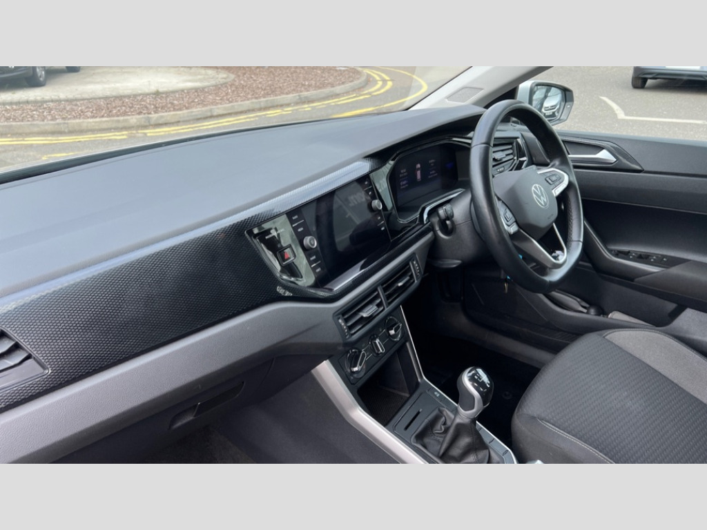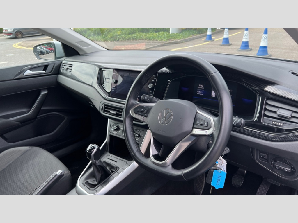 Volkswagen Polo 1.0 TSI Life 5dr Adaptive cruise control without follow-to-stop and speed limiter, Bluetooth mobile phone interface, Driver alert system, Emergency call service, Front assist system, Power assisted speed sensitive steering, Preparation for We connect and We connect plus, Speedo and rev counter, electronic odometer, trip, service interval display and fuel gauge, Standard rear axle, Travel Assist - Lane keeping system and traffic jam assist, Travel assist including emergency assist, Trip computer, Warning signal and warning light for front and rear seatbelts not fastened, Washer fluid level indicator, Wireless app connect, Front wheel drive, Rear shock absorpion, Start-stop system with battery regeneration (recuperation - energy recovery during braking), DAB Digital radio, Diversity antenna for FM reception, Front and rear 6 speakers, Automatic dimming interior rear view mirror, Body colour bumpers, Body colour door handles, Body colour door mirrors, Electric front windows, Heat insulating darkened glass in side and rear windows, Heat insulating glass windscreen, Power folding adjustable/heated exterior mirrors and front passenger exterior mirror lowering function, Rain sensor, Rear electric windows, Rear fog light, Rear side wing doors, Rear windscreen washer and wiper with interval delay, Third brake light, 12V power socket in centre console, 2 front and 2 rear reading lights, 2 USB-C ports in the front, 2 USB-C charging sockets on the center console in the rear, 3 rear head restraints, 60/40 split folding rear seat and rear seat bench not split, Ceramique headliner, Chrome plated radiator grille inserts, air vent surrounds and light switch surrounds, Door and side trim panel, Driver and front passenger seat height adjustment, Driver/passenger sunvisors with illuminated vanity mirrors, Front centre armrest, Front seat backrest storage pockets, Front standard seats, Handbrake lever handle in leather, Hartley/Thomas cloth upholstery, Isofix child seat preparation easy-fit (for two outer rear seats, and front passenger seat) compatible with I-size, Leather trimmed gear knob, Luggage compartment cover, Luggage compartment floor, Luggage compartment lighting, Multifunction steering wheel, Single front passenger seat, Standard pedal cluster, Light and vision pack - Polo, 3 point height adj front seatbelts + pretensioners, 3x3 point rear seatbelts, ABS, Driver and front passenger airbag with front passenger airbag deactivation, Drivers and front passengers safety optimised head restraints, ESC (Electronic stability control) + EDL (Electronic Differntial lock) and ASR (Traction control), Extended and predictive pedestrian/ cyclist protection, Front curtain and side airbags with center airbag, Front disc brakes, Hill hold control, Manual child lock in rear doors, Rear drum brakes, Single tone horn, Tyre pressure loss indicator, Alarm with interior protection, Anti-theft alarm system with interior monitoring, backup horn, and towing protection, Anti-theft wheel bolts, Electronic engine immobiliser, Lava stone black gloss/matt decorative inserts in dash and front door panels, Low rolling resistance tyres