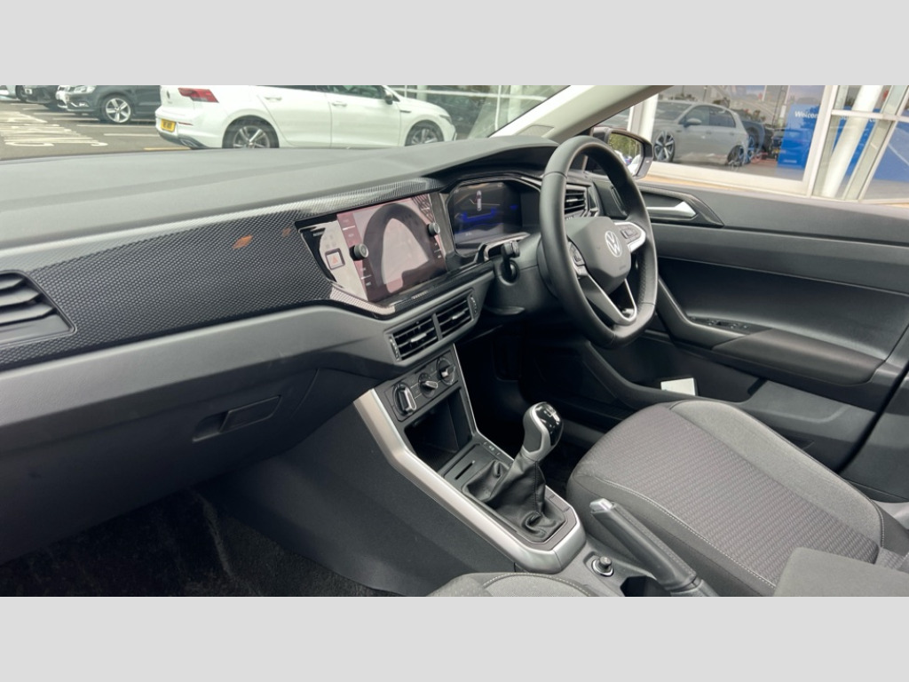 Volkswagen Polo 1.0 TSI Life 5dr Advanced driver attention and drowsiness monitor, Bluetooth mobile phone interface, Dynamic road sign display, Emergency call service, Mobile phone preparation with inductive charging function, Multifunction camera, Power assisted speed sensitive steering, Predictive adaptive cruise control without follow-to-stop and speed limiter, Preparation for navigation system with media and internet package, Preparation for We connect and We connect plus, Speedo and rev counter, electronic odometer, trip, service interval display and exterior temperature gauge, Standard rear axle, Travel Assist - Lane keeping system and traffic jam assist, Travel assist including emergency assist, Trip computer, Warning signal and warning light for front and rear seatbelts not fastened, Washer fluid level indicator, Wireless app connect, Front wheel drive, Rear shock absorpion, Start-stop system with battery regeneration (recuperation - energy recovery during braking), DAB Digital radio, Diversity antenna for FM reception, Automatic dimming interior rear view mirror, Automatic headlight control with LED separate daytime running lights with coming/leaving home function, Body colour bumpers with chrome inserts, Body colour door handles, Body colour door mirrors, Electric front windows, Engine badge deletion, Headlight range adjustment, Heat insulating and laminated safety glass windshield, LED Headlights, LED rear combination lamps, Power folding adjustable/heated exterior mirrors and front passenger exterior mirror lowering function, Rain sensor, Rear electric windows, Rear fog light, Rear side wing doors, Rear windscreen washer and wiper with interval delay, Third brake light, 12V power socket in centre console, 2 front and 2 rear reading lights with switch off delay and dimmer, 2 USB-C ports in the front, 2 USB-C charging sockets on the center console in the rear, 3 rear head restraints, 60/40 split folding rear seat and rear seat bench not split, Ceramique roof lining, Chrome plated radiator grille inserts, air vent surrounds and light switch surrounds, Door and side trim panel, Driver and front passenger seat height adjustment, Driver/passenger sunvisors with illuminated vanity mirrors, Front centre armrest, Front seat backrest storage pockets, Front standard seats, Handbrake lever handle in leather, Hartley/Thomas cloth upholstery, Headliner in recycled material, Isofix child seat preparation easy-fit (for two outer rear seats, and front passenger seat) compatible with I-size, Leather trimmed gear knob, Luggage compartment cover, Luggage compartment lighting, Removable luggage compartment floor, Single front passenger seat, Standard climatic zones, Standard pedal cluster, Three spoke leather wrapped multifunction steering wheel, 3 point height adj front seatbelts + pretensioners, 3x3 point rear seatbelts, ABS, Driver and front passenger airbag with front passenger airbag deactivation, Drivers and front passengers safety optimised head restraints, ESC (Electronic stability control) + EDL (Electronic Differntial lock) and ASR (Traction control), Extended and predictive pedestrian/ cyclist protection, Front assist with autonomous emergency braking (for Adaptive Cruise Control ACC up to 130 mph), Front curtain and side airbags with center airbag, Front disc brakes, Hill hold control, Manual child lock in rear doors, Rear drum brakes, Single tone horn, Tyre pressure loss indicator, Alarm with interior protection, Anti-theft alarm system with interior monitoring, backup horn, and towing protection, Anti-theft wheel bolts, Electronic engine immobiliser, Lava stone black gloss/matt decorative inserts in dash and front door panels, Low rolling resistance tyres
