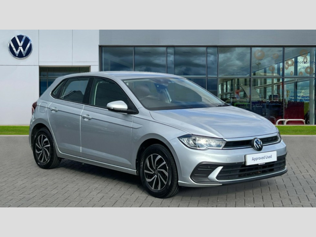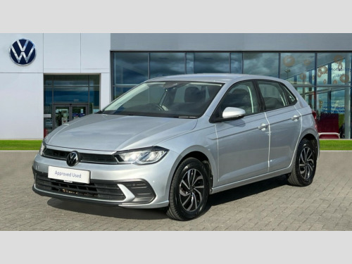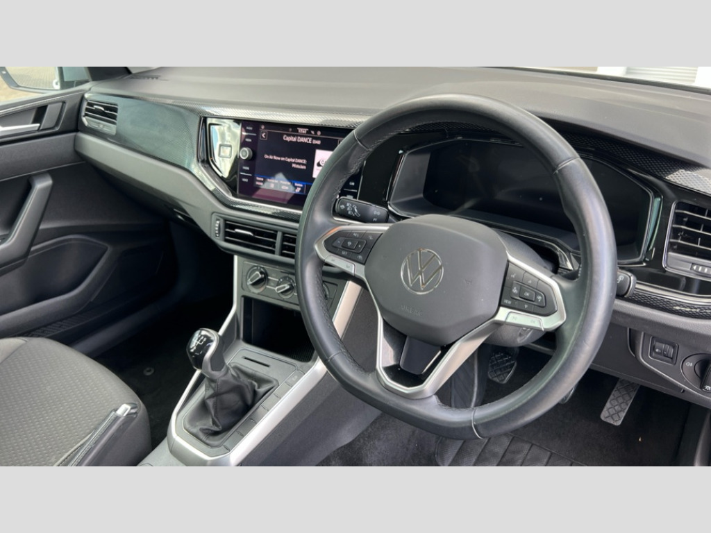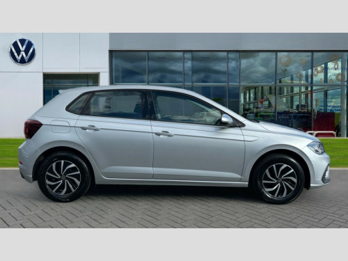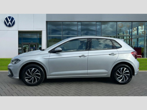 Volkswagen Polo 1.0 TSI Life 5dr Adaptive cruise control without follow-to-stop and speed limiter, Bluetooth mobile phone interface, Driver alert system, Emergency call service, Front assist system, Power assisted speed sensitive steering, Preparation for We connect and We connect plus, Speedo and rev counter, electronic odometer, trip, service interval display and fuel gauge, Standard rear axle, Travel Assist - Lane keeping system and traffic jam assist, Travel assist including emergency assist, Trip computer, Warning signal and warning light for front and rear seatbelts not fastened, Washer fluid level indicator, Wireless app connect, Front wheel drive, Rear shock absorpion, Start-stop system with battery regeneration (recuperation - energy recovery during braking), DAB Digital radio, Diversity antenna for FM reception, Front and rear 6 speakers, Automatic dimming interior rear view mirror, Body colour bumpers, Body colour door handles, Body colour door mirrors, Electric front windows, Heat insulating darkened glass in side and rear windows, Heat insulating glass windscreen, Power folding adjustable/heated exterior mirrors and front passenger exterior mirror lowering function, Rain sensor, Rear electric windows, Rear fog light, Rear side wing doors, Rear windscreen washer and wiper with interval delay, Third brake light, 12V power socket in centre console, 2 front and 2 rear reading lights, 2 USB-C ports in the front, 2 USB-C charging sockets on the center console in the rear, 3 rear head restraints, 60/40 split folding rear seat and rear seat bench not split, Chrome plated radiator grille inserts, air vent surrounds and light switch surrounds, Door and side trim panel, Driver and front passenger seat height adjustment, Driver/passenger sunvisors with illuminated vanity mirrors, Front centre armrest, Front seat backrest storage pockets, Front standard seats, Handbrake lever handle in leather, Hartley/Thomas cloth upholstery, Headliner in recycled material, Isofix child seat preparation easy-fit (for two outer rear seats, and front passenger seat) compatible with I-size, Leather trimmed gear knob, Luggage compartment cover, Luggage compartment floor, Luggage compartment lighting, Multifunction steering wheel, Single front passenger seat, Standard pedal cluster, Light and vision pack - Polo, 3 point height adj front seatbelts + pretensioners, 3x3 point rear seatbelts, ABS, Driver and front passenger airbag with front passenger airbag deactivation, Drivers and front passengers safety optimised head restraints, ESC (Electronic stability control) + EDL (Electronic Differntial lock) and ASR (Traction control), Extended and predictive pedestrian/ cyclist protection, Front curtain and side airbags with center airbag, Front disc brakes, Hill hold control, Manual child lock in rear doors, Rear drum brakes, Single tone horn, Tyre pressure loss indicator, Alarm with interior protection, Anti-theft alarm system with interior monitoring, backup horn, and towing protection, Anti-theft wheel bolts, Electronic engine immobiliser, Lava stone black gloss/matt decorative inserts in dash and front door panels, Low rolling resistance tyres