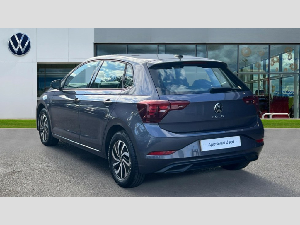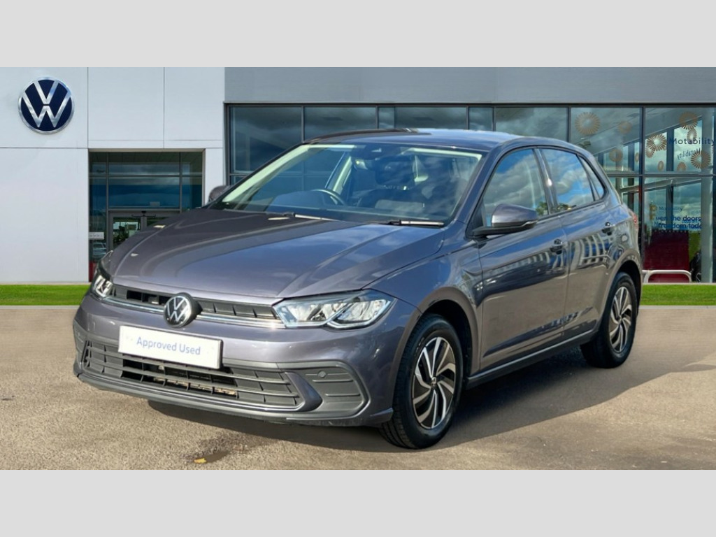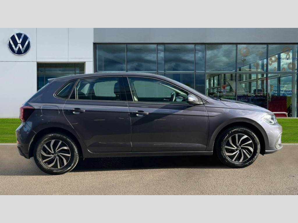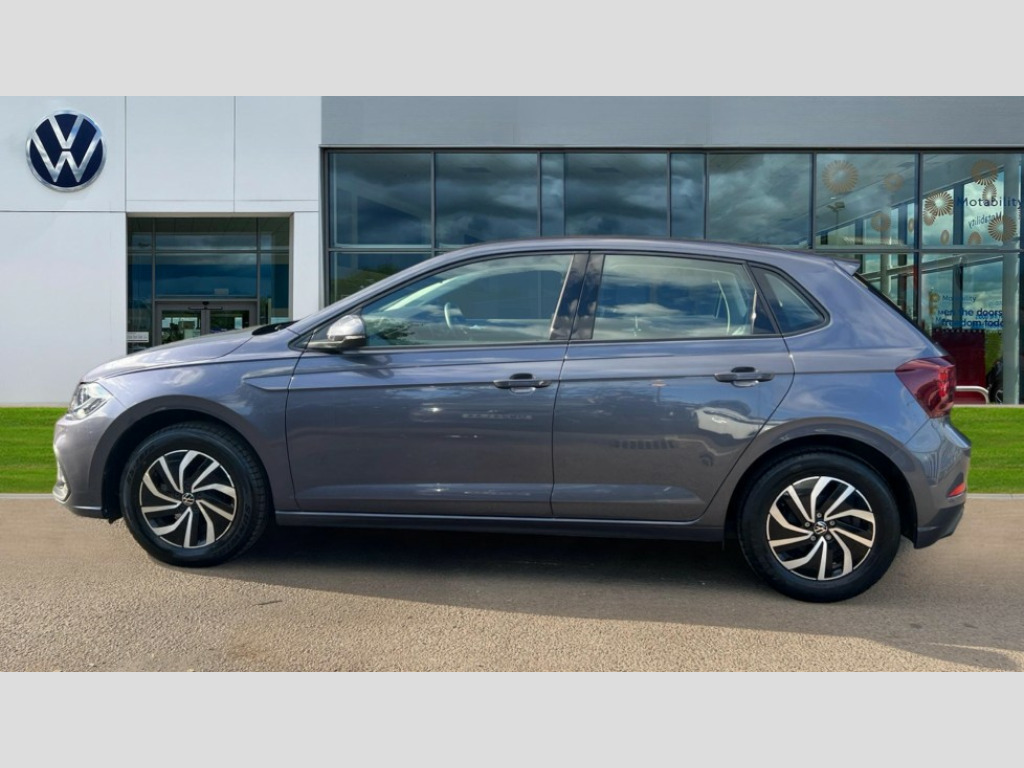 Volkswagen Polo 1.0 TSI Life 5dr Adaptive cruise control without follow-to-stop and speed limiter, Bluetooth mobile phone interface, Driver alert system, Emergency call service, Front assist system, Power assisted speed sensitive steering, Preparation for We connect and We connect plus, Speedo and rev counter, electronic odometer, trip, service interval display and fuel gauge, Standard rear axle, Travel Assist - Lane keeping system and traffic jam assist, Travel assist including emergency assist, Trip computer, Warning signal and warning light for front and rear seatbelts not fastened, Washer fluid level indicator, Wireless app connect, Front wheel drive, Rear shock absorpion, Start-stop system with battery regeneration (recuperation - energy recovery during braking), DAB Digital radio, Diversity antenna for FM reception, Front and rear 6 speakers, Automatic dimming interior rear view mirror, Body colour bumpers, Body colour door handles, Body colour door mirrors, Electric front windows, Heat insulating darkened glass in side and rear windows, Heat insulating glass windscreen, Power folding adjustable/heated exterior mirrors and front passenger exterior mirror lowering function, Rain sensor, Rear electric windows, Rear fog light, Rear side wing doors, Rear windscreen washer and wiper with interval delay, Third brake light, 12V power socket in centre console, 2 front and 2 rear reading lights, 2 USB-C ports in the front, 2 USB-C charging sockets on the center console in the rear, 3 rear head restraints, 60/40 split folding rear seat and rear seat bench not split, Chrome plated radiator grille inserts, air vent surrounds and light switch surrounds, Door and side trim panel, Driver and front passenger seat height adjustment, Driver/passenger sunvisors with illuminated vanity mirrors, Front centre armrest, Front seat backrest storage pockets, Front standard seats, Handbrake lever handle in leather, Hartley/Thomas cloth upholstery, Headliner in recycled material, Isofix child seat preparation easy-fit (for two outer rear seats, and front passenger seat) compatible with I-size, Leather trimmed gear knob, Luggage compartment cover, Luggage compartment floor, Luggage compartment lighting, Multifunction steering wheel, Single front passenger seat, Standard pedal cluster, Light and vision pack - Polo, 3 point height adj front seatbelts + pretensioners, 3x3 point rear seatbelts, ABS, Driver and front passenger airbag with front passenger airbag deactivation, Drivers and front passengers safety optimised head restraints, ESC (Electronic stability control) + EDL (Electronic Differntial lock) and ASR (Traction control), Extended and predictive pedestrian/ cyclist protection, Front curtain and side airbags with center airbag, Front disc brakes, Hill hold control, Manual child lock in rear doors, Rear drum brakes, Single tone horn, Tyre pressure loss indicator, Alarm with interior protection, Anti-theft alarm system with interior monitoring, backup horn, and towing protection, Anti-theft wheel bolts, Electronic engine immobiliser, Lava stone black gloss/matt decorative inserts in dash and front door panels, Low rolling resistance tyres