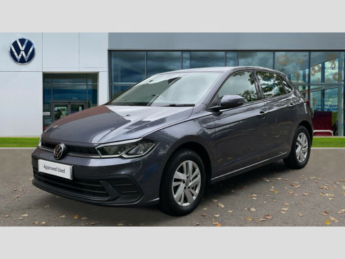 Volkswagen Polo 1.0 TSI Life 5dr Adaptive cruise control without follow-to-stop and speed limiter, Bluetooth mobile phone interface, Driver alert system, Emergency call service, Front assist system, Power assisted speed sensitive steering, Preparation for We connect and We connect plus, Speedo and rev counter, electronic odometer, trip, service interval display and fuel gauge, Standard rear axle, Travel Assist - Lane keeping system and traffic jam assist, Travel assist including emergency assist, Trip computer, Warning signal and warning light for front and rear seatbelts not fastened, Washer fluid level indicator, Wireless app connect, Front wheel drive, Rear shock absorpion, Start-stop system with battery regeneration (recuperation - energy recovery during braking), DAB Digital radio, Diversity antenna for FM reception, Front and rear 6 speakers, Automatic dimming interior rear view mirror, Body colour bumpers, Body colour door handles, Body colour door mirrors, Electric front windows, Heat insulating darkened glass in side and rear windows, Heat insulating glass windscreen, Power folding adjustable/heated exterior mirrors and front passenger exterior mirror lowering function, Rain sensor, Rear electric windows, Rear fog light, Rear side wing doors, Rear windscreen washer and wiper with interval delay, Third brake light, 12V power socket in centre console, 2 front and 2 rear reading lights, 2 USB-C ports in the front, 2 USB-C charging sockets on the center console in the rear, 3 rear head restraints, 60/40 split folding rear seat and rear seat bench not split, Ceramique headliner, Chrome plated radiator grille inserts, air vent surrounds and light switch surrounds, Door and side trim panel, Driver and front passenger seat height adjustment, Driver/passenger sunvisors with illuminated vanity mirrors, Front centre armrest, Front seat backrest storage pockets, Front standard seats, Handbrake lever handle in leather, Hartley/Thomas cloth upholstery, Isofix child seat preparation easy-fit (for two outer rear seats, and front passenger seat) compatible with I-size, Leather trimmed gear knob, Luggage compartment cover, Luggage compartment floor, Luggage compartment lighting, Multifunction steering wheel, Single front passenger seat, Standard pedal cluster, Light and vision pack - Polo, 3 point height adj front seatbelts + pretensioners, 3x3 point rear seatbelts, ABS, Driver and front passenger airbag with front passenger airbag deactivation, Drivers and front passengers safety optimised head restraints, ESC (Electronic stability control) + EDL (Electronic Differntial lock) and ASR (Traction control), Extended and predictive pedestrian/ cyclist protection, Front curtain and side airbags with center airbag, Front disc brakes, Hill hold control, Manual child lock in rear doors, Rear drum brakes, Single tone horn, Tyre pressure loss indicator, Alarm with interior protection, Anti-theft alarm system with interior monitoring, backup horn, and towing protection, Anti-theft wheel bolts, Electronic engine immobiliser, Lava stone black gloss/matt decorative inserts in dash and front door panels, Low rolling resistance tyres