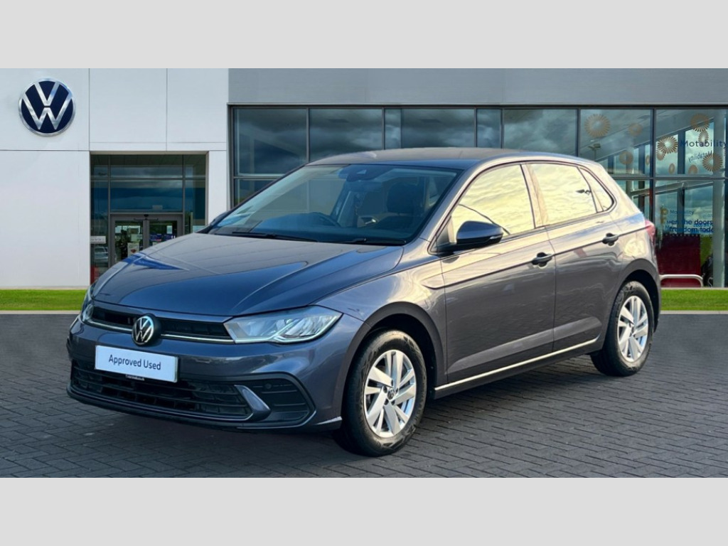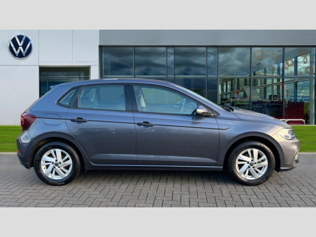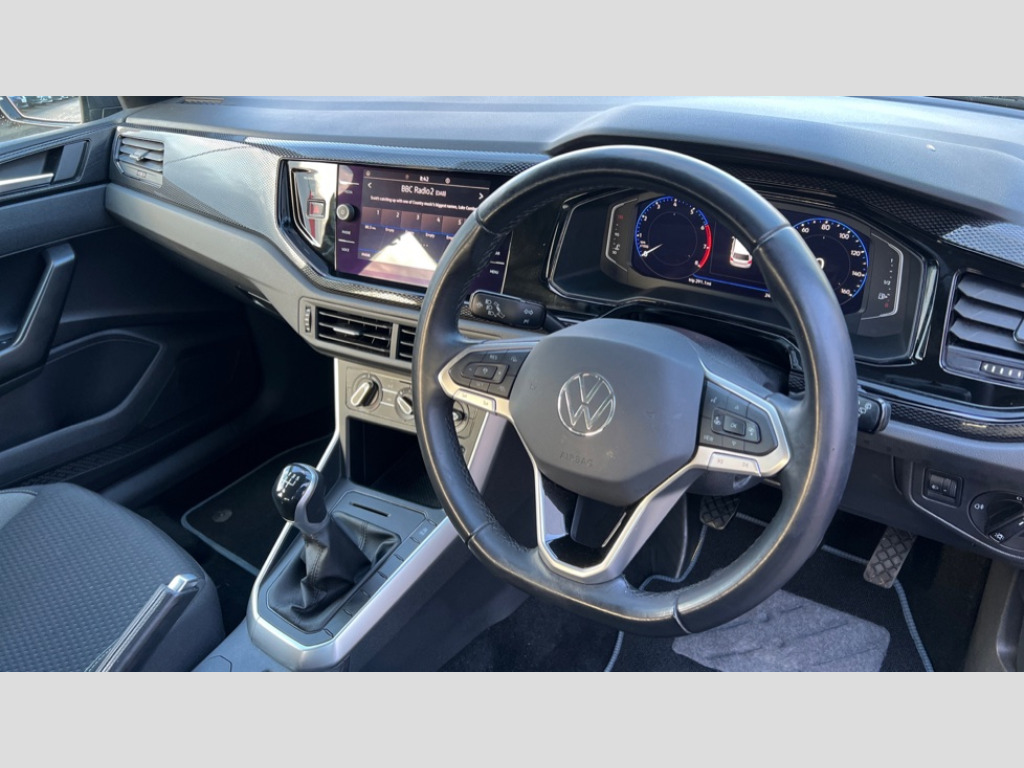 Volkswagen Polo 1.0 TSI Life 5dr Adaptive cruise control without follow-to-stop and speed limiter, Bluetooth mobile phone interface, Driver alert system, Emergency call service, Front assist system, Power assisted speed sensitive steering, Preparation for We connect and We connect plus, Speedo and rev counter, electronic odometer, trip, service interval display and fuel gauge, Standard rear axle, Travel Assist - Lane keeping system and traffic jam assist, Travel assist including emergency assist, Trip computer, Warning signal and warning light for front and rear seatbelts not fastened, Washer fluid level indicator, Wireless app connect, Front wheel drive, Rear shock absorpion, Start-stop system with battery regeneration (recuperation - energy recovery during braking), DAB Digital radio, Diversity antenna for FM reception, Front and rear 6 speakers, Automatic dimming interior rear view mirror, Body colour bumpers, Body colour door handles, Body colour door mirrors, Electric front windows, Heat insulating darkened glass in side and rear windows, Heat insulating glass windscreen, Power folding adjustable/heated exterior mirrors and front passenger exterior mirror lowering function, Rain sensor, Rear electric windows, Rear fog light, Rear side wing doors, Rear windscreen washer and wiper with interval delay, Third brake light, 12V power socket in centre console, 2 front and 2 rear reading lights, 2 USB-C ports in the front, 2 USB-C charging sockets on the center console in the rear, 3 rear head restraints, 60/40 split folding rear seat and rear seat bench not split, Ceramique headliner, Chrome plated radiator grille inserts, air vent surrounds and light switch surrounds, Door and side trim panel, Driver and front passenger seat height adjustment, Driver/passenger sunvisors with illuminated vanity mirrors, Front centre armrest, Front seat backrest storage pockets, Front standard seats, Handbrake lever handle in leather, Hartley/Thomas cloth upholstery, Isofix child seat preparation easy-fit (for two outer rear seats, and front passenger seat) compatible with I-size, Leather trimmed gear knob, Luggage compartment cover, Luggage compartment floor, Luggage compartment lighting, Multifunction steering wheel, Single front passenger seat, Standard pedal cluster, Light and vision pack - Polo, 3 point height adj front seatbelts + pretensioners, 3x3 point rear seatbelts, ABS, Driver and front passenger airbag with front passenger airbag deactivation, Drivers and front passengers safety optimised head restraints, ESC (Electronic stability control) + EDL (Electronic Differntial lock) and ASR (Traction control), Extended and predictive pedestrian/ cyclist protection, Front curtain and side airbags with center airbag, Front disc brakes, Hill hold control, Manual child lock in rear doors, Rear drum brakes, Single tone horn, Tyre pressure loss indicator, Alarm with interior protection, Anti-theft alarm system with interior monitoring, backup horn, and towing protection, Anti-theft wheel bolts, Electronic engine immobiliser, Lava stone black gloss/matt decorative inserts in dash and front door panels, Low rolling resistance tyres
