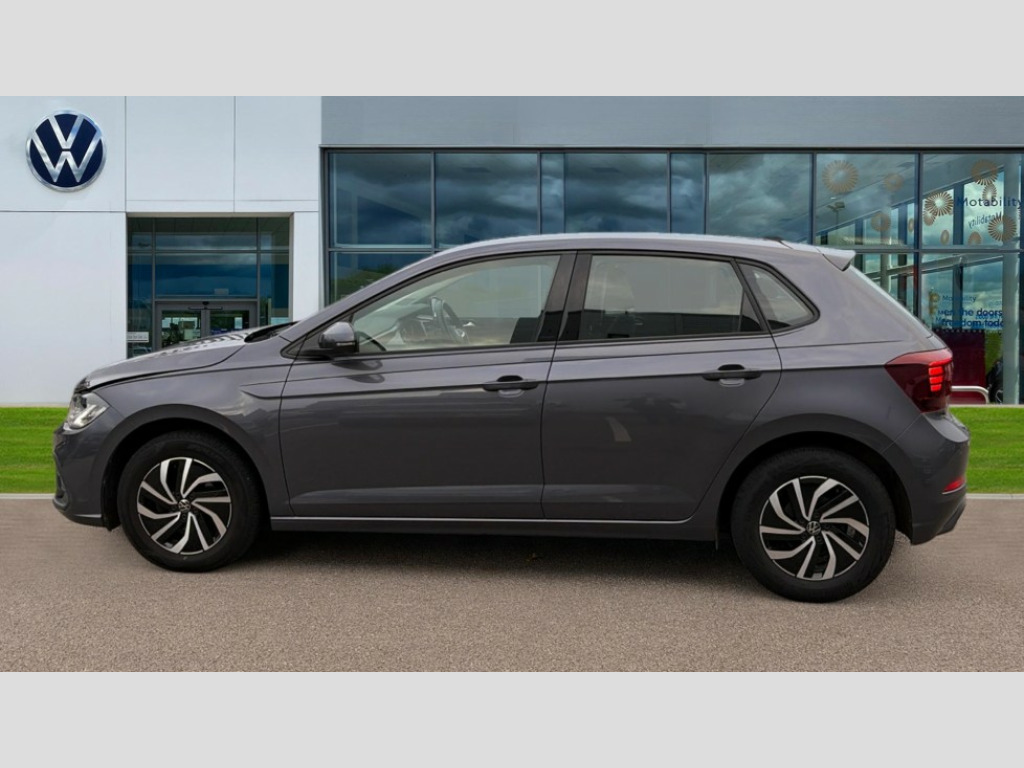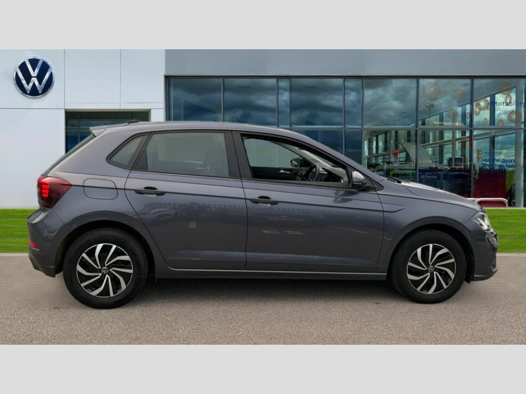 Volkswagen Polo 1.0 TSI Life 5dr Adaptive cruise control without follow-to-stop and speed limiter, Bluetooth mobile phone interface, Driver alert system, Emergency call service, Front assist system, Power assisted speed sensitive steering, Preparation for We connect and We connect plus, Speedo and rev counter, electronic odometer, trip, service interval display and fuel gauge, Standard rear axle, Travel Assist - Lane keeping system and traffic jam assist, Travel assist including emergency assist, Trip computer, Warning signal and warning light for front and rear seatbelts not fastened, Washer fluid level indicator, Wireless app connect, Front wheel drive, Rear shock absorpion, Start-stop system with battery regeneration (recuperation - energy recovery during braking), DAB Digital radio, Diversity antenna for FM reception, Front and rear 6 speakers, Automatic dimming interior rear view mirror, Body colour bumpers, Body colour door handles, Body colour door mirrors, Electric front windows, Heat insulating darkened glass in side and rear windows, Heat insulating glass windscreen, Power folding adjustable/heated exterior mirrors and front passenger exterior mirror lowering function, Rain sensor, Rear electric windows, Rear fog light, Rear side wing doors, Rear windscreen washer and wiper with interval delay, Third brake light, 12V power socket in centre console, 2 front and 2 rear reading lights, 2 USB-C ports in the front, 2 USB-C charging sockets on the center console in the rear, 3 rear head restraints, 60/40 split folding rear seat and rear seat bench not split, Ceramique headliner, Chrome plated radiator grille inserts, air vent surrounds and light switch surrounds, Door and side trim panel, Driver and front passenger seat height adjustment, Driver/passenger sunvisors with illuminated vanity mirrors, Front centre armrest, Front seat backrest storage pockets, Front standard seats, Handbrake lever handle in leather, Hartley/Thomas cloth upholstery, Isofix child seat preparation easy-fit (for two outer rear seats, and front passenger seat) compatible with I-size, Leather trimmed gear knob, Luggage compartment cover, Luggage compartment floor, Luggage compartment lighting, Multifunction steering wheel, Single front passenger seat, Standard pedal cluster, Light and vision pack - Polo, 3 point height adj front seatbelts + pretensioners, 3x3 point rear seatbelts, ABS, Driver and front passenger airbag with front passenger airbag deactivation, Drivers and front passengers safety optimised head restraints, ESC (Electronic stability control) + EDL (Electronic Differntial lock) and ASR (Traction control), Extended and predictive pedestrian/ cyclist protection, Front curtain and side airbags with center airbag, Front disc brakes, Hill hold control, Manual child lock in rear doors, Rear drum brakes, Single tone horn, Tyre pressure loss indicator, Alarm with interior protection, Anti-theft alarm system with interior monitoring, backup horn, and towing protection, Anti-theft wheel bolts, Electronic engine immobiliser, Lava stone black gloss/matt decorative inserts in dash and front door panels, Low rolling resistance tyres