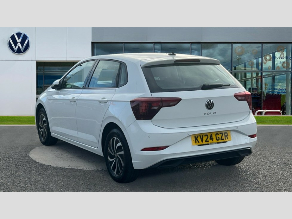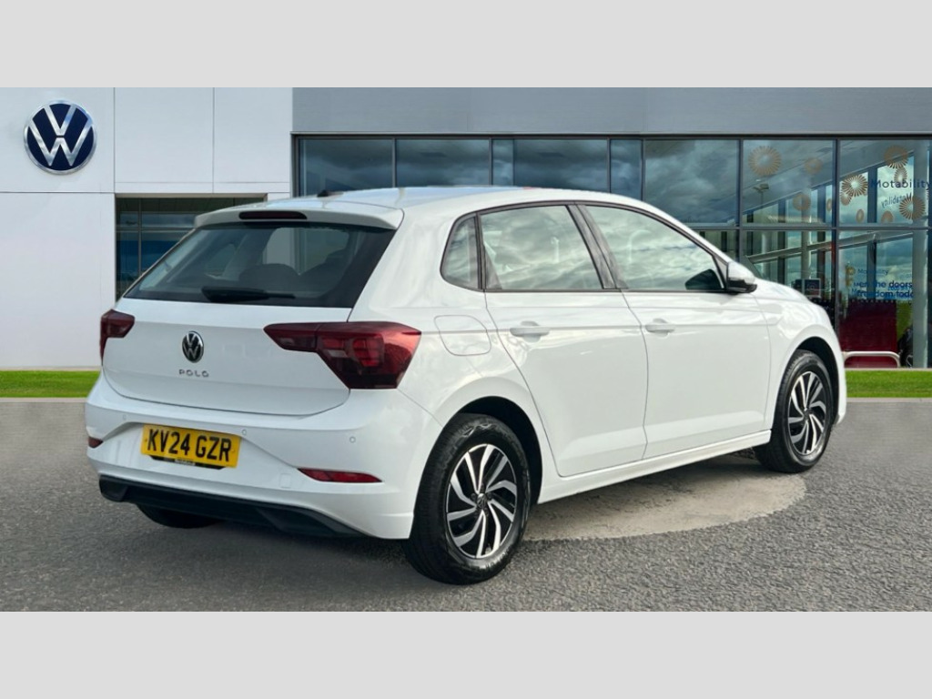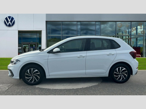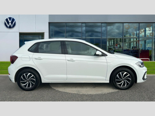 Volkswagen Polo 1.0 TSI Life 5dr Adaptive cruise control without follow-to-stop and speed limiter, Advanced driver attention and drowsiness monitor, Bluetooth mobile phone interface, Dynamic road sign display, Emergency call service, Power assisted speed sensitive steering, Preparation for navigation system with media and internet package, Preparation for We connect and We connect plus, Speedo and rev counter, electronic odometer, trip, service interval display and exterior temperature gauge, Standard rear axle, Travel Assist - Lane keeping system and traffic jam assist, Travel assist including emergency assist, Trip computer, Warning signal and warning light for front and rear seatbelts not fastened, Washer fluid level indicator, Wireless app connect, Front wheel drive, Rear shock absorpion, Start-stop system with battery regeneration (recuperation - energy recovery during braking), DAB Digital radio, Diversity antenna for FM reception, Front and rear 6 speakers, Automatic dimming interior rear view mirror, Automatic headlight control with LED separate daytime running lights with coming/leaving home function, Body colour bumpers with chrome inserts, Body colour door handles, Body colour door mirrors, Electric front windows, Engine badge deletion, Headlight range adjustment, Heat insulating and laminated safety glass windshield, Heat insulating darkened glass in side and rear windows, Heat insulating glass windscreen, LED Headlights, LED rear combination lamps, Power folding adjustable/heated exterior mirrors and front passenger exterior mirror lowering function, Rain sensor, Rear electric windows, Rear fog light, Rear side wing doors, Rear windscreen washer and wiper with interval delay, Third brake light, 12V power socket in centre console, 2 front and 2 rear reading lights with switch off delay and dimmer, 2 USB-C ports in the front, 2 USB-C charging sockets on the center console in the rear, 3 rear head restraints, 60/40 split folding rear seat and rear seat bench not split, Ceramique roof lining, Chrome plated radiator grille inserts, air vent surrounds and light switch surrounds, Door and side trim panel, Driver and front passenger seat height adjustment, Driver/passenger sunvisors with illuminated vanity mirrors, Front centre armrest, Front seat backrest storage pockets, Front standard seats, Handbrake lever handle in leather, Hartley/Thomas cloth upholstery, Headliner in recycled material, Isofix child seat preparation easy-fit (for two outer rear seats, and front passenger seat) compatible with I-size, Leather trimmed gear knob, Luggage compartment cover, Luggage compartment lighting, Removable luggage compartment floor, Single front passenger seat, Standard climatic zones, Standard pedal cluster, Three spoke leather wrapped multifunction steering wheel, Light and vision pack - Polo, 3 point height adj front seatbelts + pretensioners, 3x3 point rear seatbelts, ABS, Driver and front passenger airbag with front passenger airbag deactivation, Drivers and front passengers safety optimised head restraints, ESC (Electronic stability control) + EDL (Electronic Differntial lock) and ASR (Traction control), Extended and predictive pedestrian/ cyclist protection, Front assist with autonomous emergency braking (for Adaptive Cruise Control ACC up to 130 mph), Front curtain and side airbags with center airbag, Front disc brakes, Hill hold control, Manual child lock in rear doors, Rear drum brakes, Single tone horn, Tyre pressure loss indicator, Alarm with interior protection, Anti-theft alarm system with interior monitoring, backup horn, and towing protection, Anti-theft wheel bolts, Electronic engine immobiliser, Lava stone black gloss/matt decorative inserts in dash and front door panels, Low rolling resistance tyres