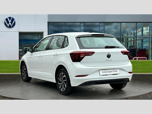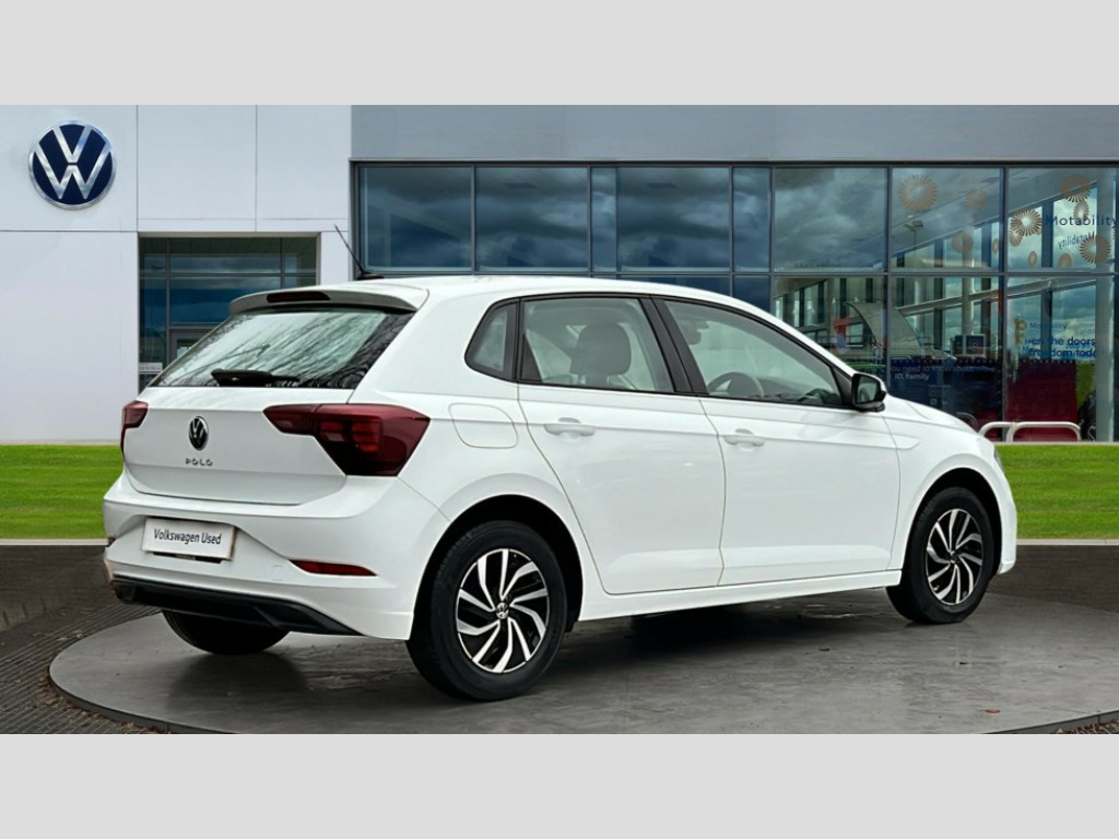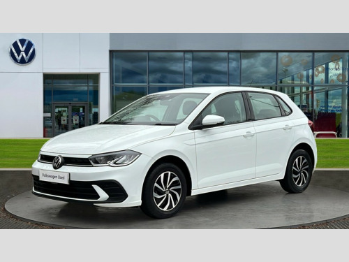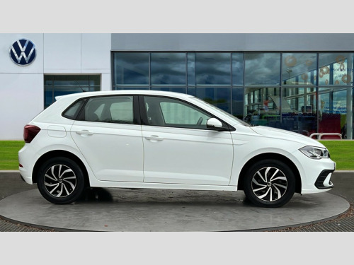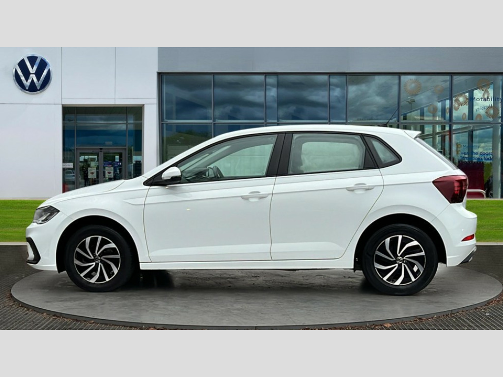 Volkswagen Polo 1.0 TSI Life 5dr Adaptive cruise control without follow-to-stop and speed limiter, Bluetooth mobile phone interface, Driver alert system, Emergency call service, Front assist system, Power assisted speed sensitive steering, Preparation for We connect and We connect plus, Speedo and rev counter, electronic odometer, trip, service interval display and fuel gauge, Standard rear axle, Travel Assist - Lane keeping system and traffic jam assist, Travel assist including emergency assist, Trip computer, Warning signal and warning light for front and rear seatbelts not fastened, Washer fluid level indicator, Wireless app connect, Front wheel drive, Rear shock absorpion, Start-stop system with battery regeneration (recuperation - energy recovery during braking), DAB Digital radio, Diversity antenna for FM reception, Automatic dimming interior rear view mirror, Body colour bumpers, Body colour door handles, Body colour door mirrors, Electric front windows, Heat insulating darkened glass in side and rear windows, Heat insulating glass windscreen, Power folding adjustable/heated exterior mirrors and front passenger exterior mirror lowering function, Rain sensor, Rear electric windows, Rear fog light, Rear side wing doors, Rear windscreen washer and wiper with interval delay, Third brake light, 12V power socket in centre console, 2 front and 2 rear reading lights, 2 USB-C ports in the front, 2 USB-C charging sockets on the center console in the rear, 3 rear head restraints, 60/40 split folding rear seat and rear seat bench not split, Ceramique headliner, Chrome plated radiator grille inserts, air vent surrounds and light switch surrounds, Door and side trim panel, Driver and front passenger seat height adjustment, Driver/passenger sunvisors with illuminated vanity mirrors, Front centre armrest, Front seat backrest storage pockets, Front standard seats, Handbrake lever handle in leather, Hartley/Thomas cloth upholstery, Isofix child seat preparation easy-fit (for two outer rear seats, and front passenger seat) compatible with I-size, Leather trimmed gear knob, Luggage compartment cover, Luggage compartment floor, Luggage compartment lighting, Multifunction steering wheel, Single front passenger seat, Standard pedal cluster, Light and vision pack - Polo, 3 point height adj front seatbelts + pretensioners, 3x3 point rear seatbelts, ABS, Driver and front passenger airbag with front passenger airbag deactivation, Drivers and front passengers safety optimised head restraints, ESC (Electronic stability control) + EDL (Electronic Differntial lock) and ASR (Traction control), Extended and predictive pedestrian/ cyclist protection, Front curtain and side airbags with center airbag, Front disc brakes, Hill hold control, Manual child lock in rear doors, Rear drum brakes, Single tone horn, Tyre pressure loss indicator, Alarm with interior protection, Anti-theft alarm system with interior monitoring, backup horn, and towing protection, Anti-theft wheel bolts, Electronic engine immobiliser, Lava stone black gloss/matt decorative inserts in dash and front door panels, Low rolling resistance tyres