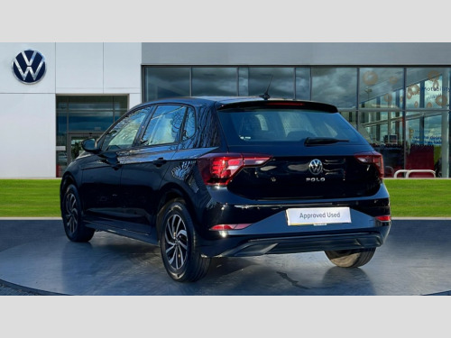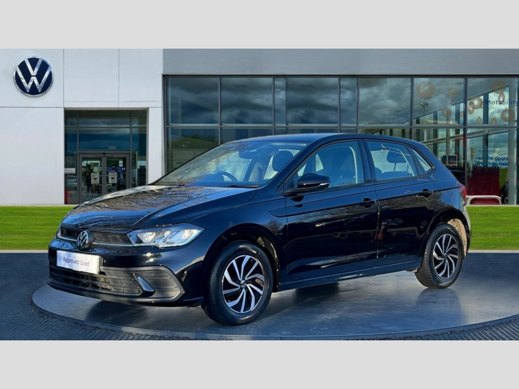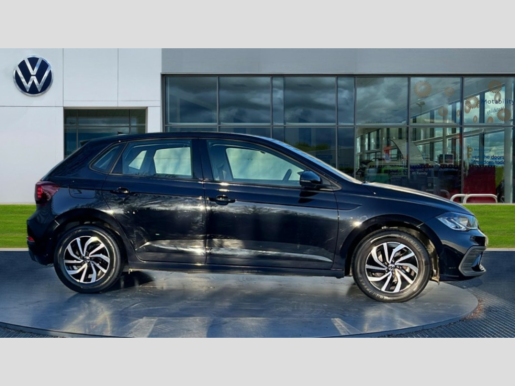 Volkswagen Polo 1.0 TSI Life 5dr Adaptive cruise control without follow-to-stop and speed limiter, Bluetooth mobile phone interface, Driver alert system, Emergency call service, Front assist system, Power assisted speed sensitive steering, Preparation for We connect and We connect plus, Speedo and rev counter, electronic odometer, trip, service interval display and fuel gauge, Standard rear axle, Travel Assist - Lane keeping system and traffic jam assist, Travel assist including emergency assist, Trip computer, Warning signal and warning light for front and rear seatbelts not fastened, Washer fluid level indicator, Wireless app connect, Front wheel drive, Rear shock absorpion, Start-stop system with battery regeneration (recuperation - energy recovery during braking), DAB Digital radio, Diversity antenna for FM reception, Front and rear 6 speakers, Automatic dimming interior rear view mirror, Body colour bumpers, Body colour door handles, Body colour door mirrors, Electric front windows, Heat insulating darkened glass in side and rear windows, Heat insulating glass windscreen, Power folding adjustable/heated exterior mirrors and front passenger exterior mirror lowering function, Rain sensor, Rear electric windows, Rear fog light, Rear side wing doors, Rear windscreen washer and wiper with interval delay, Third brake light, 12V power socket in centre console, 2 front and 2 rear reading lights, 2 USB-C ports in the front, 2 USB-C charging sockets on the center console in the rear, 3 rear head restraints, 60/40 split folding rear seat and rear seat bench not split, Chrome plated radiator grille inserts, air vent surrounds and light switch surrounds, Door and side trim panel, Driver and front passenger seat height adjustment, Driver/passenger sunvisors with illuminated vanity mirrors, Front centre armrest, Front seat backrest storage pockets, Front standard seats, Handbrake lever handle in leather, Hartley/Thomas cloth upholstery, Headliner in recycled material, Isofix child seat preparation easy-fit (for two outer rear seats, and front passenger seat) compatible with I-size, Leather trimmed gear knob, Luggage compartment cover, Luggage compartment floor, Luggage compartment lighting, Multifunction steering wheel, Single front passenger seat, Standard pedal cluster, Light and vision pack - Polo, 3 point height adj front seatbelts + pretensioners, 3x3 point rear seatbelts, ABS, Driver and front passenger airbag with front passenger airbag deactivation, Drivers and front passengers safety optimised head restraints, ESC (Electronic stability control) + EDL (Electronic Differntial lock) and ASR (Traction control), Extended and predictive pedestrian/ cyclist protection, Front curtain and side airbags with center airbag, Front disc brakes, Hill hold control, Manual child lock in rear doors, Rear drum brakes, Single tone horn, Tyre pressure loss indicator, Alarm with interior protection, Anti-theft alarm system with interior monitoring, backup horn, and towing protection, Anti-theft wheel bolts, Electronic engine immobiliser, Lava stone black gloss/matt decorative inserts in dash and front door panels, Low rolling resistance tyres