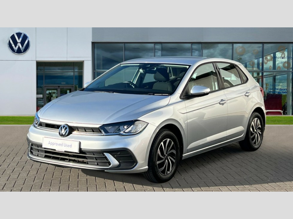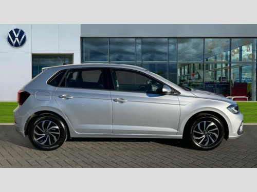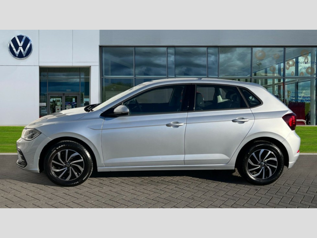 Volkswagen Polo 1.0 TSI Life 5dr Adaptive cruise control without follow-to-stop and speed limiter, Bluetooth mobile phone interface, Driver alert system, Emergency call service, Front assist system, Power assisted speed sensitive steering, Preparation for We connect and We connect plus, Speedo and rev counter, electronic odometer, trip, service interval display and fuel gauge, Standard rear axle, Travel Assist - Lane keeping system and traffic jam assist, Travel assist including emergency assist, Trip computer, Warning signal and warning light for front and rear seatbelts not fastened, Washer fluid level indicator, Wireless app connect, Front wheel drive, Rear shock absorpion, Start-stop system with battery regeneration (recuperation - energy recovery during braking), DAB Digital radio, Diversity antenna for FM reception, Front and rear 6 speakers, Automatic dimming interior rear view mirror, Body colour bumpers, Body colour door handles, Body colour door mirrors, Electric front windows, Heat insulating darkened glass in side and rear windows, Heat insulating glass windscreen, Power folding adjustable/heated exterior mirrors and front passenger exterior mirror lowering function, Rain sensor, Rear electric windows, Rear fog light, Rear side wing doors, Rear windscreen washer and wiper with interval delay, Third brake light, 12V power socket in centre console, 2 front and 2 rear reading lights, 2 USB-C ports in the front, 2 USB-C charging sockets on the center console in the rear, 3 rear head restraints, 60/40 split folding rear seat and rear seat bench not split, Chrome plated radiator grille inserts, air vent surrounds and light switch surrounds, Door and side trim panel, Driver and front passenger seat height adjustment, Driver/passenger sunvisors with illuminated vanity mirrors, Front centre armrest, Front seat backrest storage pockets, Front standard seats, Handbrake lever handle in leather, Hartley/Thomas cloth upholstery, Headliner in recycled material, Isofix child seat preparation easy-fit (for two outer rear seats, and front passenger seat) compatible with I-size, Leather trimmed gear knob, Luggage compartment cover, Luggage compartment floor, Luggage compartment lighting, Multifunction steering wheel, Single front passenger seat, Standard pedal cluster, Light and vision pack - Polo, 3 point height adj front seatbelts + pretensioners, 3x3 point rear seatbelts, ABS, Driver and front passenger airbag with front passenger airbag deactivation, Drivers and front passengers safety optimised head restraints, ESC (Electronic stability control) + EDL (Electronic Differntial lock) and ASR (Traction control), Extended and predictive pedestrian/ cyclist protection, Front curtain and side airbags with center airbag, Front disc brakes, Hill hold control, Manual child lock in rear doors, Rear drum brakes, Single tone horn, Tyre pressure loss indicator, Alarm with interior protection, Anti-theft alarm system with interior monitoring, backup horn, and towing protection, Anti-theft wheel bolts, Electronic engine immobiliser, Lava stone black gloss/matt decorative inserts in dash and front door panels, Low rolling resistance tyres