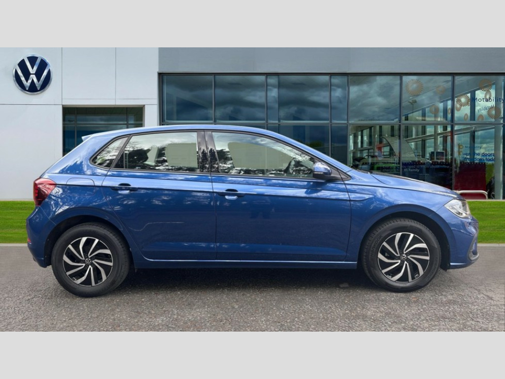 Volkswagen Polo 1.0 TSI Life 5dr Adaptive cruise control without follow-to-stop and speed limiter, Bluetooth mobile phone interface, Driver alert system, Emergency call service, Front assist system, Power assisted speed sensitive steering, Preparation for We connect and We connect plus, Speedo and rev counter, electronic odometer, trip, service interval display and fuel gauge, Standard rear axle, Travel Assist - Lane keeping system and traffic jam assist, Travel assist including emergency assist, Trip computer, Warning signal and warning light for front and rear seatbelts not fastened, Washer fluid level indicator, Wireless app connect, Front wheel drive, Rear shock absorpion, Start-stop system with battery regeneration (recuperation - energy recovery during braking), DAB Digital radio, Diversity antenna for FM reception, Front and rear 6 speakers, Automatic dimming interior rear view mirror, Body colour bumpers, Body colour door handles, Body colour door mirrors, Electric front windows, Heat insulating darkened glass in side and rear windows, Heat insulating glass windscreen, Power folding adjustable/heated exterior mirrors and front passenger exterior mirror lowering function, Rain sensor, Rear electric windows, Rear fog light, Rear side wing doors, Rear windscreen washer and wiper with interval delay, Third brake light, 12V power socket in centre console, 2 front and 2 rear reading lights, 2 USB-C ports in the front, 2 USB-C charging sockets on the center console in the rear, 3 rear head restraints, 60/40 split folding rear seat and rear seat bench not split, Ceramique headliner, Chrome plated radiator grille inserts, air vent surrounds and light switch surrounds, Door and side trim panel, Driver and front passenger seat height adjustment, Driver/passenger sunvisors with illuminated vanity mirrors, Front centre armrest, Front seat backrest storage pockets, Front standard seats, Handbrake lever handle in leather, Hartley/Thomas cloth upholstery, Isofix child seat preparation easy-fit (for two outer rear seats, and front passenger seat) compatible with I-size, Leather trimmed gear knob, Luggage compartment cover, Luggage compartment floor, Luggage compartment lighting, Multifunction steering wheel, Single front passenger seat, Standard pedal cluster, Light and vision pack - Polo, 3 point height adj front seatbelts + pretensioners, 3x3 point rear seatbelts, ABS, Driver and front passenger airbag with front passenger airbag deactivation, Drivers and front passengers safety optimised head restraints, ESC (Electronic stability control) + EDL (Electronic Differntial lock) and ASR (Traction control), Extended and predictive pedestrian/ cyclist protection, Front curtain and side airbags with center airbag, Front disc brakes, Hill hold control, Manual child lock in rear doors, Rear drum brakes, Single tone horn, Tyre pressure loss indicator, Alarm with interior protection, Anti-theft alarm system with interior monitoring, backup horn, and towing protection, Anti-theft wheel bolts, Electronic engine immobiliser, Lava stone black gloss/matt decorative inserts in dash and front door panels, Low rolling resistance tyres