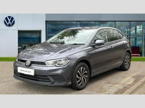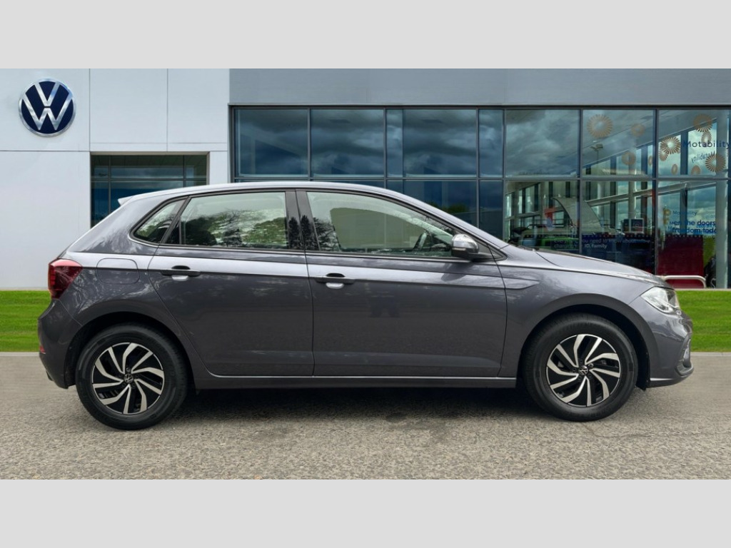 Volkswagen Polo 1.0 TSI Life 5dr Adaptive cruise control without follow-to-stop and speed limiter, Bluetooth mobile phone interface, Driver alert system, Emergency call service, Front assist system, Power assisted speed sensitive steering, Preparation for We connect and We connect plus, Speedo and rev counter, electronic odometer, trip, service interval display and fuel gauge, Standard rear axle, Travel Assist - Lane keeping system and traffic jam assist, Travel assist including emergency assist, Trip computer, Warning signal and warning light for front and rear seatbelts not fastened, Washer fluid level indicator, Wireless app connect, Front wheel drive, Rear shock absorpion, Start-stop system with battery regeneration (recuperation - energy recovery during braking), DAB Digital radio, Diversity antenna for FM reception, Front and rear 6 speakers, Automatic dimming interior rear view mirror, Body colour bumpers, Body colour door handles, Body colour door mirrors, Electric front windows, Heat insulating darkened glass in side and rear windows, Heat insulating glass windscreen, Power folding adjustable/heated exterior mirrors and front passenger exterior mirror lowering function, Rain sensor, Rear electric windows, Rear fog light, Rear side wing doors, Rear windscreen washer and wiper with interval delay, Third brake light, 12V power socket in centre console, 2 front and 2 rear reading lights, 2 USB-C ports in the front, 2 USB-C charging sockets on the center console in the rear, 3 rear head restraints, 60/40 split folding rear seat and rear seat bench not split, Chrome plated radiator grille inserts, air vent surrounds and light switch surrounds, Door and side trim panel, Driver and front passenger seat height adjustment, Driver/passenger sunvisors with illuminated vanity mirrors, Front centre armrest, Front seat backrest storage pockets, Front standard seats, Handbrake lever handle in leather, Hartley/Thomas cloth upholstery, Headliner in recycled material, Isofix child seat preparation easy-fit (for two outer rear seats, and front passenger seat) compatible with I-size, Leather trimmed gear knob, Luggage compartment cover, Luggage compartment floor, Luggage compartment lighting, Multifunction steering wheel, Single front passenger seat, Standard pedal cluster, Light and vision pack - Polo, 3 point height adj front seatbelts + pretensioners, 3x3 point rear seatbelts, ABS, Driver and front passenger airbag with front passenger airbag deactivation, Drivers and front passengers safety optimised head restraints, ESC (Electronic stability control) + EDL (Electronic Differntial lock) and ASR (Traction control), Extended and predictive pedestrian/ cyclist protection, Front curtain and side airbags with center airbag, Front disc brakes, Hill hold control, Manual child lock in rear doors, Rear drum brakes, Single tone horn, Tyre pressure loss indicator, Alarm with interior protection, Anti-theft alarm system with interior monitoring, backup horn, and towing protection, Anti-theft wheel bolts, Electronic engine immobiliser, Lava stone black gloss/matt decorative inserts in dash and front door panels, Low rolling resistance tyres