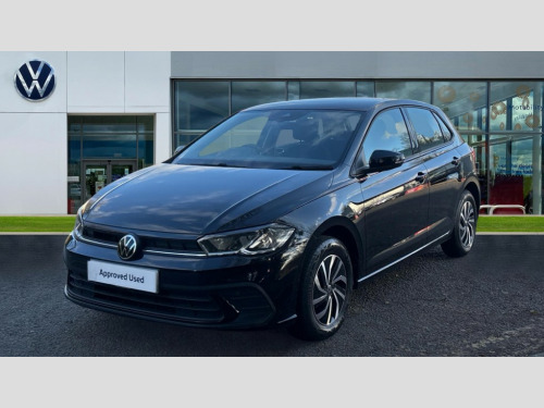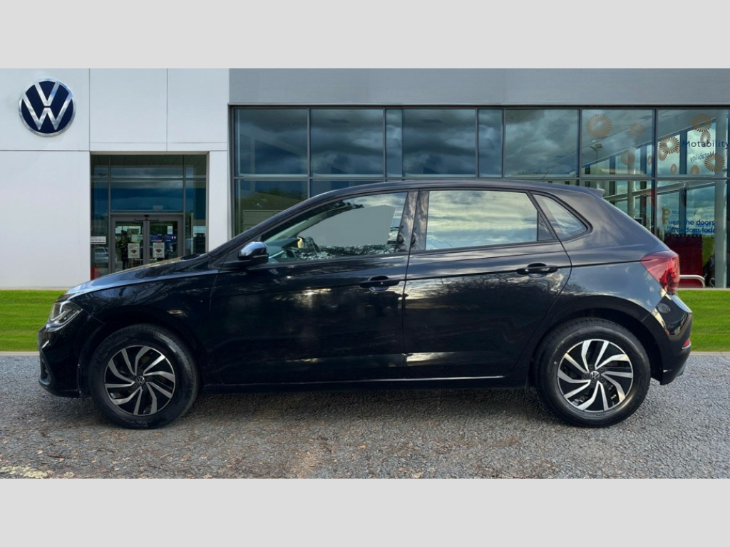 Volkswagen Polo 1.0 TSI Life 5dr Adaptive cruise control without follow-to-stop and speed limiter, Bluetooth mobile phone interface, Driver alert system, Emergency call service, Front assist system, Power assisted speed sensitive steering, Preparation for We connect and We connect plus, Speedo and rev counter, electronic odometer, trip, service interval display and fuel gauge, Standard rear axle, Travel Assist - Lane keeping system and traffic jam assist, Travel assist including emergency assist, Trip computer, Warning signal and warning light for front and rear seatbelts not fastened, Washer fluid level indicator, Wireless app connect, Front wheel drive, Rear shock absorpion, Start-stop system with battery regeneration (recuperation - energy recovery during braking), DAB Digital radio, Diversity antenna for FM reception, Automatic dimming interior rear view mirror, Body colour bumpers, Body colour door handles, Body colour door mirrors, Electric front windows, Heat insulating darkened glass in side and rear windows, Heat insulating glass windscreen, Power folding adjustable/heated exterior mirrors and front passenger exterior mirror lowering function, Rain sensor, Rear electric windows, Rear fog light, Rear windscreen washer and wiper with interval delay, Third brake light, 12V power socket in centre console, 2 front and 2 rear reading lights, 2 USB-C ports in the front, 2 USB-C charging sockets on the center console in the rear, 3 rear head restraints, 60/40 split folding rear seat and rear seat bench not split, Ceramique headliner, Chrome plated radiator grille inserts, air vent surrounds and light switch surrounds, Door and side trim panel, Driver and front passenger seat height adjustment, Driver/passenger sunvisors with illuminated vanity mirrors, Front centre armrest, Front seat backrest storage pockets, Front standard seats, Handbrake lever handle in leather, Hartley/Thomas cloth upholstery, Isofix child seat preparation easy-fit (for two outer rear seats, and front passenger seat) compatible with I-size, Leather trimmed gear knob, Luggage compartment cover, Luggage compartment floor, Luggage compartment lighting, Multifunction steering wheel, Standard pedal cluster, Light and vision pack - Polo, 3 point height adj front seatbelts + pretensioners, 3x3 point rear seatbelts, ABS, Driver and front passenger airbag with front passenger airbag deactivation, Drivers and front passengers safety optimised head restraints, ESC (Electronic stability control) + EDL (Electronic Differntial lock) and ASR (Traction control), Extended and predictive pedestrian/ cyclist protection, Front curtain and side airbags with center airbag, Front disc brakes, Hill hold control, Rear drum brakes, Single tone horn, Tyre pressure loss indicator, Alarm with interior protection, Anti-theft alarm system with interior monitoring, backup horn, and towing protection, Anti-theft wheel bolts, Electronic engine immobiliser, Lava stone black gloss/matt decorative inserts in dash and front door panels, Low rolling resistance tyres