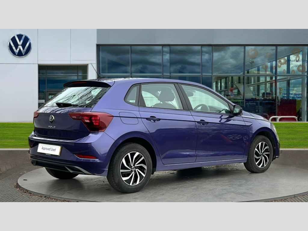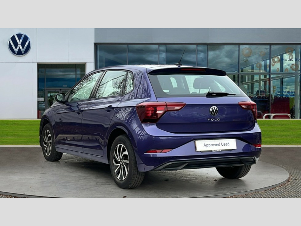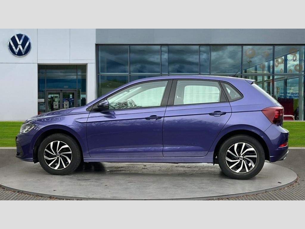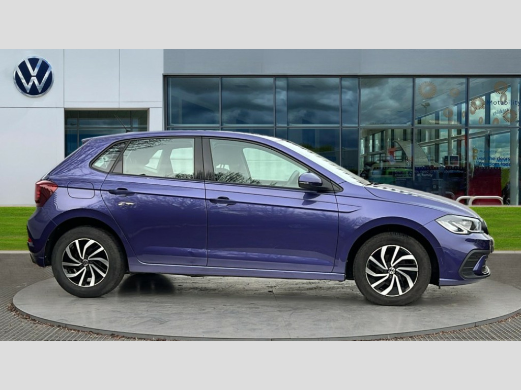 Volkswagen Polo 1.0 TSI Life 5dr Adaptive cruise control without follow-to-stop and speed limiter, Bluetooth mobile phone interface, Driver alert system, Emergency call service, Front assist system, Power assisted speed sensitive steering, Preparation for We connect and We connect plus, Speedo and rev counter, electronic odometer, trip, service interval display and fuel gauge, Standard rear axle, Travel Assist - Lane keeping system and traffic jam assist, Travel assist including emergency assist, Trip computer, Warning signal and warning light for front and rear seatbelts not fastened, Washer fluid level indicator, Wireless app connect, Front wheel drive, Rear shock absorpion, Start-stop system with battery regeneration (recuperation - energy recovery during braking), DAB Digital radio, Diversity antenna for FM reception, Front and rear 6 speakers, Automatic dimming interior rear view mirror, Body colour bumpers, Body colour door handles, Body colour door mirrors, Electric front windows, Heat insulating darkened glass in side and rear windows, Heat insulating glass windscreen, Power folding adjustable/heated exterior mirrors and front passenger exterior mirror lowering function, Rain sensor, Rear electric windows, Rear fog light, Rear side wing doors, Rear windscreen washer and wiper with interval delay, Third brake light, 12V power socket in centre console, 2 front and 2 rear reading lights, 2 USB-C ports in the front, 2 USB-C charging sockets on the center console in the rear, 3 rear head restraints, 60/40 split folding rear seat and rear seat bench not split, Ceramique headliner, Chrome plated radiator grille inserts, air vent surrounds and light switch surrounds, Door and side trim panel, Driver and front passenger seat height adjustment, Driver/passenger sunvisors with illuminated vanity mirrors, Front centre armrest, Front seat backrest storage pockets, Front standard seats, Handbrake lever handle in leather, Hartley/Thomas cloth upholstery, Isofix child seat preparation easy-fit (for two outer rear seats, and front passenger seat) compatible with I-size, Leather trimmed gear knob, Luggage compartment cover, Luggage compartment floor, Luggage compartment lighting, Multifunction steering wheel, Single front passenger seat, Standard pedal cluster, Light and vision pack - Polo, 3 point height adj front seatbelts + pretensioners, 3x3 point rear seatbelts, ABS, Driver and front passenger airbag with front passenger airbag deactivation, Drivers and front passengers safety optimised head restraints, ESC (Electronic stability control) + EDL (Electronic Differntial lock) and ASR (Traction control), Extended and predictive pedestrian/ cyclist protection, Front curtain and side airbags with center airbag, Front disc brakes, Hill hold control, Manual child lock in rear doors, Rear drum brakes, Single tone horn, Tyre pressure loss indicator, Alarm with interior protection, Anti-theft alarm system with interior monitoring, backup horn, and towing protection, Anti-theft wheel bolts, Electronic engine immobiliser, Lava stone black gloss/matt decorative inserts in dash and front door panels, Low rolling resistance tyres