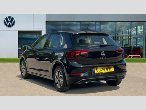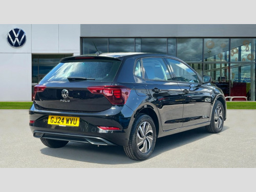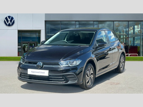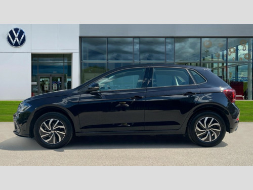 Volkswagen Polo 1.0 TSI Life 5dr DSG Adaptive cruise control with follow-to-stop and speed limiter, Advanced driver attention and drowsiness monitor, Bluetooth mobile phone interface, Dynamic road sign display, Emergency call service, Power assisted speed sensitive steering, Preparation for navigation system with media and internet package, Preparation for We connect and We connect plus, Speedo and rev counter, electronic odometer, trip, service interval display and exterior temperature gauge, Standard rear axle, Travel Assist - Lane keeping system and traffic jam assist, Travel assist including emergency assist, Trip computer, Warning signal and warning light for front and rear seatbelts not fastened, Washer fluid level indicator, Wireless app connect, Front wheel drive, Rear shock absorpion, Start-stop system with battery regeneration (recuperation - energy recovery during braking), DAB Digital radio, Diversity antenna for FM reception, Front and rear 6 speakers, Automatic dimming interior rear view mirror, Automatic headlight control with LED separate daytime running lights with coming/leaving home function, Body colour bumpers with chrome inserts, Body colour door handles, Body colour door mirrors, Electric front windows, Engine badge deletion, Headlight range adjustment, Heat insulating and laminated safety glass windshield, Heat insulating darkened glass in side and rear windows, Heat insulating glass windscreen, LED Headlights, LED rear combination lamps, Power folding adjustable/heated exterior mirrors and front passenger exterior mirror lowering function, Rain sensor, Rear electric windows, Rear fog light, Rear side wing doors, Rear windscreen washer and wiper with interval delay, Third brake light, 12V power socket in centre console, 2 front and 2 rear reading lights with switch off delay and dimmer, 2 USB-C ports in the front, 2 USB-C charging sockets on the center console in the rear, 3 rear head restraints, 60/40 split folding rear seat and rear seat bench not split, Ceramique roof lining, Chrome plated radiator grille inserts, air vent surrounds and light switch surrounds, Door and side trim panel, Driver and front passenger seat height adjustment, Driver/passenger sunvisors with illuminated vanity mirrors, Front centre armrest, Front seat backrest storage pockets, Front standard seats, Handbrake lever handle in leather, Hartley/Thomas cloth upholstery, Headliner in recycled material, Isofix child seat preparation easy-fit (for two outer rear seats, and front passenger seat) compatible with I-size, Leather trimmed gear knob, Luggage compartment cover, Luggage compartment lighting, Removable luggage compartment floor, Single front passenger seat, Standard climatic zones, Standard pedal cluster, Three spoke leather wrapped multifunction steering wheel with shifting paddles, Light and vision pack - Polo, 3 point height adj front seatbelts + pretensioners, 3x3 point rear seatbelts, ABS, Driver and front passenger airbag with front passenger airbag deactivation, Drivers and front passengers safety optimised head restraints, ESC (Electronic stability control) + EDL (Electronic Differntial lock) and ASR (Traction control), Extended and predictive pedestrian/ cyclist protection, Front assist with autonomous emergency braking (for Adaptive Cruise Control ACC up to 130 mph), Front curtain and side airbags with center airbag, Front disc brakes, Hill hold control, Manual child lock in rear doors, Rear drum brakes, Single tone horn, Tyre pressure loss indicator, Alarm with interior protection, Anti-theft alarm system with interior monitoring, backup horn, and towing protection, Anti-theft wheel bolts, Electronic engine immobiliser, Lava stone black gloss/matt decorative inserts in dash and front door panels, Low rolling resistance tyres