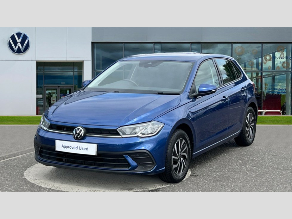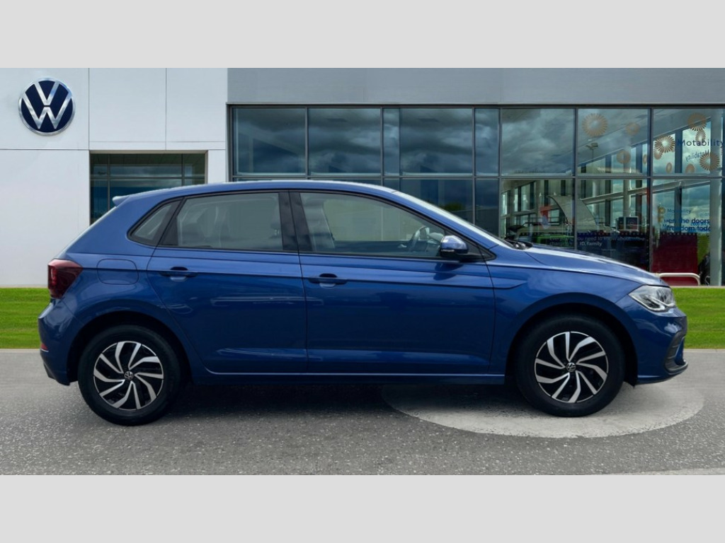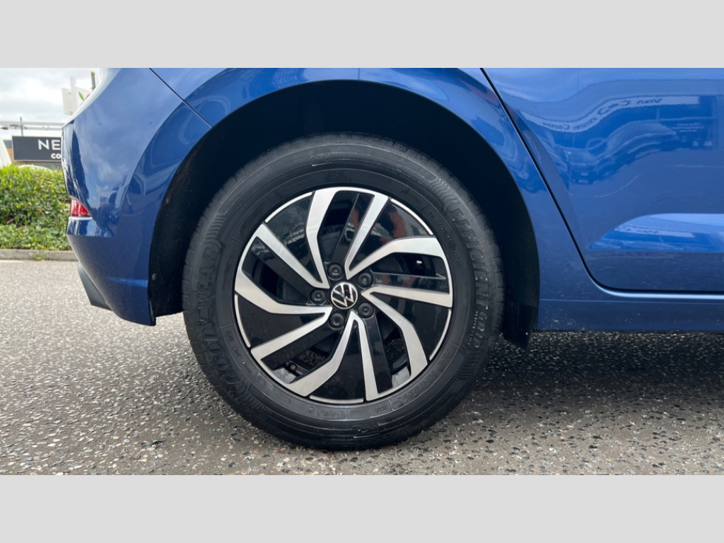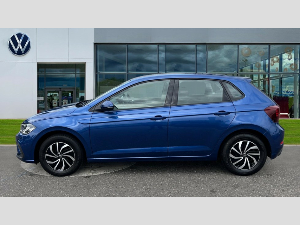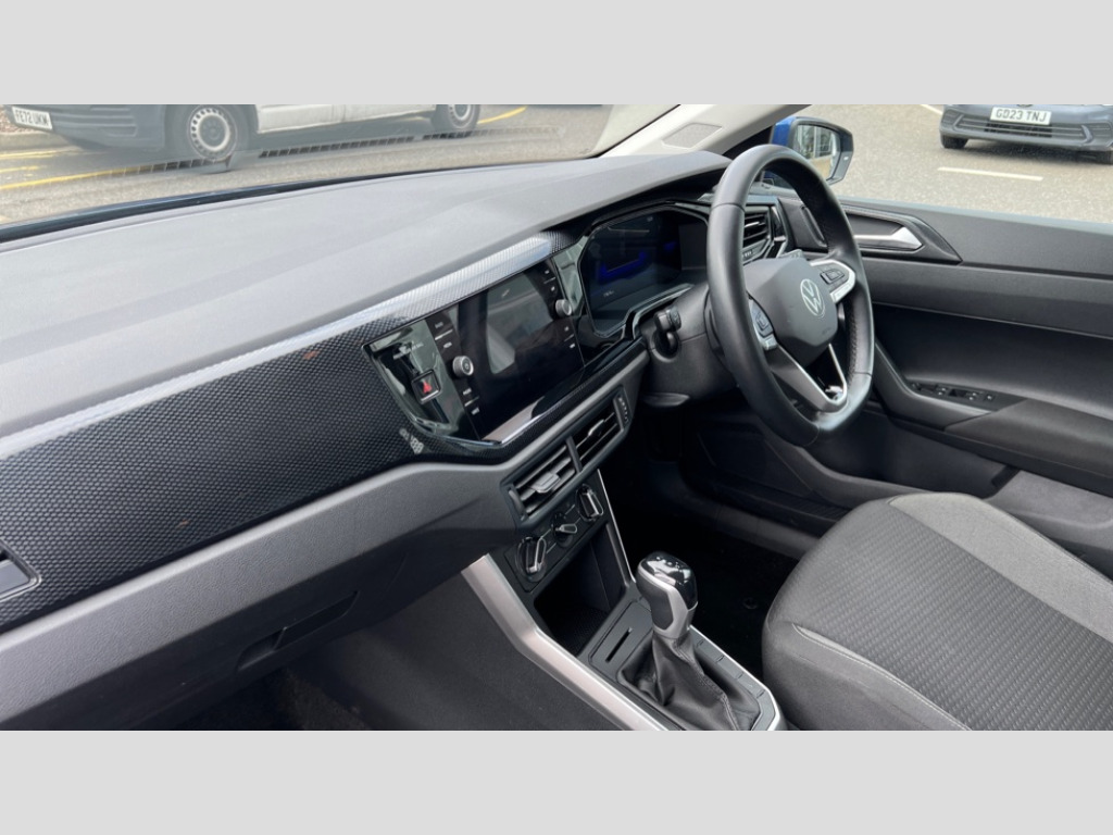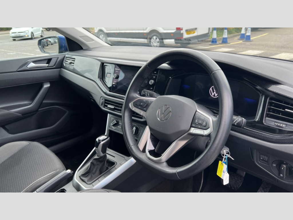 Volkswagen Polo 1.0 TSI Life 5dr DSG Adaptive cruise control with follow-to-stop and speed limiter, Bluetooth mobile phone interface, Driver alert system, Emergency call service, Front assist system, Power assisted speed sensitive steering, Preparation for We connect and We connect plus, Speedo and rev counter, electronic odometer, trip, service interval display and fuel gauge, Standard rear axle, Travel Assist - Lane keeping system and traffic jam assist, Travel assist including emergency assist, Trip computer, Warning signal and warning light for front and rear seatbelts not fastened, Washer fluid level indicator, Wireless app connect, Front wheel drive, Rear shock absorpion, Start-stop system with battery regeneration (recuperation - energy recovery during braking), DAB Digital radio, Diversity antenna for FM reception, Front and rear 6 speakers, Automatic dimming interior rear view mirror, Body colour bumpers, Body colour door handles, Body colour door mirrors, Electric front windows, Heat insulating darkened glass in side and rear windows, Heat insulating glass windscreen, Power folding adjustable/heated exterior mirrors and front passenger exterior mirror lowering function, Rain sensor, Rear electric windows, Rear fog light, Rear side wing doors, Rear windscreen washer and wiper with interval delay, Third brake light, 12V power socket in centre console, 2 front and 2 rear reading lights, 2 USB-C ports in the front, 2 USB-C charging sockets on the center console in the rear, 3 rear head restraints, 60/40 split folding rear seat and rear seat bench not split, Chrome plated radiator grille inserts, air vent surrounds and light switch surrounds, Door and side trim panel, Driver and front passenger seat height adjustment, Driver/passenger sunvisors with illuminated vanity mirrors, Front centre armrest, Front seat backrest storage pockets, Front standard seats, Handbrake lever handle in leather, Hartley/Thomas cloth upholstery, Headliner in recycled material, Isofix child seat preparation easy-fit (for two outer rear seats, and front passenger seat) compatible with I-size, Leather trimmed gear knob, Luggage compartment cover, Luggage compartment floor, Luggage compartment lighting, Single front passenger seat, Standard pedal cluster, Three spoke leather wrapped multifunction steering wheel with shifting paddles, Light and vision pack - Polo, 3 point height adj front seatbelts + pretensioners, 3x3 point rear seatbelts, ABS, Driver and front passenger airbag with front passenger airbag deactivation, Drivers and front passengers safety optimised head restraints, ESC (Electronic stability control) + EDL (Electronic Differntial lock) and ASR (Traction control), Extended and predictive pedestrian/ cyclist protection, Front curtain and side airbags with center airbag, Front disc brakes, Hill hold control, Manual child lock in rear doors, Rear drum brakes, Single tone horn, Tyre pressure loss indicator, Alarm with interior protection, Anti-theft alarm system with interior monitoring, backup horn, and towing protection, Anti-theft wheel bolts, Electronic engine immobiliser, Lava stone black gloss/matt decorative inserts in dash and front door panels, Low rolling resistance tyres