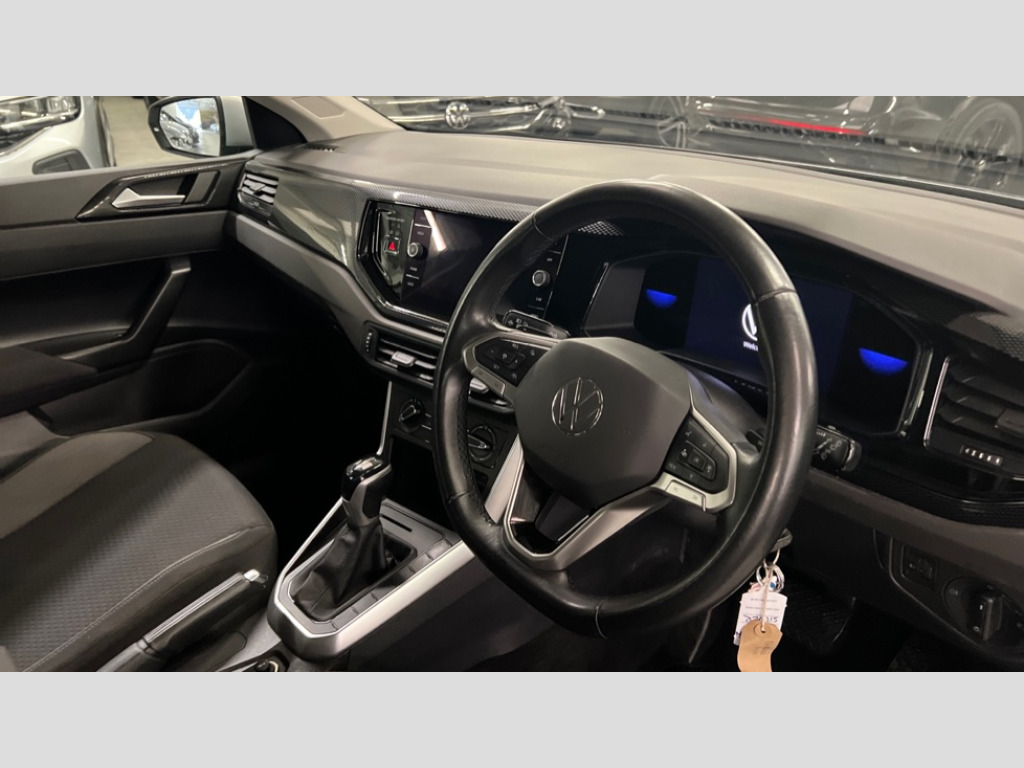 Volkswagen Polo 1.0 TSI Life 5dr DSG Adaptive cruise control with follow-to-stop and speed limiter, Bluetooth mobile phone interface, Driver alert system, Emergency call service, Front assist system, Power assisted speed sensitive steering, Preparation for We connect and We connect plus, Speedo and rev counter, electronic odometer, trip, service interval display and fuel gauge, Standard rear axle, Travel Assist - Lane keeping system and traffic jam assist, Travel assist including emergency assist, Trip computer, Warning signal and warning light for front and rear seatbelts not fastened, Washer fluid level indicator, Wireless app connect, Front wheel drive, Rear shock absorpion, Start-stop system with battery regeneration (recuperation - energy recovery during braking), DAB Digital radio, Diversity antenna for FM reception, Front and rear 6 speakers, Automatic dimming interior rear view mirror, Body colour bumpers, Body colour door handles, Body colour door mirrors, Electric front windows, Heat insulating darkened glass in side and rear windows, Heat insulating glass windscreen, Power folding adjustable/heated exterior mirrors and front passenger exterior mirror lowering function, Rain sensor, Rear electric windows, Rear fog light, Rear side wing doors, Rear windscreen washer and wiper with interval delay, Third brake light, 12V power socket in centre console, 2 front and 2 rear reading lights, 2 USB-C ports in the front, 2 USB-C charging sockets on the center console in the rear, 3 rear head restraints, 60/40 split folding rear seat and rear seat bench not split, Ceramique headliner, Chrome plated radiator grille inserts, air vent surrounds and light switch surrounds, Door and side trim panel, Driver and front passenger seat height adjustment, Driver/passenger sunvisors with illuminated vanity mirrors, Front centre armrest, Front seat backrest storage pockets, Front standard seats, Handbrake lever handle in leather, Hartley/Thomas cloth upholstery, Isofix child seat preparation easy-fit (for two outer rear seats, and front passenger seat) compatible with I-size, Leather trimmed gear knob, Luggage compartment cover, Luggage compartment floor, Luggage compartment lighting, Single front passenger seat, Standard pedal cluster, Three spoke leather wrapped multifunction steering wheel with shifting paddles, Light and vision pack - Polo, 3 point height adj front seatbelts + pretensioners, 3x3 point rear seatbelts, ABS, Driver and front passenger airbag with front passenger airbag deactivation, Drivers and front passengers safety optimised head restraints, ESC (Electronic stability control) + EDL (Electronic Differntial lock) and ASR (Traction control), Extended and predictive pedestrian/ cyclist protection, Front curtain and side airbags with center airbag, Front disc brakes, Hill hold control, Manual child lock in rear doors, Rear drum brakes, Single tone horn, Tyre pressure loss indicator, Alarm with interior protection, Anti-theft alarm system with interior monitoring, backup horn, and towing protection, Anti-theft wheel bolts, Electronic engine immobiliser, Lava stone black gloss/matt decorative inserts in dash and front door panels, Low rolling resistance tyres