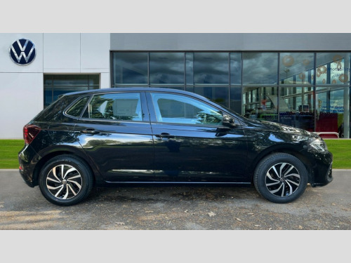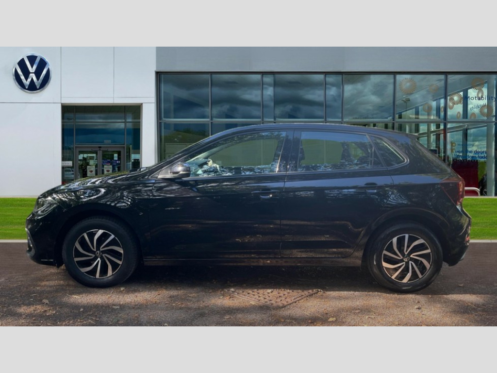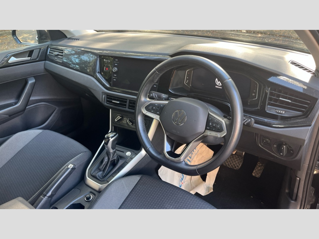 Volkswagen Polo 1.0 TSI Life 5dr DSG Adaptive cruise control with follow-to-stop and speed limiter, Bluetooth mobile phone interface, Driver alert system, Emergency call service, Front assist system, Power assisted speed sensitive steering, Preparation for We connect and We connect plus, Speedo and rev counter, electronic odometer, trip, service interval display and fuel gauge, Standard rear axle, Travel Assist - Lane keeping system and traffic jam assist, Travel assist including emergency assist, Trip computer, Warning signal and warning light for front and rear seatbelts not fastened, Washer fluid level indicator, Wireless app connect, Front wheel drive, Rear shock absorpion, Start-stop system with battery regeneration (recuperation - energy recovery during braking), DAB Digital radio, Diversity antenna for FM reception, Front and rear 6 speakers, Automatic dimming interior rear view mirror, Body colour bumpers, Body colour door handles, Body colour door mirrors, Electric front windows, Heat insulating darkened glass in side and rear windows, Heat insulating glass windscreen, Power folding adjustable/heated exterior mirrors and front passenger exterior mirror lowering function, Rain sensor, Rear electric windows, Rear fog light, Rear side wing doors, Rear windscreen washer and wiper with interval delay, Third brake light, 12V power socket in centre console, 2 front and 2 rear reading lights, 2 USB-C ports in the front, 2 USB-C charging sockets on the center console in the rear, 3 rear head restraints, 60/40 split folding rear seat and rear seat bench not split, Chrome plated radiator grille inserts, air vent surrounds and light switch surrounds, Door and side trim panel, Driver and front passenger seat height adjustment, Driver/passenger sunvisors with illuminated vanity mirrors, Front centre armrest, Front seat backrest storage pockets, Front standard seats, Handbrake lever handle in leather, Hartley/Thomas cloth upholstery, Headliner in recycled material, Isofix child seat preparation easy-fit (for two outer rear seats, and front passenger seat) compatible with I-size, Leather trimmed gear knob, Luggage compartment cover, Luggage compartment floor, Luggage compartment lighting, Single front passenger seat, Standard pedal cluster, Three spoke leather wrapped multifunction steering wheel with shifting paddles, Light and vision pack - Polo, 3 point height adj front seatbelts + pretensioners, 3x3 point rear seatbelts, ABS, Driver and front passenger airbag with front passenger airbag deactivation, Drivers and front passengers safety optimised head restraints, ESC (Electronic stability control) + EDL (Electronic Differntial lock) and ASR (Traction control), Extended and predictive pedestrian/ cyclist protection, Front curtain and side airbags with center airbag, Front disc brakes, Hill hold control, Manual child lock in rear doors, Rear drum brakes, Single tone horn, Tyre pressure loss indicator, Alarm with interior protection, Anti-theft alarm system with interior monitoring, backup horn, and towing protection, Anti-theft wheel bolts, Electronic engine immobiliser, Lava stone black gloss/matt decorative inserts in dash and front door panels, Low rolling resistance tyres