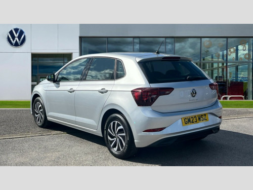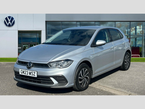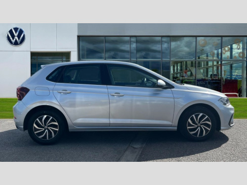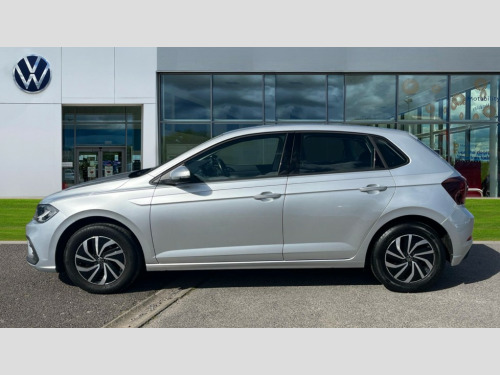 Volkswagen Polo 1.0 TSI Life 5dr DSG Adaptive cruise control with follow-to-stop and speed limiter, Bluetooth mobile phone interface, Driver alert system, Emergency call service, Front assist system, Power assisted speed sensitive steering, Preparation for We connect and We connect plus, Speedo and rev counter, electronic odometer, trip, service interval display and fuel gauge, Standard rear axle, Travel Assist - Lane keeping system and traffic jam assist, Travel assist including emergency assist, Trip computer, Warning signal and warning light for front and rear seatbelts not fastened, Washer fluid level indicator, Wireless app connect, Front wheel drive, Rear shock absorpion, Start-stop system with battery regeneration (recuperation - energy recovery during braking), DAB Digital radio, Diversity antenna for FM reception, Front and rear 6 speakers, Automatic dimming interior rear view mirror, Body colour bumpers, Body colour door handles, Body colour door mirrors, Electric front windows, Heat insulating darkened glass in side and rear windows, Heat insulating glass windscreen, Power folding adjustable/heated exterior mirrors and front passenger exterior mirror lowering function, Rain sensor, Rear electric windows, Rear fog light, Rear side wing doors, Rear windscreen washer and wiper with interval delay, Third brake light, 12V power socket in centre console, 2 front and 2 rear reading lights, 2 USB-C ports in the front, 2 USB-C charging sockets on the center console in the rear, 3 rear head restraints, 60/40 split folding rear seat and rear seat bench not split, Chrome plated radiator grille inserts, air vent surrounds and light switch surrounds, Door and side trim panel, Driver and front passenger seat height adjustment, Driver/passenger sunvisors with illuminated vanity mirrors, Front centre armrest, Front seat backrest storage pockets, Front standard seats, Handbrake lever handle in leather, Hartley/Thomas cloth upholstery, Headliner in recycled material, Isofix child seat preparation easy-fit (for two outer rear seats, and front passenger seat) compatible with I-size, Leather trimmed gear knob, Luggage compartment cover, Luggage compartment floor, Luggage compartment lighting, Single front passenger seat, Standard pedal cluster, Three spoke leather wrapped multifunction steering wheel with shifting paddles, Light and vision pack - Polo, 3 point height adj front seatbelts + pretensioners, 3x3 point rear seatbelts, ABS, Driver and front passenger airbag with front passenger airbag deactivation, Drivers and front passengers safety optimised head restraints, ESC (Electronic stability control) + EDL (Electronic Differntial lock) and ASR (Traction control), Extended and predictive pedestrian/ cyclist protection, Front curtain and side airbags with center airbag, Front disc brakes, Hill hold control, Manual child lock in rear doors, Rear drum brakes, Single tone horn, Tyre pressure loss indicator, Alarm with interior protection, Anti-theft alarm system with interior monitoring, backup horn, and towing protection, Anti-theft wheel bolts, Electronic engine immobiliser, Lava stone black gloss/matt decorative inserts in dash and front door panels, Low rolling resistance tyres