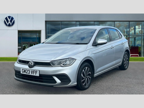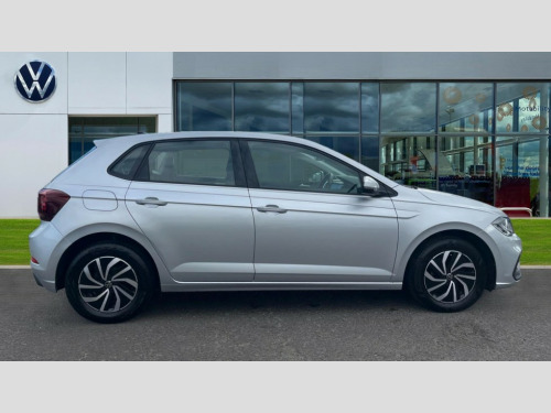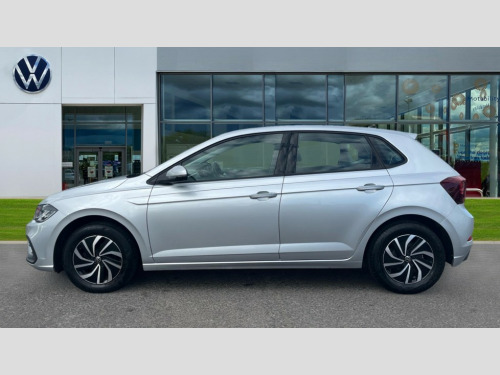 Volkswagen Polo 1.0 TSI Life 5dr DSG Adaptive cruise control with follow-to-stop and speed limiter, Bluetooth mobile phone interface, Driver alert system, Emergency call service, Front assist system, Power assisted speed sensitive steering, Preparation for We connect and We connect plus, Speedo and rev counter, electronic odometer, trip, service interval display and fuel gauge, Standard rear axle, Travel Assist - Lane keeping system and traffic jam assist, Travel assist including emergency assist, Trip computer, Warning signal and warning light for front and rear seatbelts not fastened, Washer fluid level indicator, Wireless app connect, Front wheel drive, Rear shock absorpion, Start-stop system with battery regeneration (recuperation - energy recovery during braking), DAB Digital radio, Diversity antenna for FM reception, Front and rear 6 speakers, Automatic dimming interior rear view mirror, Body colour bumpers, Body colour door handles, Body colour door mirrors, Electric front windows, Heat insulating darkened glass in side and rear windows, Heat insulating glass windscreen, Power folding adjustable/heated exterior mirrors and front passenger exterior mirror lowering function, Rain sensor, Rear electric windows, Rear fog light, Rear side wing doors, Rear windscreen washer and wiper with interval delay, Third brake light, 12V power socket in centre console, 2 front and 2 rear reading lights, 2 USB-C ports in the front, 2 USB-C charging sockets on the center console in the rear, 3 rear head restraints, 60/40 split folding rear seat and rear seat bench not split, Chrome plated radiator grille inserts, air vent surrounds and light switch surrounds, Door and side trim panel, Driver and front passenger seat height adjustment, Driver/passenger sunvisors with illuminated vanity mirrors, Front centre armrest, Front seat backrest storage pockets, Front standard seats, Handbrake lever handle in leather, Hartley/Thomas cloth upholstery, Headliner in recycled material, Isofix child seat preparation easy-fit (for two outer rear seats, and front passenger seat) compatible with I-size, Leather trimmed gear knob, Luggage compartment cover, Luggage compartment floor, Luggage compartment lighting, Single front passenger seat, Standard pedal cluster, Three spoke leather wrapped multifunction steering wheel with shifting paddles, Light and vision pack - Polo, 3 point height adj front seatbelts + pretensioners, 3x3 point rear seatbelts, ABS, Driver and front passenger airbag with front passenger airbag deactivation, Drivers and front passengers safety optimised head restraints, ESC (Electronic stability control) + EDL (Electronic Differntial lock) and ASR (Traction control), Extended and predictive pedestrian/ cyclist protection, Front curtain and side airbags with center airbag, Front disc brakes, Hill hold control, Manual child lock in rear doors, Rear drum brakes, Single tone horn, Tyre pressure loss indicator, Alarm with interior protection, Anti-theft alarm system with interior monitoring, backup horn, and towing protection, Anti-theft wheel bolts, Electronic engine immobiliser, Lava stone black gloss/matt decorative inserts in dash and front door panels, Low rolling resistance tyres