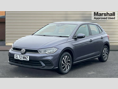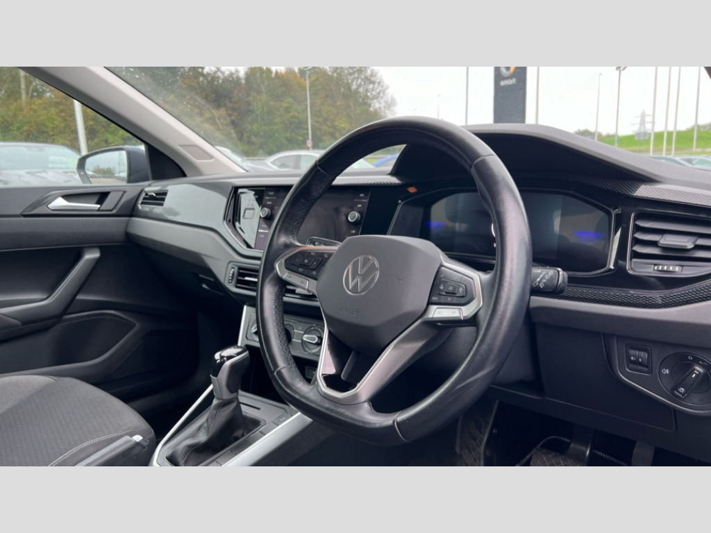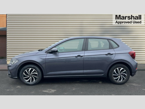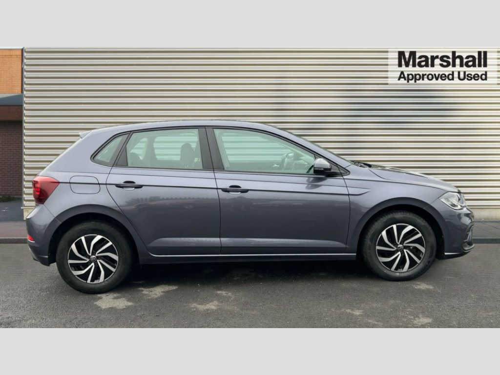 Volkswagen Polo 1.0 TSI Life 5dr DSG Adaptive cruise control with follow-to-stop and speed limiter, Bluetooth mobile phone interface, Driver alert system, Emergency call service, Front assist system, Power assisted speed sensitive steering, Preparation for We connect and We connect plus, Speedo and rev counter, electronic odometer, trip, service interval display and fuel gauge, Standard rear axle, Travel Assist - Lane keeping system and traffic jam assist, Travel assist including emergency assist, Trip computer, Warning signal and warning light for front and rear seatbelts not fastened, Washer fluid level indicator, Wireless app connect, Front wheel drive, Rear shock absorpion, Start-stop system with battery regeneration (recuperation - energy recovery during braking), DAB Digital radio, Diversity antenna for FM reception, Front and rear 6 speakers, Automatic dimming interior rear view mirror, Body colour bumpers, Body colour door handles, Body colour door mirrors, Electric front windows, Heat insulating darkened glass in side and rear windows, Heat insulating glass windscreen, Power folding adjustable/heated exterior mirrors and front passenger exterior mirror lowering function, Rain sensor, Rear electric windows, Rear fog light, Rear side wing doors, Rear windscreen washer and wiper with interval delay, Third brake light, 12V power socket in centre console, 2 front and 2 rear reading lights, 2 USB-C ports in the front, 2 USB-C charging sockets on the center console in the rear, 3 rear head restraints, 60/40 split folding rear seat and rear seat bench not split, Ceramique headliner, Chrome plated radiator grille inserts, air vent surrounds and light switch surrounds, Door and side trim panel, Driver and front passenger seat height adjustment, Driver/passenger sunvisors with illuminated vanity mirrors, Front centre armrest, Front seat backrest storage pockets, Front standard seats, Handbrake lever handle in leather, Hartley/Thomas cloth upholstery, Isofix child seat preparation easy-fit (for two outer rear seats, and front passenger seat) compatible with I-size, Leather trimmed gear knob, Luggage compartment cover, Luggage compartment floor, Luggage compartment lighting, Single front passenger seat, Standard pedal cluster, Three spoke leather wrapped multifunction steering wheel with shifting paddles, Light and vision pack - Polo, 3 point height adj front seatbelts + pretensioners, 3x3 point rear seatbelts, ABS, Driver and front passenger airbag with front passenger airbag deactivation, Drivers and front passengers safety optimised head restraints, ESC (Electronic stability control) + EDL (Electronic Differntial lock) and ASR (Traction control), Extended and predictive pedestrian/ cyclist protection, Front curtain and side airbags with center airbag, Front disc brakes, Hill hold control, Manual child lock in rear doors, Rear drum brakes, Single tone horn, Tyre pressure loss indicator, Alarm with interior protection, Anti-theft alarm system with interior monitoring, backup horn, and towing protection, Anti-theft wheel bolts, Electronic engine immobiliser, Lava stone black gloss/matt decorative inserts in dash and front door panels, Low rolling resistance tyres