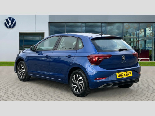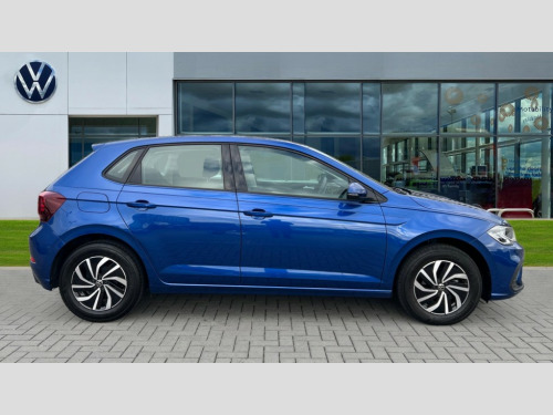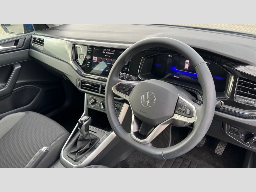 Volkswagen Polo 1.0 TSI Life 5dr DSG Adaptive cruise control with follow-to-stop and speed limiter, Advanced driver attention and drowsiness monitor, Bluetooth mobile phone interface, Dynamic road sign display, Emergency call service, Mobile phone preparation with inductive charging function, Multifunction camera, Power assisted speed sensitive steering, Preparation for navigation system with media and internet package, Preparation for We connect and We connect plus, Speedo and rev counter, electronic odometer, trip, service interval display and exterior temperature gauge, Standard rear axle, Travel Assist - Lane keeping system and traffic jam assist, Travel assist including emergency assist, Trip computer, Warning signal and warning light for front and rear seatbelts not fastened, Washer fluid level indicator, Wireless app connect, Front wheel drive, Rear shock absorpion, Start-stop system with battery regeneration (recuperation - energy recovery during braking), DAB Digital radio, Diversity antenna for FM reception, Automatic dimming interior rear view mirror, Automatic headlight control with LED separate daytime running lights with coming/leaving home function, Body colour bumpers with chrome inserts, Body colour door handles, Body colour door mirrors, Electric front windows, Engine badge deletion, Headlight range adjustment, Heat insulating and laminated safety glass windshield, LED Headlights, LED rear combination lamps, Power folding adjustable/heated exterior mirrors and front passenger exterior mirror lowering function, Rain sensor, Rear electric windows, Rear fog light, Rear side wing doors, Rear windscreen washer and wiper with interval delay, Third brake light, 12V power socket in centre console, 2 front and 2 rear reading lights with switch off delay and dimmer, 2 USB-C ports in the front, 2 USB-C charging sockets on the center console in the rear, 3 rear head restraints, 60/40 split folding rear seat and rear seat bench not split, Ceramique roof lining, Chrome plated radiator grille inserts, air vent surrounds and light switch surrounds, Door and side trim panel, Driver and front passenger seat height adjustment, Driver/passenger sunvisors with illuminated vanity mirrors, Front centre armrest, Front seat backrest storage pockets, Front standard seats, Handbrake lever handle in leather, Hartley/Thomas cloth upholstery, Headliner in recycled material, Isofix child seat preparation easy-fit (for two outer rear seats, and front passenger seat) compatible with I-size, Leather trimmed gear knob, Luggage compartment cover, Luggage compartment lighting, Removable luggage compartment floor, Single front passenger seat, Standard climatic zones, Standard pedal cluster, Three spoke leather wrapped multifunction steering wheel with shifting paddles, 3 point height adj front seatbelts + pretensioners, 3x3 point rear seatbelts, ABS, Driver and front passenger airbag with front passenger airbag deactivation, Drivers and front passengers safety optimised head restraints, ESC (Electronic stability control) + EDL (Electronic Differntial lock) and ASR (Traction control), Extended and predictive pedestrian/ cyclist protection, Front assist with autonomous emergency braking (for Adaptive Cruise Control ACC up to 130 mph), Front curtain and side airbags with center airbag, Front disc brakes, Hill hold control, Manual child lock in rear doors, Rear drum brakes, Single tone horn, Tyre pressure loss indicator, Alarm with interior protection, Anti-theft alarm system with interior monitoring, backup horn, and towing protection, Anti-theft wheel bolts, Electronic engine immobiliser, Lava stone black gloss/matt decorative inserts in dash and front door panels, Low rolling resistance tyres
