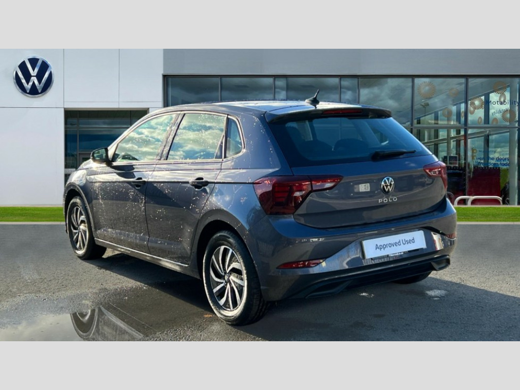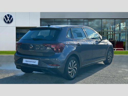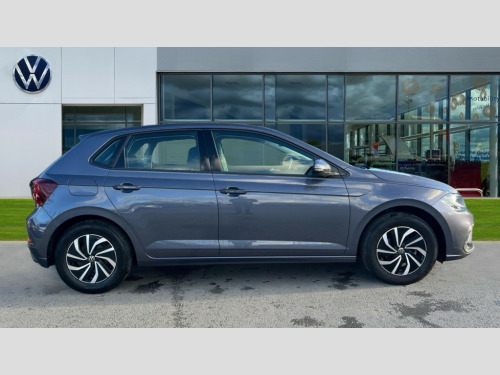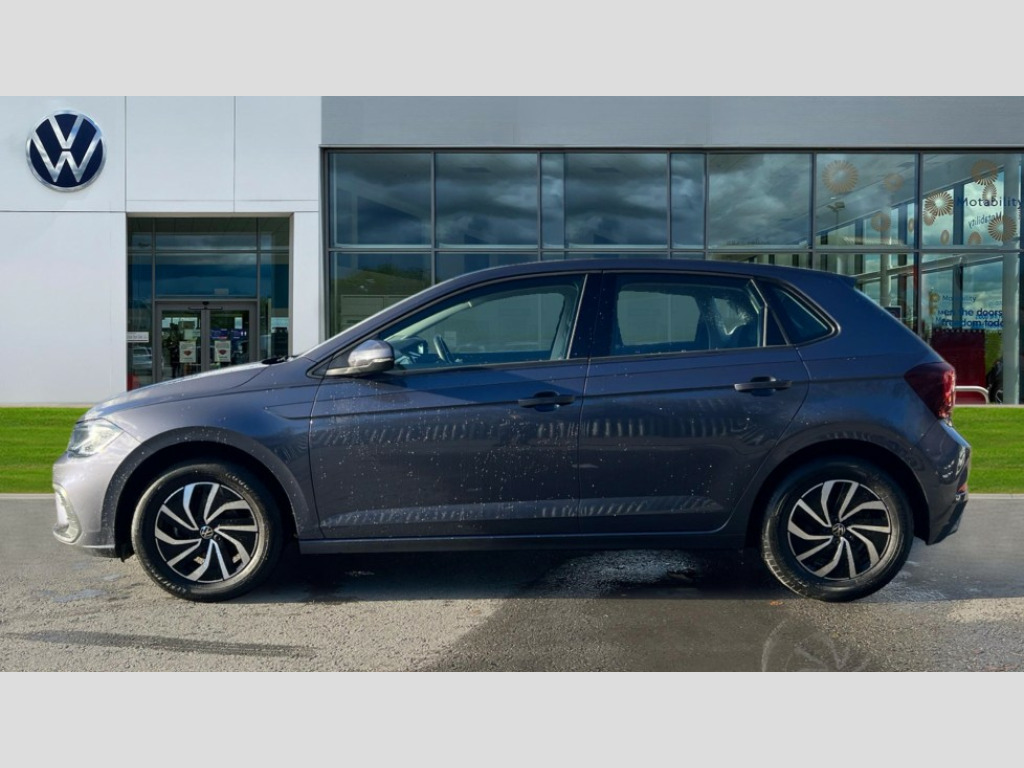 Volkswagen Polo 1.0 TSI Life 5dr DSG Adaptive cruise control with follow-to-stop and speed limiter, Bluetooth mobile phone interface, Driver alert system, Emergency call service, Front assist system, Power assisted speed sensitive steering, Preparation for We connect and We connect plus, Speedo and rev counter, electronic odometer, trip, service interval display and fuel gauge, Standard rear axle, Travel Assist - Lane keeping system and traffic jam assist, Travel assist including emergency assist, Trip computer, Warning signal and warning light for front and rear seatbelts not fastened, Washer fluid level indicator, Wireless app connect, Front wheel drive, Rear shock absorpion, Start-stop system with battery regeneration (recuperation - energy recovery during braking), DAB Digital radio, Diversity antenna for FM reception, Front and rear 6 speakers, Automatic dimming interior rear view mirror, Body colour bumpers, Body colour door handles, Body colour door mirrors, Electric front windows, Heat insulating darkened glass in side and rear windows, Heat insulating glass windscreen, Power folding adjustable/heated exterior mirrors and front passenger exterior mirror lowering function, Rain sensor, Rear electric windows, Rear fog light, Rear side wing doors, Rear windscreen washer and wiper with interval delay, Third brake light, 12V power socket in centre console, 2 front and 2 rear reading lights, 2 USB-C ports in the front, 2 USB-C charging sockets on the center console in the rear, 3 rear head restraints, 60/40 split folding rear seat and rear seat bench not split, Ceramique headliner, Chrome plated radiator grille inserts, air vent surrounds and light switch surrounds, Door and side trim panel, Driver and front passenger seat height adjustment, Driver/passenger sunvisors with illuminated vanity mirrors, Front centre armrest, Front seat backrest storage pockets, Front standard seats, Handbrake lever handle in leather, Hartley/Thomas cloth upholstery, Isofix child seat preparation easy-fit (for two outer rear seats, and front passenger seat) compatible with I-size, Leather trimmed gear knob, Luggage compartment cover, Luggage compartment floor, Luggage compartment lighting, Single front passenger seat, Standard pedal cluster, Three spoke leather wrapped multifunction steering wheel with shifting paddles, Light and vision pack - Polo, 3 point height adj front seatbelts + pretensioners, 3x3 point rear seatbelts, ABS, Driver and front passenger airbag with front passenger airbag deactivation, Drivers and front passengers safety optimised head restraints, ESC (Electronic stability control) + EDL (Electronic Differntial lock) and ASR (Traction control), Extended and predictive pedestrian/ cyclist protection, Front curtain and side airbags with center airbag, Front disc brakes, Hill hold control, Manual child lock in rear doors, Rear drum brakes, Single tone horn, Tyre pressure loss indicator, Alarm with interior protection, Anti-theft alarm system with interior monitoring, backup horn, and towing protection, Anti-theft wheel bolts, Electronic engine immobiliser, Lava stone black gloss/matt decorative inserts in dash and front door panels, Low rolling resistance tyres