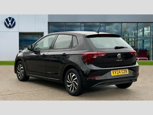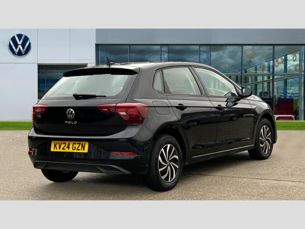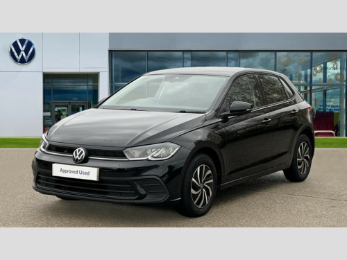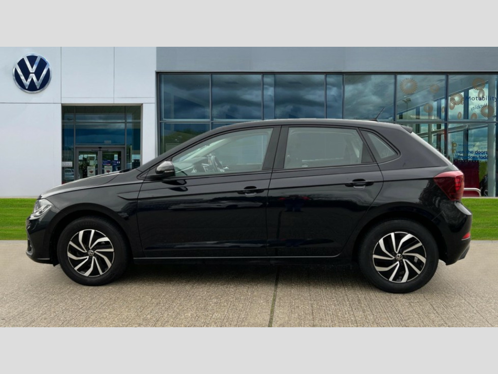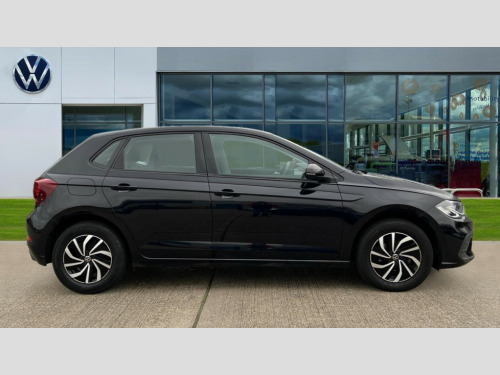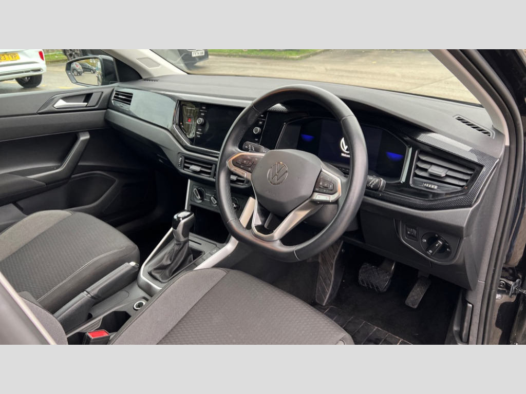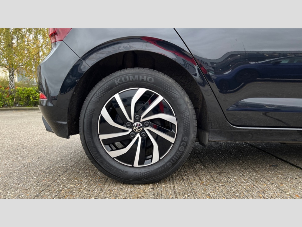 Volkswagen Polo 1.0 TSI Life 5dr DSG Adaptive cruise control with follow-to-stop and speed limiter, Advanced driver attention and drowsiness monitor, Bluetooth mobile phone interface, Dynamic road sign display, Emergency call service, Power assisted speed sensitive steering, Preparation for navigation system with media and internet package, Preparation for We connect and We connect plus, Speedo and rev counter, electronic odometer, trip, service interval display and exterior temperature gauge, Standard rear axle, Travel Assist - Lane keeping system and traffic jam assist, Travel assist including emergency assist, Trip computer, Warning signal and warning light for front and rear seatbelts not fastened, Washer fluid level indicator, Wireless app connect, Front wheel drive, Rear shock absorpion, Start-stop system with battery regeneration (recuperation - energy recovery during braking), DAB Digital radio, Diversity antenna for FM reception, Front and rear 6 speakers, Automatic dimming interior rear view mirror, Automatic headlight control with LED separate daytime running lights with coming/leaving home function, Body colour bumpers with chrome inserts, Body colour door handles, Body colour door mirrors, Electric front windows, Engine badge deletion, Headlight range adjustment, Heat insulating and laminated safety glass windshield, Heat insulating darkened glass in side and rear windows, Heat insulating glass windscreen, LED Headlights, LED rear combination lamps, Power folding adjustable/heated exterior mirrors and front passenger exterior mirror lowering function, Rain sensor, Rear electric windows, Rear fog light, Rear side wing doors, Rear windscreen washer and wiper with interval delay, Third brake light, 12V power socket in centre console, 2 front and 2 rear reading lights with switch off delay and dimmer, 2 USB-C ports in the front, 2 USB-C charging sockets on the center console in the rear, 3 rear head restraints, 60/40 split folding rear seat and rear seat bench not split, Ceramique roof lining, Chrome plated radiator grille inserts, air vent surrounds and light switch surrounds, Door and side trim panel, Driver and front passenger seat height adjustment, Driver/passenger sunvisors with illuminated vanity mirrors, Front centre armrest, Front seat backrest storage pockets, Front standard seats, Handbrake lever handle in leather, Hartley/Thomas cloth upholstery, Headliner in recycled material, Isofix child seat preparation easy-fit (for two outer rear seats, and front passenger seat) compatible with I-size, Leather trimmed gear knob, Luggage compartment cover, Luggage compartment lighting, Removable luggage compartment floor, Single front passenger seat, Standard climatic zones, Standard pedal cluster, Three spoke leather wrapped multifunction steering wheel with shifting paddles, Light and vision pack - Polo, 3 point height adj front seatbelts + pretensioners, 3x3 point rear seatbelts, ABS, Driver and front passenger airbag with front passenger airbag deactivation, Drivers and front passengers safety optimised head restraints, ESC (Electronic stability control) + EDL (Electronic Differntial lock) and ASR (Traction control), Extended and predictive pedestrian/ cyclist protection, Front assist with autonomous emergency braking (for Adaptive Cruise Control ACC up to 130 mph), Front curtain and side airbags with center airbag, Front disc brakes, Hill hold control, Manual child lock in rear doors, Rear drum brakes, Single tone horn, Tyre pressure loss indicator, Alarm with interior protection, Anti-theft alarm system with interior monitoring, backup horn, and towing protection, Anti-theft wheel bolts, Electronic engine immobiliser, Lava stone black gloss/matt decorative inserts in dash and front door panels, Low rolling resistance tyres