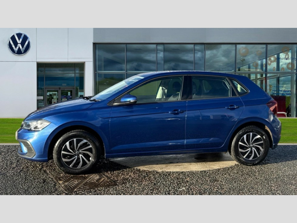 Volkswagen Polo 1.0 TSI Life 5dr DSG Adaptive cruise control with follow-to-stop and speed limiter, Advanced driver attention and drowsiness monitor, Bluetooth mobile phone interface, Dynamic road sign display, Emergency call service, Multifunction camera, Power assisted speed sensitive steering, Preparation for navigation system with media and internet package, Preparation for We connect and We connect plus, Speedo and rev counter, electronic odometer, trip, service interval display and exterior temperature gauge, Standard rear axle, Travel Assist - Lane keeping system and traffic jam assist, Travel assist including emergency assist, Trip computer, Warning signal and warning light for front and rear seatbelts not fastened, Washer fluid level indicator, Wireless app connect, Front wheel drive, Rear shock absorpion, Start-stop system with battery regeneration (recuperation - energy recovery during braking), DAB Digital radio, Diversity antenna for FM reception, Front and rear 6 speakers, Automatic dimming interior rear view mirror, Automatic headlight control with LED separate daytime running lights with coming/leaving home function, Body colour bumpers with chrome inserts, Body colour door handles, Body colour door mirrors, Electric front windows, Engine badge deletion, Headlight range adjustment, Heat insulating and laminated safety glass windshield, LED Headlights, LED rear combination lamps, Power folding adjustable/heated exterior mirrors and front passenger exterior mirror lowering function, Rain sensor, Rear electric windows, Rear fog light, Rear side wing doors, Rear windscreen washer and wiper with interval delay, Third brake light, 12V power socket in centre console, 2 front and 2 rear reading lights with switch off delay and dimmer, 2 USB-C ports in the front, 2 USB-C charging sockets on the center console in the rear, 3 rear head restraints, 60/40 split folding rear seat and rear seat bench not split, Ceramique roof lining, Chrome plated radiator grille inserts, air vent surrounds and light switch surrounds, Door and side trim panel, Driver and front passenger seat height adjustment, Driver/passenger sunvisors with illuminated vanity mirrors, Front centre armrest, Front seat backrest storage pockets, Front standard seats, Handbrake lever handle in leather, Hartley/Thomas cloth upholstery, Headliner in recycled material, Isofix child seat preparation easy-fit (for two outer rear seats, and front passenger seat) compatible with I-size, Leather trimmed gear knob, Luggage compartment cover, Luggage compartment lighting, Removable luggage compartment floor, Single front passenger seat, Standard climatic zones, Standard pedal cluster, Three spoke leather wrapped multifunction steering wheel with shifting paddles, Light and vision pack - Polo, 3 point height adj front seatbelts + pretensioners, 3x3 point rear seatbelts, ABS, Driver and front passenger airbag with front passenger airbag deactivation, Drivers and front passengers safety optimised head restraints, ESC (Electronic stability control) + EDL (Electronic Differntial lock) and ASR (Traction control), Extended and predictive pedestrian/ cyclist protection, Front assist with autonomous emergency braking (for Adaptive Cruise Control ACC up to 130 mph), Front curtain and side airbags with center airbag, Front disc brakes, Hill hold control, Manual child lock in rear doors, Rear drum brakes, Single tone horn, Tyre pressure loss indicator, Alarm with interior protection, Anti-theft alarm system with interior monitoring, backup horn, and towing protection, Anti-theft wheel bolts, Electronic engine immobiliser, Lava stone black gloss/matt decorative inserts in dash and front door panels, Low rolling resistance tyres