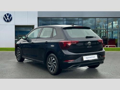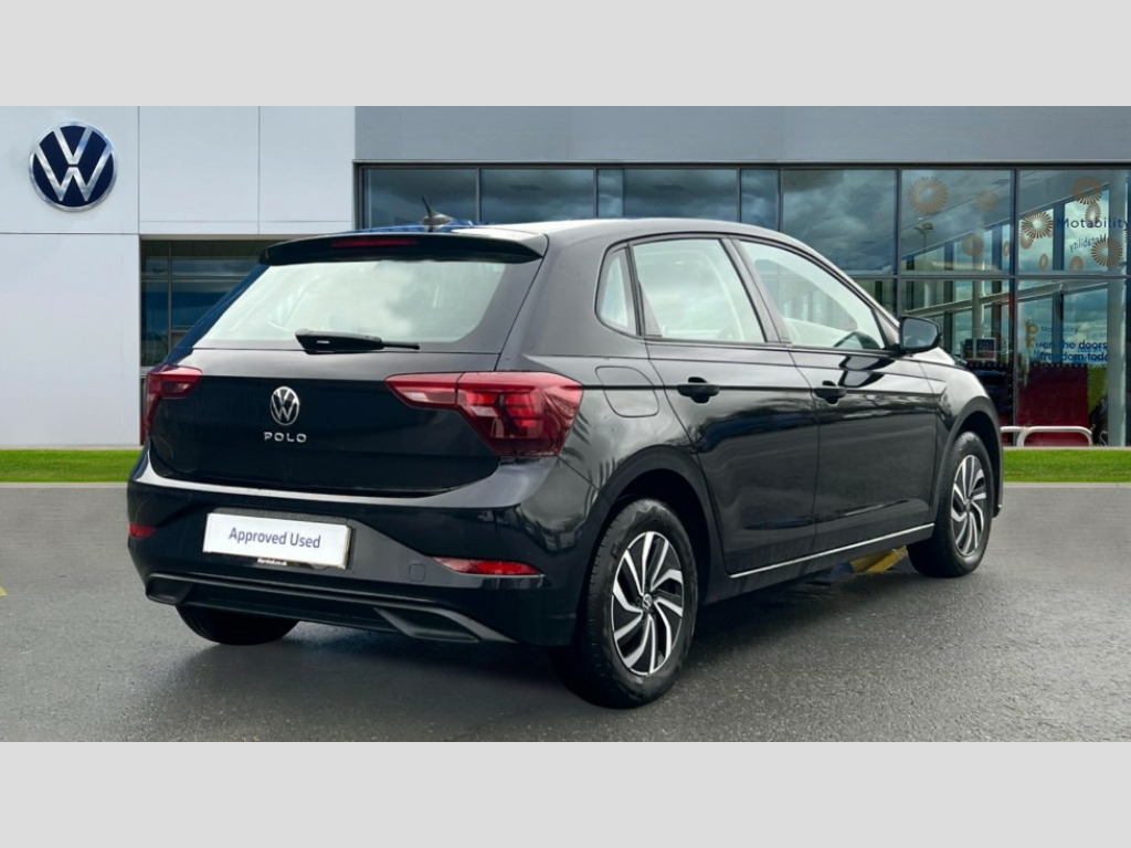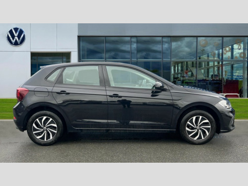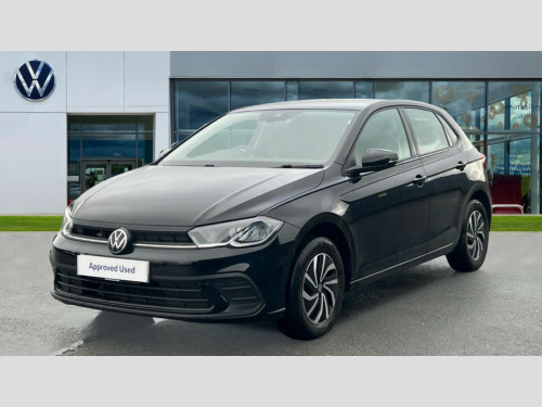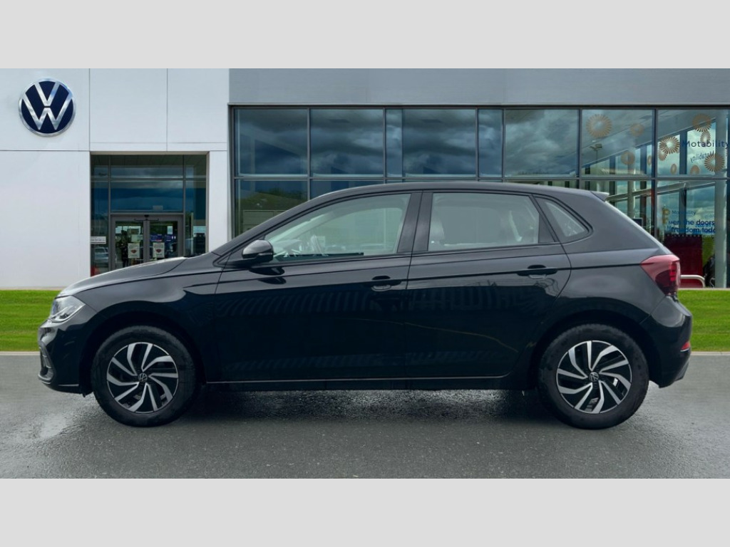 Volkswagen Polo 1.0 TSI Life 5dr DSG Adaptive cruise control with follow-to-stop and speed limiter, Advanced driver attention and drowsiness monitor, Bluetooth mobile phone interface, Dynamic road sign display, Emergency call service, Power assisted speed sensitive steering, Preparation for navigation system with media and internet package, Preparation for We connect and We connect plus, Speedo and rev counter, electronic odometer, trip, service interval display and exterior temperature gauge, Standard rear axle, Travel Assist - Lane keeping system and traffic jam assist, Travel assist including emergency assist, Trip computer, Warning signal and warning light for front and rear seatbelts not fastened, Washer fluid level indicator, Wireless app connect, Front wheel drive, Rear shock absorpion, Start-stop system with battery regeneration (recuperation - energy recovery during braking), DAB Digital radio, Diversity antenna for FM reception, Automatic dimming interior rear view mirror, Automatic headlight control with LED separate daytime running lights with coming/leaving home function, Body colour bumpers with chrome inserts, Body colour door handles, Body colour door mirrors, Electric front windows, Engine badge deletion, Headlight range adjustment, Heat insulating and laminated safety glass windshield, Heat insulating darkened glass in side and rear windows, Heat insulating glass windscreen, LED Headlights, LED rear combination lamps, Power folding adjustable/heated exterior mirrors and front passenger exterior mirror lowering function, Rain sensor, Rear electric windows, Rear fog light, Rear side wing doors, Rear windscreen washer and wiper with interval delay, Third brake light, 12V power socket in centre console, 2 front and 2 rear reading lights with switch off delay and dimmer, 2 USB-C ports in the front, 2 USB-C charging sockets on the center console in the rear, 3 rear head restraints, 60/40 split folding rear seat and rear seat bench not split, Ceramique roof lining, Chrome plated radiator grille inserts, air vent surrounds and light switch surrounds, Door and side trim panel, Driver and front passenger seat height adjustment, Driver/passenger sunvisors with illuminated vanity mirrors, Front centre armrest, Front seat backrest storage pockets, Front standard seats, Handbrake lever handle in leather, Hartley/Thomas cloth upholstery, Headliner in recycled material, Isofix child seat preparation easy-fit (for two outer rear seats, and front passenger seat) compatible with I-size, Leather trimmed gear knob, Luggage compartment cover, Luggage compartment lighting, Removable luggage compartment floor, Single front passenger seat, Standard climatic zones, Standard pedal cluster, Three spoke leather wrapped multifunction steering wheel with shifting paddles, Light and vision pack - Polo, 3 point height adj front seatbelts + pretensioners, 3x3 point rear seatbelts, ABS, Driver and front passenger airbag with front passenger airbag deactivation, Drivers and front passengers safety optimised head restraints, ESC (Electronic stability control) + EDL (Electronic Differntial lock) and ASR (Traction control), Extended and predictive pedestrian/ cyclist protection, Front assist with autonomous emergency braking (for Adaptive Cruise Control ACC up to 130 mph), Front curtain and side airbags with center airbag, Front disc brakes, Hill hold control, Manual child lock in rear doors, Rear drum brakes, Single tone horn, Tyre pressure loss indicator, Alarm with interior protection, Anti-theft alarm system with interior monitoring, backup horn, and towing protection, Anti-theft wheel bolts, Electronic engine immobiliser, Lava stone black gloss/matt decorative inserts in dash and front door panels, Low rolling resistance tyres