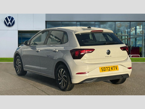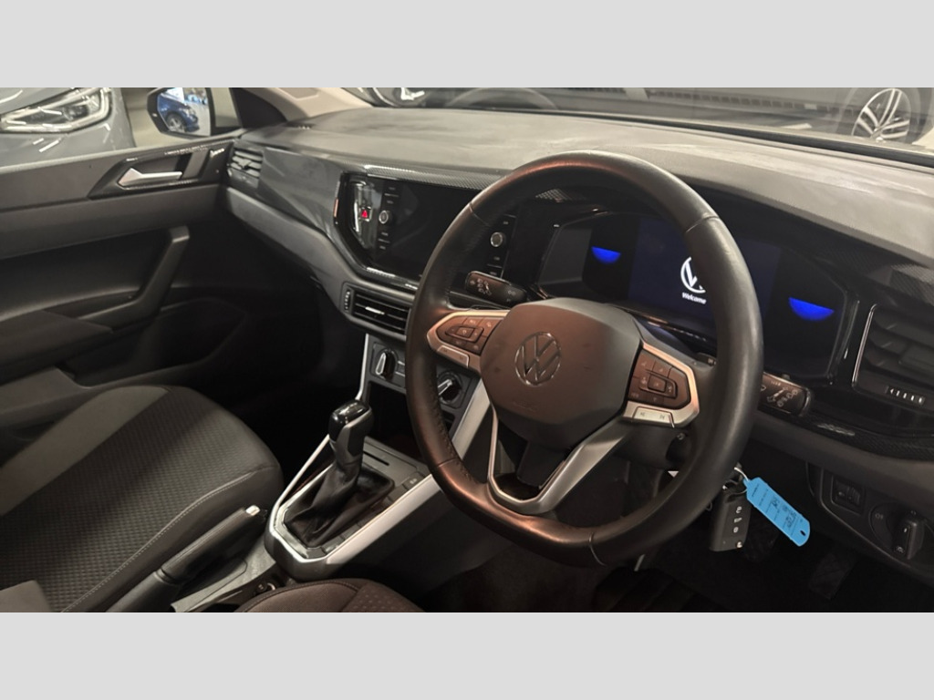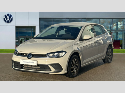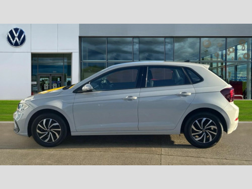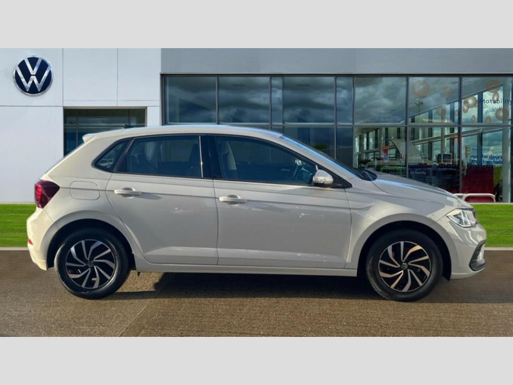 Volkswagen Polo 1.0 TSI Life 5dr DSG Adaptive cruise control with follow-to-stop and speed limiter, Bluetooth mobile phone interface, Driver alert system, Emergency call service, Front assist system, Power assisted speed sensitive steering, Preparation for We connect and We connect plus, Speedo and rev counter, electronic odometer, trip, service interval display and fuel gauge, Standard rear axle, Travel Assist - Lane keeping system and traffic jam assist, Travel assist including emergency assist, Trip computer, Warning signal and warning light for front and rear seatbelts not fastened, Washer fluid level indicator, Wireless app connect, Front wheel drive, Rear shock absorpion, Start-stop system with battery regeneration (recuperation - energy recovery during braking), DAB Digital radio, Diversity antenna for FM reception, Front and rear 6 speakers, Automatic dimming interior rear view mirror, Body colour bumpers, Body colour door handles, Body colour door mirrors, Electric front windows, Heat insulating darkened glass in side and rear windows, Heat insulating glass windscreen, Power folding adjustable/heated exterior mirrors and front passenger exterior mirror lowering function, Rain sensor, Rear electric windows, Rear fog light, Rear side wing doors, Rear windscreen washer and wiper with interval delay, Third brake light, 12V power socket in centre console, 2 front and 2 rear reading lights, 2 USB-C ports in the front, 2 USB-C charging sockets on the center console in the rear, 3 rear head restraints, 60/40 split folding rear seat and rear seat bench not split, Chrome plated radiator grille inserts, air vent surrounds and light switch surrounds, Door and side trim panel, Driver and front passenger seat height adjustment, Driver/passenger sunvisors with illuminated vanity mirrors, Front centre armrest, Front seat backrest storage pockets, Front standard seats, Handbrake lever handle in leather, Hartley/Thomas cloth upholstery, Headliner in recycled material, Isofix child seat preparation easy-fit (for two outer rear seats, and front passenger seat) compatible with I-size, Leather trimmed gear knob, Luggage compartment cover, Luggage compartment floor, Luggage compartment lighting, Single front passenger seat, Standard pedal cluster, Three spoke leather wrapped multifunction steering wheel with shifting paddles, Light and vision pack - Polo, 3 point height adj front seatbelts + pretensioners, 3x3 point rear seatbelts, ABS, Driver and front passenger airbag with front passenger airbag deactivation, Drivers and front passengers safety optimised head restraints, ESC (Electronic stability control) + EDL (Electronic Differntial lock) and ASR (Traction control), Extended and predictive pedestrian/ cyclist protection, Front curtain and side airbags with center airbag, Front disc brakes, Hill hold control, Manual child lock in rear doors, Rear drum brakes, Single tone horn, Tyre pressure loss indicator, Alarm with interior protection, Anti-theft alarm system with interior monitoring, backup horn, and towing protection, Anti-theft wheel bolts, Electronic engine immobiliser, Lava stone black gloss/matt decorative inserts in dash and front door panels, Low rolling resistance tyres