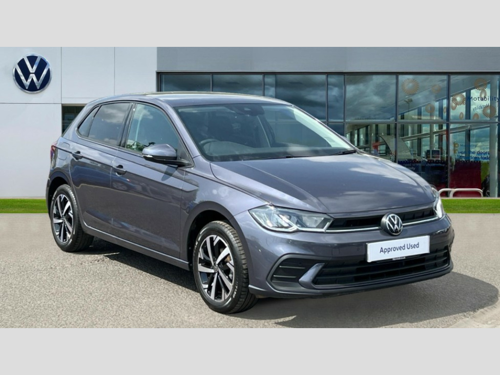 Volkswagen Polo 1.0 TSI Match 5dr Adaptive cruise control without follow-to-stop and speed limiter, Advanced driver attention and drowsiness monitor, Bluetooth mobile phone interface, Dynamic road sign display, Emergency call service, Multifunction front facing camera for distance control, Park distance control, Power assisted speed sensitive steering, Preparation for navigation system with media and internet package, Preparation for We connect and We connect plus, Rear view camera, Speedo and rev counter, electronic odometer, trip, service interval display and exterior temperature gauge, Standard rear axle, Travel Assist - Lane keeping system and traffic jam assist, Travel assist including emergency assist, Trip computer, Warning signal and warning light for front and rear seatbelts not fastened, Washer fluid level indicator, Wireless app connect, Front wheel drive, Rear shock absorpion, Start-stop system with battery regeneration (recuperation - energy recovery during braking), DAB Digital radio, Diversity antenna for FM reception, Front and rear 6 speakers, Automatic dimming interior rear view mirror, Automatic headlight control with LED separate daytime running lights with coming/leaving home function, Body colour bumpers with chrome inserts, Body colour door handles, Body colour door mirrors, Electric front windows, Engine badge deletion, Headlight range adjustment, Heat insulating and laminated safety glass windshield, LED Headlights, LED rear combination lamps, Power folding adjustable/heated exterior mirrors and front passenger exterior mirror lowering function, Rain sensor, Rear electric windows, Rear fog light, Rear side wing doors, Rear tinted glass from B-pillar backwards approx 65% tinted, Rear windscreen washer and wiper with interval delay, Third brake light, 12V power socket in centre console, 2 front and 2 rear reading lights with switch off delay and dimmer, 2 USB-C ports in the front, 2 USB-C charging sockets on the center console in the rear, 3 rear head restraints, 60/40 split folding rear seat and rear seat bench not split, Ceramique roof lining, Chrome plated radiator grille inserts, air vent surrounds and light switch surrounds, Door and side trim panel, Driver and front passenger seat height adjustment, Driver/passenger sunvisors with illuminated vanity mirrors, Front centre armrest, Front seat backrest storage pockets, Front standard seats, Handbrake lever handle in leather, Hartley/Thomas cloth upholstery, Headliner in recycled material, Isofix child seat preparation easy-fit (for two outer rear seats, and front passenger seat) compatible with I-size, Leather trimmed gear knob, Luggage compartment cover, Luggage compartment lighting, Removable luggage compartment floor, Single front passenger seat, Standard climatic zones, Standard pedal cluster, Three spoke leather wrapped multifunction steering wheel, Light and vision pack - Polo, 3 point height adj front seatbelts + pretensioners, 3 point seat belt for centre rear seat, 3 point seatbelts, outer rear with ECE lable, ABS, Driver and front passenger airbag with front passenger airbag deactivation, Drivers and front passengers safety optimised head restraints, ESC (Electronic stability control) + EDL (Electronic Differntial lock) and ASR (Traction control), Extended and predictive pedestrian/ cyclist protection, Front assist with autonomous emergency braking (for Adaptive Cruise Control ACC up to 130 mph), Front curtain and side airbags with center airbag, Front disc brakes, Hill hold control, Manual child lock in rear doors, Rear drum brakes, Single tone horn, Tyre pressure loss indicator, Alarm with interior protection, Anti-theft alarm system with interior monitoring, backup horn, and towing protection, Anti-theft wheel bolts, Electronic engine immobiliser, Lava stone black gloss/matt decorative inserts in dash and front door panels, 16" Torsby alloy wheels, Low rolling resistance tyres
