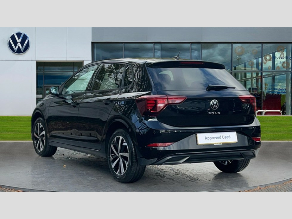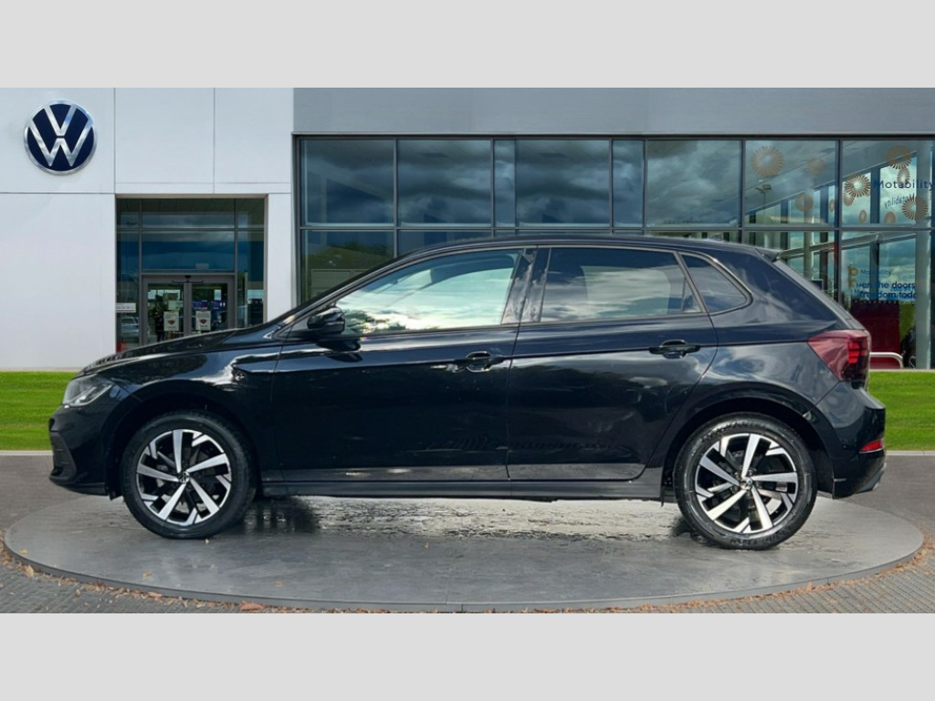 Volkswagen Polo 1.0 TSI Match 5dr Adaptive cruise control without follow-to-stop and speed limiter, Advanced driver attention and drowsiness monitor, Bluetooth mobile phone interface, Dynamic road sign display, Emergency call service, Multifunction front facing camera for distance control, Park distance control, Power assisted speed sensitive steering, Preparation for navigation system with media and internet package, Preparation for We connect and We connect plus, Rear view camera, Speedo and rev counter, electronic odometer, trip, service interval display and exterior temperature gauge, Standard rear axle, Travel Assist - Lane keeping system and traffic jam assist, Travel assist including emergency assist, Trip computer, Warning signal and warning light for front and rear seatbelts not fastened, Washer fluid level indicator, Wireless app connect, Front wheel drive, Rear shock absorpion, Start-stop system with battery regeneration (recuperation - energy recovery during braking), DAB Digital radio, Diversity antenna for FM reception, Front and rear 6 speakers, Automatic dimming interior rear view mirror, Automatic headlight control with LED separate daytime running lights with coming/leaving home function, Body colour bumpers with chrome inserts, Body colour door handles, Body colour door mirrors, Electric front windows, Engine badge deletion, Headlight range adjustment, Heat insulating and laminated safety glass windshield, LED Headlights, LED rear combination lamps, Power folding adjustable/heated exterior mirrors and front passenger exterior mirror lowering function, Rain sensor, Rear electric windows, Rear fog light, Rear side wing doors, Rear tinted glass from B-pillar backwards approx 65% tinted, Rear windscreen washer and wiper with interval delay, Third brake light, 12V power socket in centre console, 2 front and 2 rear reading lights with switch off delay and dimmer, 2 USB-C ports in the front, 2 USB-C charging sockets on the center console in the rear, 3 rear head restraints, 60/40 split folding rear seat and rear seat bench not split, Ceramique roof lining, Chrome plated radiator grille inserts, air vent surrounds and light switch surrounds, Door and side trim panel, Driver and front passenger seat height adjustment, Driver/passenger sunvisors with illuminated vanity mirrors, Front centre armrest, Front seat backrest storage pockets, Front standard seats, Handbrake lever handle in leather, Hartley/Thomas cloth upholstery, Headliner in recycled material, Isofix child seat preparation easy-fit (for two outer rear seats, and front passenger seat) compatible with I-size, Leather trimmed gear knob, Luggage compartment cover, Luggage compartment lighting, Removable luggage compartment floor, Single front passenger seat, Standard climatic zones, Standard pedal cluster, Three spoke leather wrapped multifunction steering wheel, Light and vision pack - Polo, 3 point height adj front seatbelts + pretensioners, 3 point seat belt for centre rear seat, 3 point seatbelts, outer rear with ECE lable, ABS, Driver and front passenger airbag with front passenger airbag deactivation, Drivers and front passengers safety optimised head restraints, ESC (Electronic stability control) + EDL (Electronic Differntial lock) and ASR (Traction control), Extended and predictive pedestrian/ cyclist protection, Front assist with autonomous emergency braking (for Adaptive Cruise Control ACC up to 130 mph), Front curtain and side airbags with center airbag, Front disc brakes, Hill hold control, Manual child lock in rear doors, Rear drum brakes, Single tone horn, Tyre pressure loss indicator, Alarm with interior protection, Anti-theft alarm system with interior monitoring, backup horn, and towing protection, Anti-theft wheel bolts, Electronic engine immobiliser, Lava stone black gloss/matt decorative inserts in dash and front door panels, 16" Torsby alloy wheels, Low rolling resistance tyres