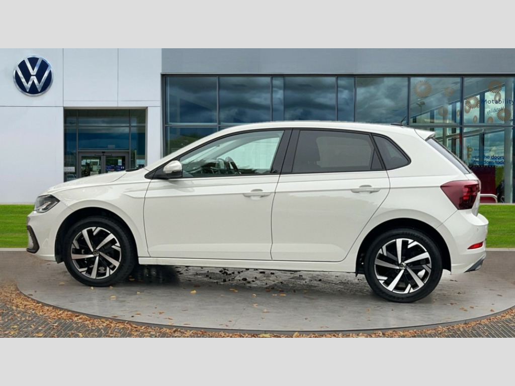 Volkswagen Polo 1.0 TSI Match 5dr Adaptive cruise control without follow-to-stop and speed limiter, Advanced driver attention and drowsiness monitor, Bluetooth mobile phone interface, Dynamic road sign display, Emergency call service, Multifunction front facing camera for distance control, Park distance control, Power assisted speed sensitive steering, Preparation for navigation system with media and internet package, Preparation for We connect and We connect plus, Rear view camera, Speedo and rev counter, electronic odometer, trip, service interval display and exterior temperature gauge, Standard rear axle, Travel Assist - Lane keeping system and traffic jam assist, Travel assist including emergency assist, Trip computer, Warning signal and warning light for front and rear seatbelts not fastened, Washer fluid level indicator, Wireless app connect, Front wheel drive, Rear shock absorpion, Start-stop system with battery regeneration (recuperation - energy recovery during braking), DAB Digital radio, Diversity antenna for FM reception, Front and rear 6 speakers, Automatic dimming interior rear view mirror, Automatic headlight control with LED separate daytime running lights with coming/leaving home function, Body colour bumpers with chrome inserts, Body colour door handles, Body colour door mirrors, Electric front windows, Engine badge deletion, Headlight range adjustment, Heat insulating and laminated safety glass windshield, LED Headlights, LED rear combination lamps, Power folding adjustable/heated exterior mirrors and front passenger exterior mirror lowering function, Rain sensor, Rear electric windows, Rear fog light, Rear side wing doors, Rear tinted glass from B-pillar backwards approx 65% tinted, Rear windscreen washer and wiper with interval delay, Third brake light, 12V power socket in centre console, 2 front and 2 rear reading lights with switch off delay and dimmer, 2 USB-C ports in the front, 2 USB-C charging sockets on the center console in the rear, 3 rear head restraints, 60/40 split folding rear seat and rear seat bench not split, Ceramique roof lining, Chrome plated radiator grille inserts, air vent surrounds and light switch surrounds, Door and side trim panel, Driver and front passenger seat height adjustment, Driver/passenger sunvisors with illuminated vanity mirrors, Front centre armrest, Front seat backrest storage pockets, Front standard seats, Handbrake lever handle in leather, Hartley/Thomas cloth upholstery, Headliner in recycled material, Isofix child seat preparation easy-fit (for two outer rear seats, and front passenger seat) compatible with I-size, Leather trimmed gear knob, Luggage compartment cover, Luggage compartment lighting, Removable luggage compartment floor, Single front passenger seat, Standard climatic zones, Standard pedal cluster, Three spoke leather wrapped multifunction steering wheel, Light and vision pack - Polo, 3 point height adj front seatbelts + pretensioners, 3 point seat belt for centre rear seat, 3 point seatbelts, outer rear with ECE lable, ABS, Driver and front passenger airbag with front passenger airbag deactivation, Drivers and front passengers safety optimised head restraints, ESC (Electronic stability control) + EDL (Electronic Differntial lock) and ASR (Traction control), Extended and predictive pedestrian/ cyclist protection, Front assist with autonomous emergency braking (for Adaptive Cruise Control ACC up to 130 mph), Front curtain and side airbags with center airbag, Front disc brakes, Hill hold control, Manual child lock in rear doors, Rear drum brakes, Single tone horn, Tyre pressure loss indicator, Alarm with interior protection, Anti-theft alarm system with interior monitoring, backup horn, and towing protection, Anti-theft wheel bolts, Electronic engine immobiliser, Lava stone black gloss/matt decorative inserts in dash and front door panels, 16" Torsby alloy wheels, Low rolling resistance tyres