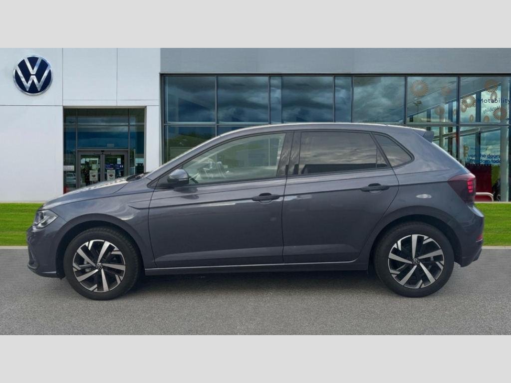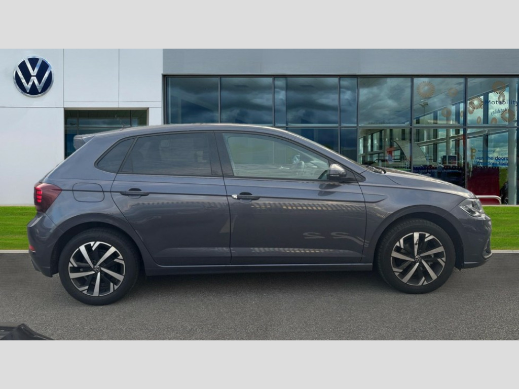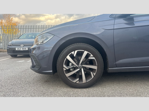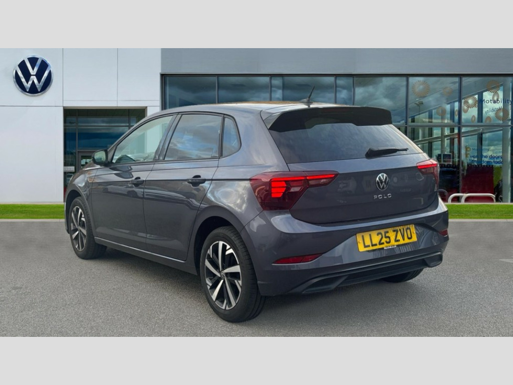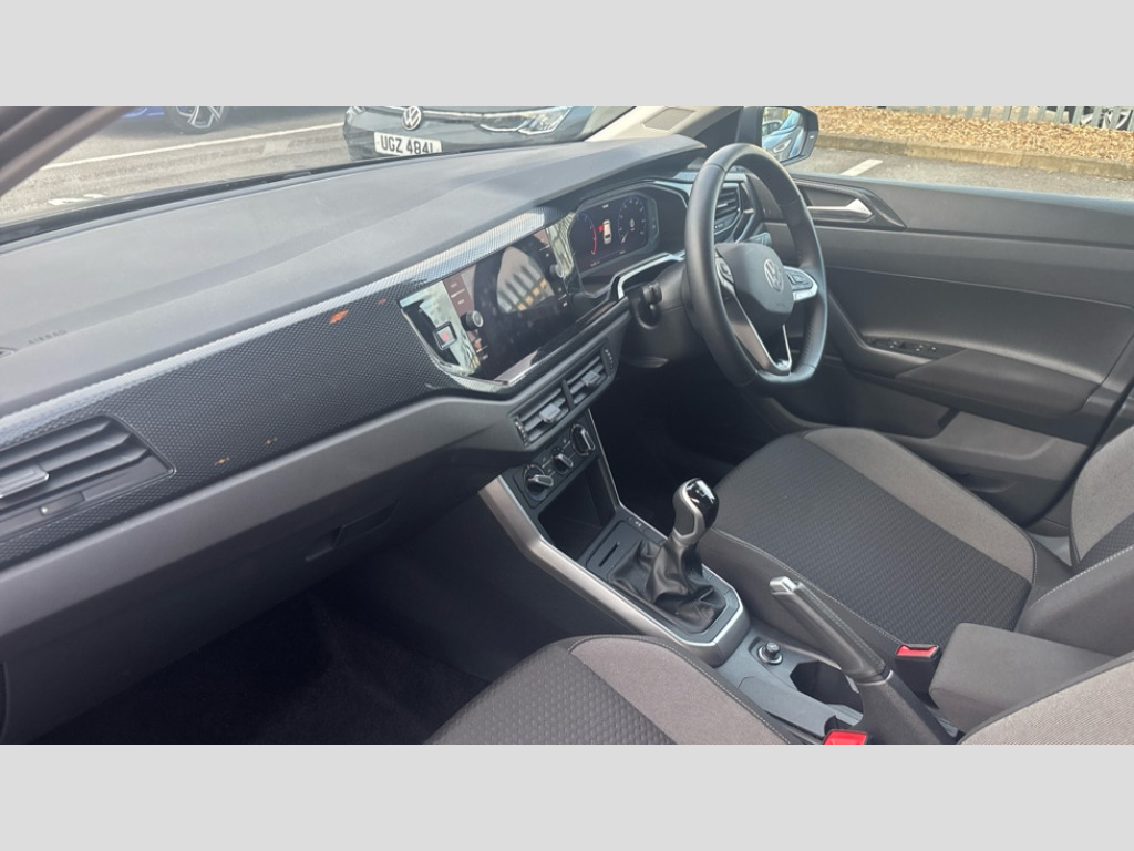 Volkswagen Polo 1.0 TSI Match 5dr Adaptive cruise control without follow-to-stop and speed limiter, Advanced driver attention and drowsiness monitor, Bluetooth mobile phone interface, Dynamic road sign display, Emergency call service, Mobile phone preparation with inductive charging function, Multifunction front facing camera for distance control, Power assisted speed sensitive steering, Preparation for navigation system with media and internet package, Preparation for We connect and We connect plus, Rear view camera, Speedo and rev counter, electronic odometer, trip, service interval display and exterior temperature gauge, Standard rear axle, Travel Assist - Lane keeping system and traffic jam assist, Travel assist including emergency assist, Trip computer, Warning signal and warning light for front and rear seatbelts not fastened, Washer fluid level indicator, Wireless app connect, Front wheel drive, Rear shock absorpion, Start-stop system with battery regeneration (recuperation - energy recovery during braking), DAB Digital radio, Diversity antenna for FM reception, Automatic dimming interior rear view mirror, Automatic headlight control with LED separate daytime running lights with coming/leaving home function, Body colour bumpers with chrome inserts, Body colour door handles, Body colour door mirrors, Electric front windows, Engine badge deletion, Headlight range adjustment, Heat insulating and laminated safety glass windshield, LED Headlights, LED rear combination lamps, Power folding adjustable/heated exterior mirrors and front passenger exterior mirror lowering function, Rain sensor, Rear electric windows, Rear fog light, Rear side wing doors, Rear tinted glass from B-pillar backwards approx 65% tinted, Rear windscreen washer and wiper with interval delay, Third brake light, 12V power socket in centre console, 2 front and 2 rear reading lights with switch off delay and dimmer, 2 USB-C ports in the front, 2 USB-C charging sockets on the center console in the rear, 3 rear head restraints, 60/40 split folding rear seat and rear seat bench not split, Ceramique roof lining, Chrome plated radiator grille inserts, air vent surrounds and light switch surrounds, Door and side trim panel, Driver and front passenger seat height adjustment, Driver/passenger sunvisors with illuminated vanity mirrors, Front centre armrest, Front seat backrest storage pockets, Front standard seats, Handbrake lever handle in leather, Hartley/Thomas cloth upholstery, Headliner in recycled material, Isofix child seat preparation easy-fit (for two outer rear seats, and front passenger seat) compatible with I-size, Leather trimmed gear knob, Luggage compartment cover, Luggage compartment lighting, Removable luggage compartment floor, Single front passenger seat, Standard climatic zones, Standard pedal cluster, Three spoke leather wrapped multifunction steering wheel, Light and vision pack - Polo, 3 point height adj front seatbelts + pretensioners, 3 point seat belt for centre rear seat, 3 point seatbelts, outer rear with ECE lable, ABS, Driver and front passenger airbag with front passenger airbag deactivation, Drivers and front passengers safety optimised head restraints, ESC (Electronic stability control) + EDL (Electronic Differntial lock) and ASR (Traction control), Extended and predictive pedestrian/ cyclist protection, Front assist with autonomous emergency braking (for Adaptive Cruise Control ACC up to 130 mph), Front curtain and side airbags with center airbag, Front disc brakes, Hill hold control, Manual child lock in rear doors, Rear drum brakes, Single tone horn, Tyre pressure loss indicator, Alarm with interior protection, Anti-theft alarm system with interior monitoring, backup horn, and towing protection, Anti-theft wheel bolts, Electronic engine immobiliser, Lava stone black gloss/matt decorative inserts in dash and front door panels, 16" Torsby alloy wheels, Low rolling resistance tyres