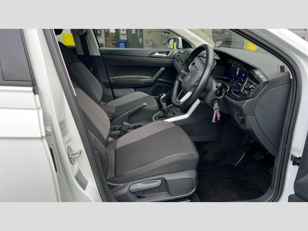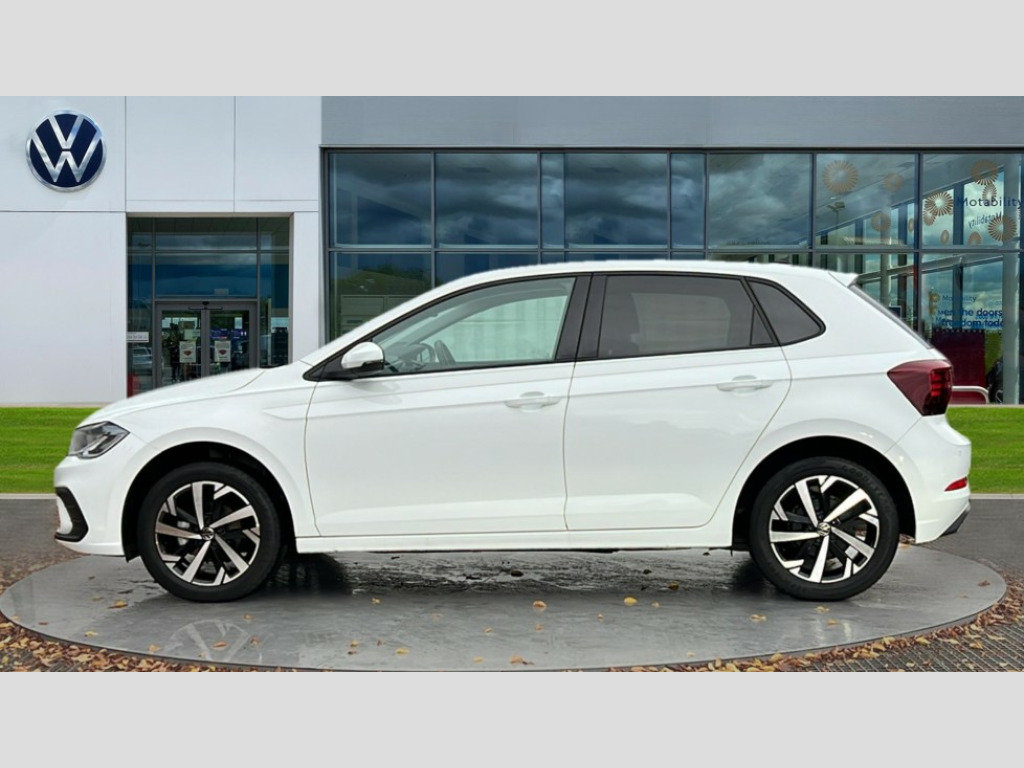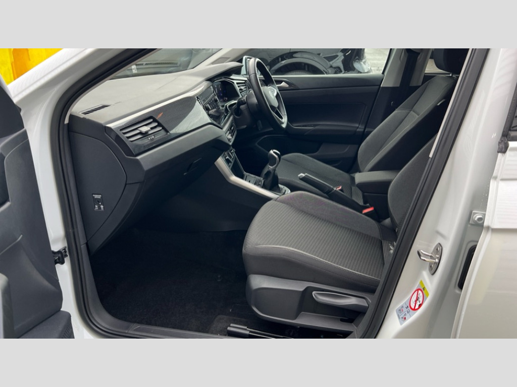 Volkswagen Polo 1.0 TSI Match 5dr Adaptive cruise control without follow-to-stop and speed limiter, Advanced driver attention and drowsiness monitor, Bluetooth mobile phone interface, Dynamic road sign display, Emergency call service, Multifunction front facing camera for distance control, Park distance control, Power assisted speed sensitive steering, Preparation for navigation system with media and internet package, Preparation for We connect and We connect plus, Rear view camera, Speedo and rev counter, electronic odometer, trip, service interval display and exterior temperature gauge, Standard rear axle, Travel Assist - Lane keeping system and traffic jam assist, Travel assist including emergency assist, Trip computer, Warning signal and warning light for front and rear seatbelts not fastened, Washer fluid level indicator, Wireless app connect, Front wheel drive, Rear shock absorpion, Start-stop system with battery regeneration (recuperation - energy recovery during braking), DAB Digital radio, Diversity antenna for FM reception, Front and rear 6 speakers, Automatic dimming interior rear view mirror, Automatic headlight control with LED separate daytime running lights with coming/leaving home function, Body colour bumpers with chrome inserts, Body colour door handles, Body colour door mirrors, Electric front windows, Engine badge deletion, Headlight range adjustment, Heat insulating and laminated safety glass windshield, LED Headlights, LED rear combination lamps, Power folding adjustable/heated exterior mirrors and front passenger exterior mirror lowering function, Rain sensor, Rear electric windows, Rear fog light, Rear side wing doors, Rear tinted glass from B-pillar backwards approx 65% tinted, Rear windscreen washer and wiper with interval delay, Third brake light, 12V power socket in centre console, 2 front and 2 rear reading lights with switch off delay and dimmer, 2 USB-C ports in the front, 2 USB-C charging sockets on the center console in the rear, 3 rear head restraints, 60/40 split folding rear seat and rear seat bench not split, Ceramique roof lining, Chrome plated radiator grille inserts, air vent surrounds and light switch surrounds, Door and side trim panel, Driver and front passenger seat height adjustment, Driver/passenger sunvisors with illuminated vanity mirrors, Front centre armrest, Front seat backrest storage pockets, Front standard seats, Handbrake lever handle in leather, Hartley/Thomas cloth upholstery, Headliner in recycled material, Isofix child seat preparation easy-fit (for two outer rear seats, and front passenger seat) compatible with I-size, Leather trimmed gear knob, Luggage compartment cover, Luggage compartment lighting, Removable luggage compartment floor, Single front passenger seat, Standard climatic zones, Standard pedal cluster, Three spoke leather wrapped multifunction steering wheel, Light and vision pack - Polo, 3 point height adj front seatbelts + pretensioners, 3 point seat belt for centre rear seat, 3 point seatbelts, outer rear with ECE lable, ABS, Driver and front passenger airbag with front passenger airbag deactivation, Drivers and front passengers safety optimised head restraints, ESC (Electronic stability control) + EDL (Electronic Differntial lock) and ASR (Traction control), Extended and predictive pedestrian/ cyclist protection, Front assist with autonomous emergency braking (for Adaptive Cruise Control ACC up to 130 mph), Front curtain and side airbags with center airbag, Front disc brakes, Hill hold control, Manual child lock in rear doors, Rear drum brakes, Single tone horn, Tyre pressure loss indicator, Alarm with interior protection, Anti-theft alarm system with interior monitoring, backup horn, and towing protection, Anti-theft wheel bolts, Electronic engine immobiliser, Lava stone black gloss/matt decorative inserts in dash and front door panels, 16" Torsby alloy wheels, Low rolling resistance tyres