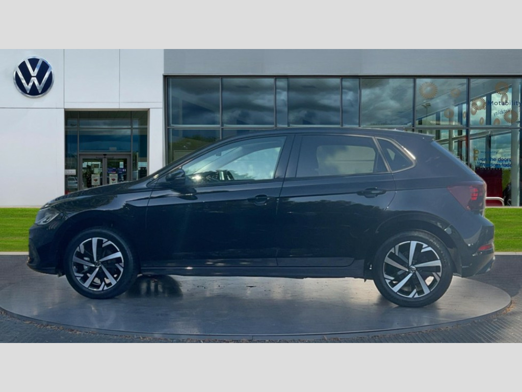 Volkswagen Polo 1.0 TSI Match 5dr DSG Advanced driver attention and drowsiness monitor, Bluetooth mobile phone interface, Dynamic road sign display, Emergency call service, Multifunction front facing camera for distance control, Park distance control, Power assisted speed sensitive steering, Predictive adaptive cruise control without follow-to-stop and speed limiter, Preparation for navigation system with media and internet package, Preparation for We connect and We connect plus, Rear view camera, Speedo and rev counter, electronic odometer, trip, service interval display and exterior temperature gauge, Standard rear axle, Travel Assist - Lane keeping system and traffic jam assist, Travel assist including emergency assist, Trip computer, Warning signal and warning light for front and rear seatbelts not fastened, Washer fluid level indicator, Wireless app connect, Front wheel drive, Rear shock absorpion, Start-stop system with battery regeneration (recuperation - energy recovery during braking), DAB Digital radio, Diversity antenna for FM reception, Front and rear 6 speakers, Automatic dimming interior rear view mirror, Automatic headlight control with LED separate daytime running lights with coming/leaving home function, Body colour bumpers with chrome inserts, Body colour door handles, Body colour door mirrors, Electric front windows, Engine badge deletion, Headlight range adjustment, Heat insulating and laminated safety glass windshield, LED Headlights, LED rear combination lamps, Power folding adjustable/heated exterior mirrors and front passenger exterior mirror lowering function, Rain sensor, Rear electric windows, Rear fog light, Rear side wing doors, Rear tinted glass from B-pillar backwards approx 65% tinted, Rear windscreen washer and wiper with interval delay, Third brake light, 12V power socket in centre console, 2 front and 2 rear reading lights with switch off delay and dimmer, 2 USB-C ports in the front, 2 USB-C charging sockets on the center console in the rear, 3 rear head restraints, 60/40 split folding rear seat and rear seat bench not split, Ceramique roof lining, Chrome plated radiator grille inserts, air vent surrounds and light switch surrounds, Door and side trim panel, Driver and front passenger seat height adjustment, Driver/passenger sunvisors with illuminated vanity mirrors, Front centre armrest, Front seat backrest storage pockets, Front standard seats, Handbrake lever handle in leather, Hartley/Thomas cloth upholstery, Headliner in recycled material, Isofix child seat preparation easy-fit (for two outer rear seats, and front passenger seat) compatible with I-size, Leather trimmed gear knob, Luggage compartment cover, Luggage compartment lighting, Removable luggage compartment floor, Single front passenger seat, Standard climatic zones, Standard pedal cluster, Three spoke leather wrapped multifunction steering wheel with shifting paddles, Light and vision pack - Polo, 3 point height adj front seatbelts + pretensioners, 3 point seat belt for centre rear seat, 3 point seatbelts, outer rear with ECE lable, ABS, Driver and front passenger airbag with front passenger airbag deactivation, Drivers and front passengers safety optimised head restraints, ESC (Electronic stability control) + EDL (Electronic Differntial lock) and ASR (Traction control), Extended and predictive pedestrian/ cyclist protection, Front assist with autonomous emergency braking (for Adaptive Cruise Control ACC up to 130 mph), Front curtain and side airbags with center airbag, Front disc brakes, Hill hold control, Manual child lock in rear doors, Rear drum brakes, Single tone horn, Tyre pressure loss indicator, Alarm with interior protection, Anti-theft alarm system with interior monitoring, backup horn, and towing protection, Anti-theft wheel bolts, Electronic engine immobiliser, Lava stone black gloss/matt decorative inserts in dash and front door panels, 16" Torsby alloy wheels, Low rolling resistance tyres