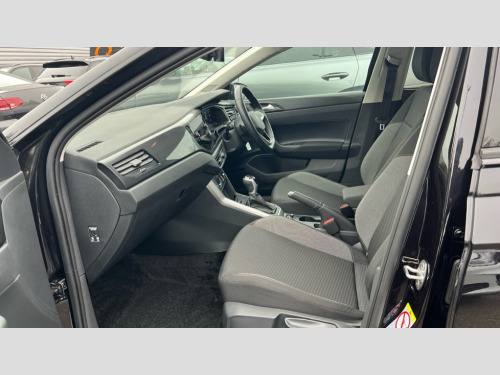 Volkswagen Polo 1.0 TSI Match 5dr DSG Advanced driver attention and drowsiness monitor, Bluetooth mobile phone interface, Dynamic road sign display, Emergency call service, Multifunction front facing camera for distance control, Park distance control, Power assisted speed sensitive steering, Predictive adaptive cruise control without follow-to-stop and speed limiter, Preparation for navigation system with media and internet package, Preparation for We connect and We connect plus, Rear view camera, Speedo and rev counter, electronic odometer, trip, service interval display and exterior temperature gauge, Standard rear axle, Travel Assist - Lane keeping system and traffic jam assist, Travel assist including emergency assist, Trip computer, Warning signal and warning light for front and rear seatbelts not fastened, Washer fluid level indicator, Wireless app connect, Front wheel drive, Rear shock absorpion, Start-stop system with battery regeneration (recuperation - energy recovery during braking), DAB Digital radio, Diversity antenna for FM reception, Front and rear 6 speakers, Automatic dimming interior rear view mirror, Automatic headlight control with LED separate daytime running lights with coming/leaving home function, Body colour bumpers with chrome inserts, Body colour door handles, Body colour door mirrors, Electric front windows, Engine badge deletion, Headlight range adjustment, Heat insulating and laminated safety glass windshield, LED Headlights, LED rear combination lamps, Power folding adjustable/heated exterior mirrors and front passenger exterior mirror lowering function, Rain sensor, Rear electric windows, Rear fog light, Rear side wing doors, Rear tinted glass from B-pillar backwards approx 65% tinted, Rear windscreen washer and wiper with interval delay, Third brake light, 12V power socket in centre console, 2 front and 2 rear reading lights with switch off delay and dimmer, 2 USB-C ports in the front, 2 USB-C charging sockets on the center console in the rear, 3 rear head restraints, 60/40 split folding rear seat and rear seat bench not split, Ceramique roof lining, Chrome plated radiator grille inserts, air vent surrounds and light switch surrounds, Door and side trim panel, Driver and front passenger seat height adjustment, Driver/passenger sunvisors with illuminated vanity mirrors, Front centre armrest, Front seat backrest storage pockets, Front standard seats, Handbrake lever handle in leather, Hartley/Thomas cloth upholstery, Headliner in recycled material, Isofix child seat preparation easy-fit (for two outer rear seats, and front passenger seat) compatible with I-size, Leather trimmed gear knob, Luggage compartment cover, Luggage compartment lighting, Removable luggage compartment floor, Single front passenger seat, Standard climatic zones, Standard pedal cluster, Three spoke leather wrapped multifunction steering wheel with shifting paddles, Light and vision pack - Polo, 3 point height adj front seatbelts + pretensioners, 3 point seat belt for centre rear seat, 3 point seatbelts, outer rear with ECE lable, ABS, Driver and front passenger airbag with front passenger airbag deactivation, Drivers and front passengers safety optimised head restraints, ESC (Electronic stability control) + EDL (Electronic Differntial lock) and ASR (Traction control), Extended and predictive pedestrian/ cyclist protection, Front assist with autonomous emergency braking (for Adaptive Cruise Control ACC up to 130 mph), Front curtain and side airbags with center airbag, Front disc brakes, Hill hold control, Manual child lock in rear doors, Rear drum brakes, Single tone horn, Tyre pressure loss indicator, Alarm with interior protection, Anti-theft alarm system with interior monitoring, backup horn, and towing protection, Anti-theft wheel bolts, Electronic engine immobiliser, Lava stone black gloss/matt decorative inserts in dash and front door panels, 16" Torsby alloy wheels, Low rolling resistance tyres
