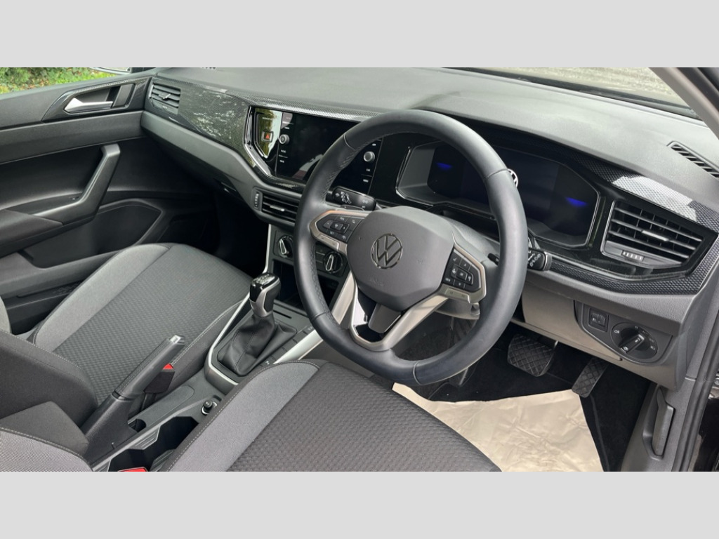 Volkswagen Polo 1.0 TSI Match 5dr DSG Advanced driver attention and drowsiness monitor, Bluetooth mobile phone interface, Dynamic road sign display, Emergency call service, Multifunction front facing camera for distance control, Park distance control, Power assisted speed sensitive steering, Predictive adaptive cruise control without follow-to-stop and speed limiter, Preparation for navigation system with media and internet package, Preparation for We connect and We connect plus, Rear view camera, Speedo and rev counter, electronic odometer, trip, service interval display and exterior temperature gauge, Standard rear axle, Travel Assist - Lane keeping system and traffic jam assist, Travel assist including emergency assist, Trip computer, Warning signal and warning light for front and rear seatbelts not fastened, Washer fluid level indicator, Wireless app connect, Front wheel drive, Rear shock absorpion, Start-stop system with battery regeneration (recuperation - energy recovery during braking), DAB Digital radio, Diversity antenna for FM reception, Front and rear 6 speakers, Automatic dimming interior rear view mirror, Automatic headlight control with LED separate daytime running lights with coming/leaving home function, Body colour bumpers with chrome inserts, Body colour door handles, Body colour door mirrors, Electric front windows, Engine badge deletion, Headlight range adjustment, Heat insulating and laminated safety glass windshield, LED Headlights, LED rear combination lamps, Power folding adjustable/heated exterior mirrors and front passenger exterior mirror lowering function, Rain sensor, Rear electric windows, Rear fog light, Rear side wing doors, Rear tinted glass from B-pillar backwards approx 65% tinted, Rear windscreen washer and wiper with interval delay, Third brake light, 12V power socket in centre console, 2 front and 2 rear reading lights with switch off delay and dimmer, 2 USB-C ports in the front, 2 USB-C charging sockets on the center console in the rear, 3 rear head restraints, 60/40 split folding rear seat and rear seat bench not split, Ceramique roof lining, Chrome plated radiator grille inserts, air vent surrounds and light switch surrounds, Door and side trim panel, Driver and front passenger seat height adjustment, Driver/passenger sunvisors with illuminated vanity mirrors, Front centre armrest, Front seat backrest storage pockets, Front standard seats, Handbrake lever handle in leather, Hartley/Thomas cloth upholstery, Headliner in recycled material, Isofix child seat preparation easy-fit (for two outer rear seats, and front passenger seat) compatible with I-size, Leather trimmed gear knob, Luggage compartment cover, Luggage compartment lighting, Removable luggage compartment floor, Single front passenger seat, Standard climatic zones, Standard pedal cluster, Three spoke leather wrapped multifunction steering wheel with shifting paddles, Light and vision pack - Polo, 3 point height adj front seatbelts + pretensioners, 3 point seat belt for centre rear seat, 3 point seatbelts, outer rear with ECE lable, ABS, Driver and front passenger airbag with front passenger airbag deactivation, Drivers and front passengers safety optimised head restraints, ESC (Electronic stability control) + EDL (Electronic Differntial lock) and ASR (Traction control), Extended and predictive pedestrian/ cyclist protection, Front assist with autonomous emergency braking (for Adaptive Cruise Control ACC up to 130 mph), Front curtain and side airbags with center airbag, Front disc brakes, Hill hold control, Manual child lock in rear doors, Rear drum brakes, Single tone horn, Tyre pressure loss indicator, Alarm with interior protection, Anti-theft alarm system with interior monitoring, backup horn, and towing protection, Anti-theft wheel bolts, Electronic engine immobiliser, Lava stone black gloss/matt decorative inserts in dash and front door panels, 16" Torsby alloy wheels, Low rolling resistance tyres